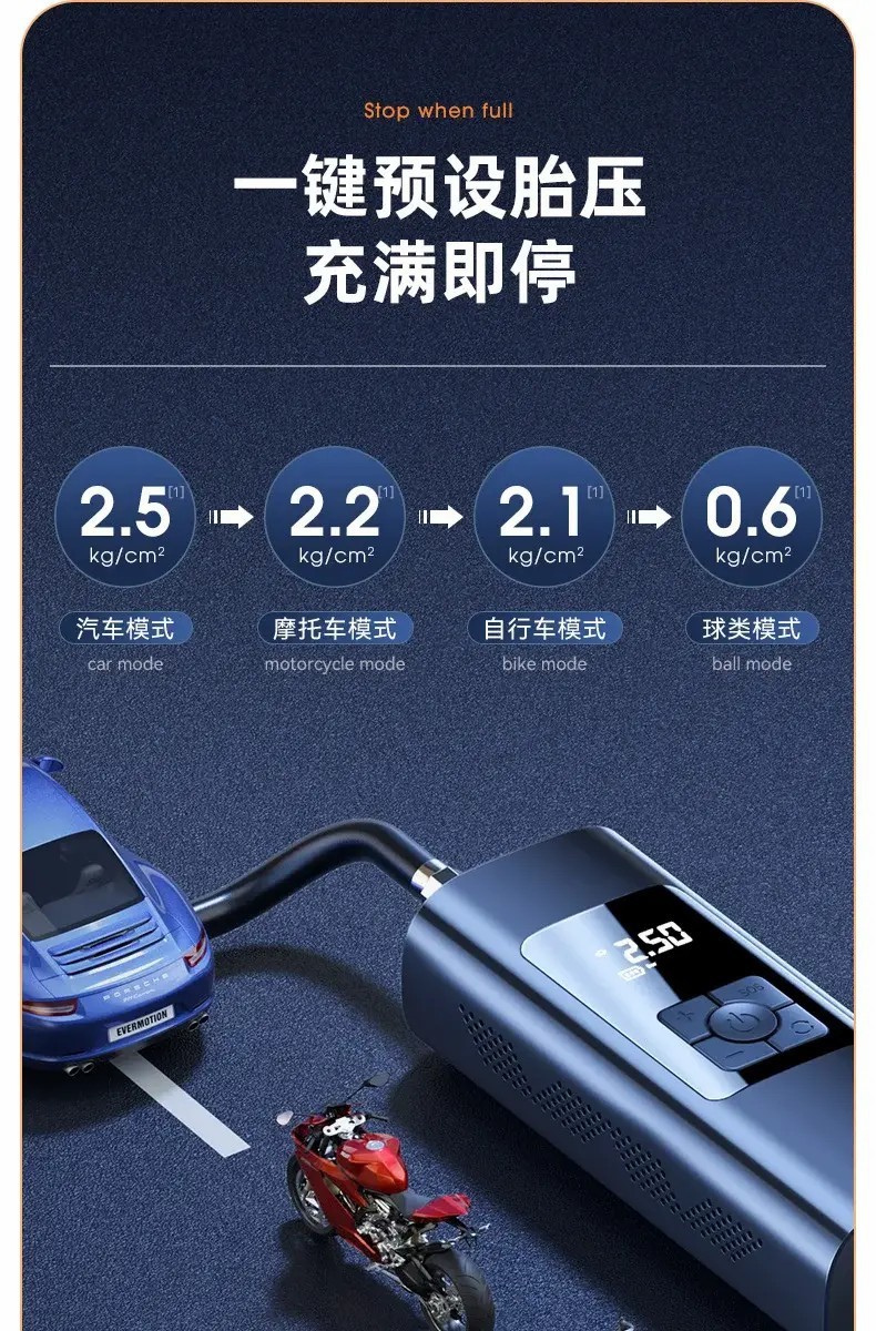 Bomba de inflado inalámbrica en automóviles Bomba de inflado eléctrica inalámbrica Bomba de inflado Nuevo neumático Monitoreo de presión de neumáticos Motocicleta @