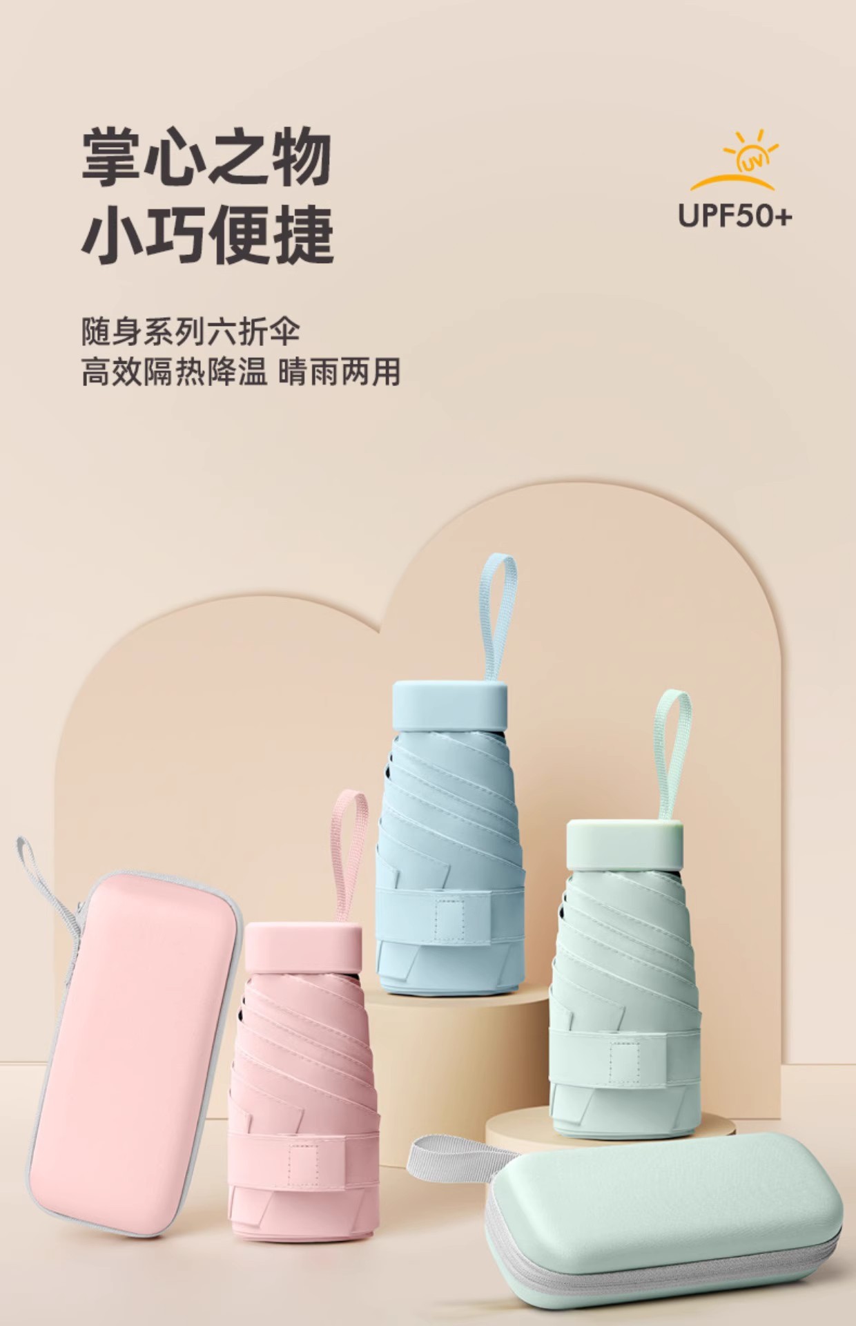 Sombrilla de sol cápsula de seis pliegues Mini protector solar portátil pequeño Paraguas anti-ultravioleta Paraguas plegable Sombra de alta calidad para mujer