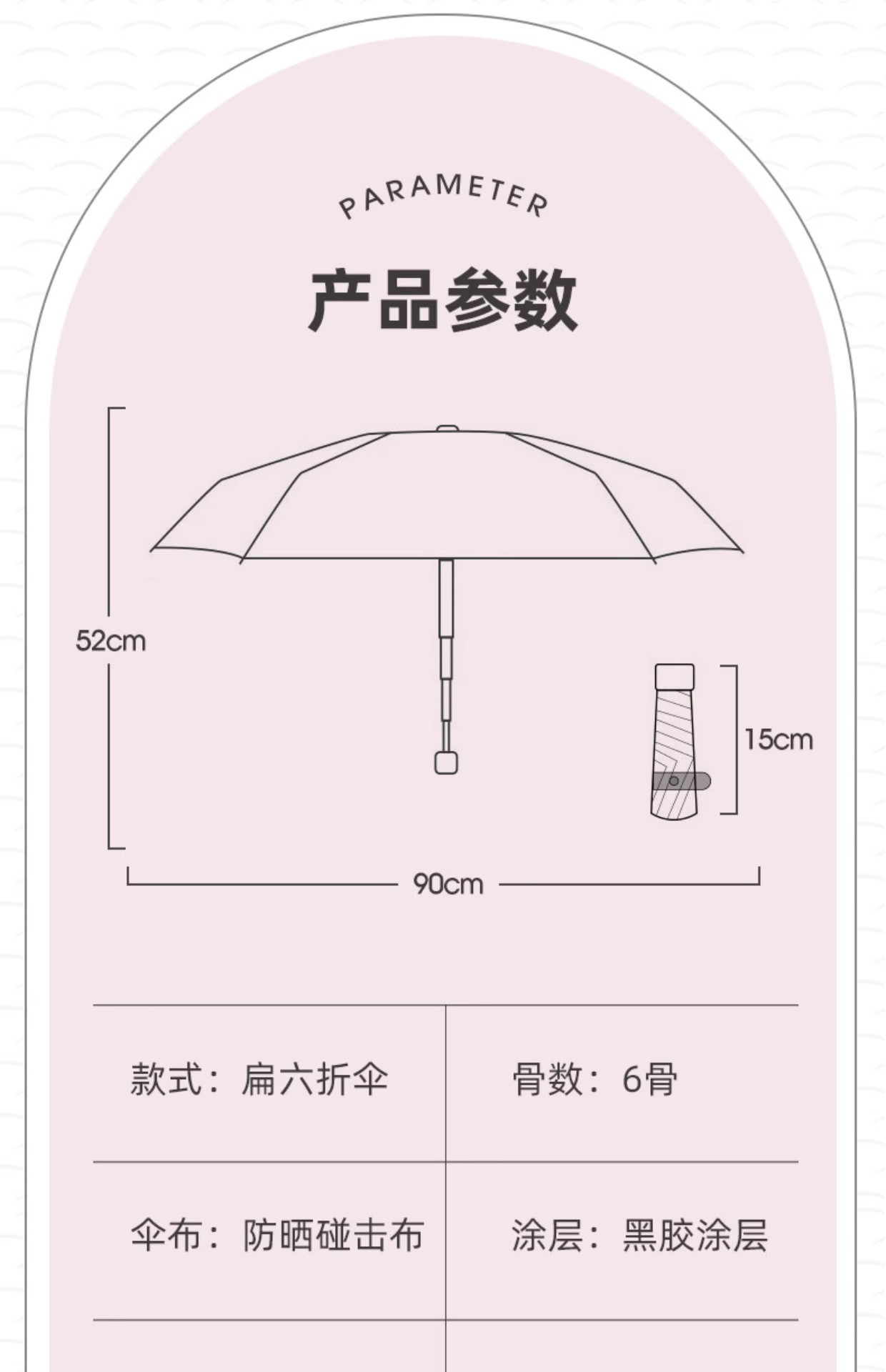 | Estilo | Paraguas de seis pliegues |
