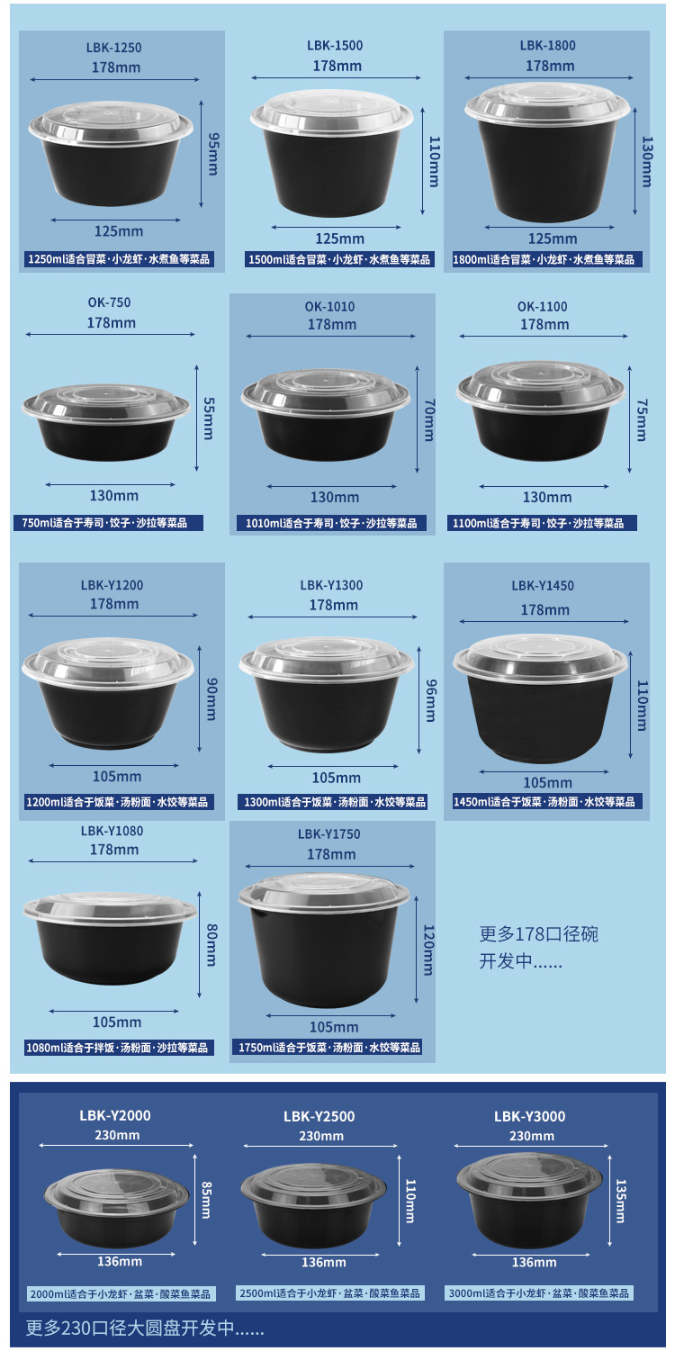 Fiambrera desechable caja de embalaje negra redonda de grado alimenticio caja de comida para llevar de plástico grueso caja de comida rápida tazón redondo con tapa