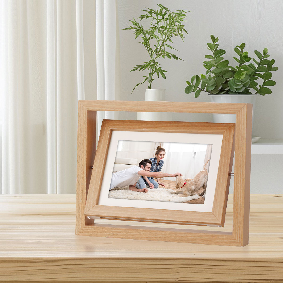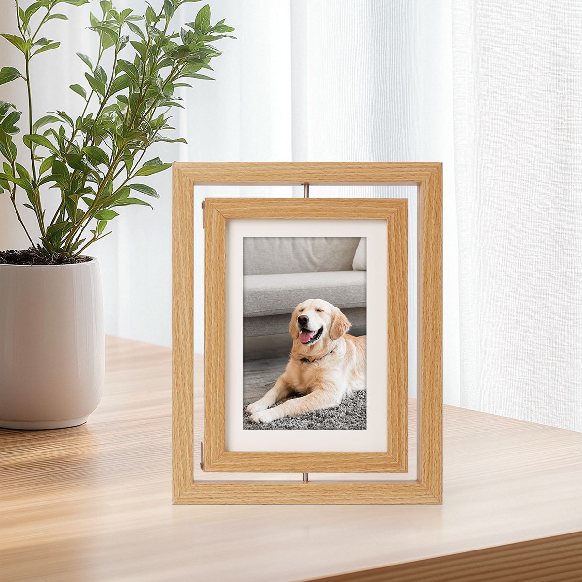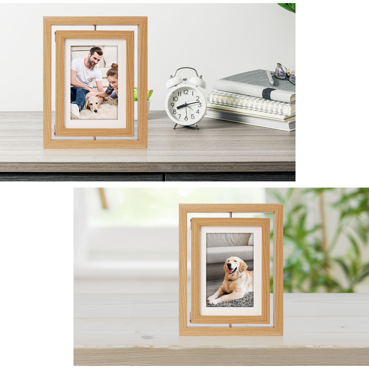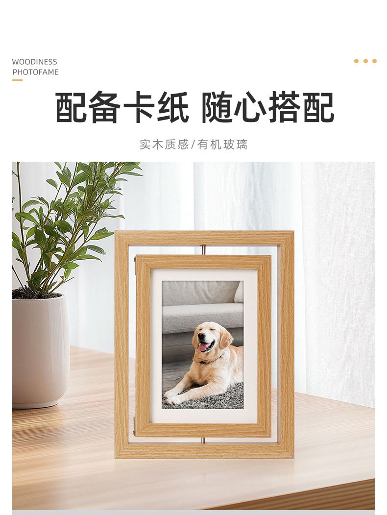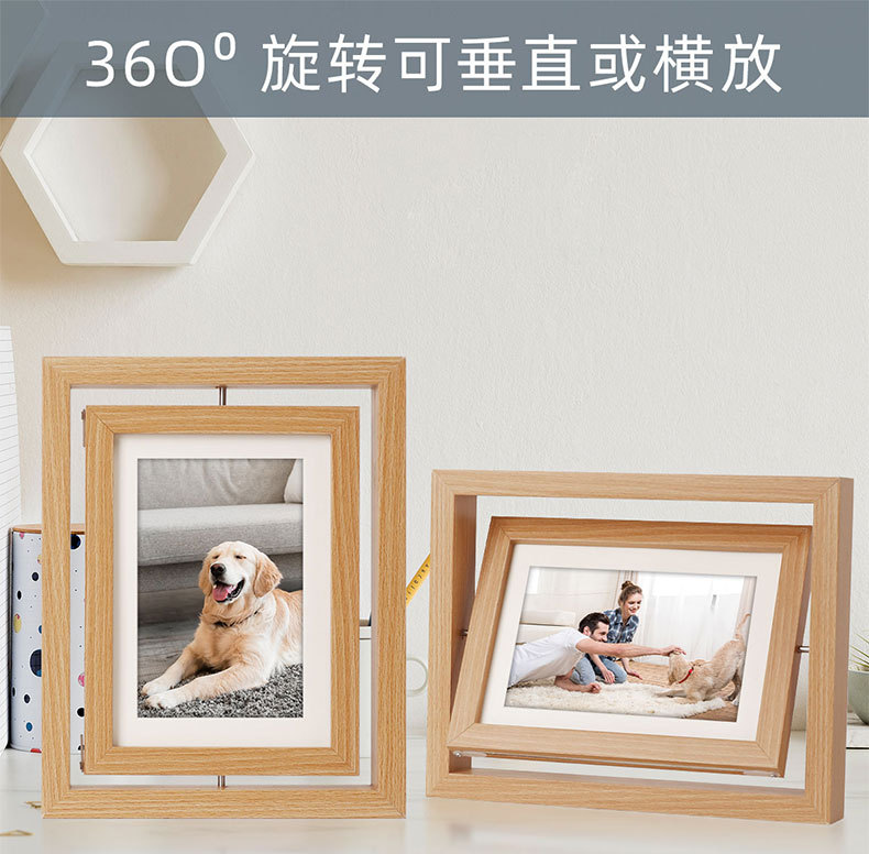 Creativo de doble cara giratorio marco de madera de 7 pulgadas marco de foto stand DIY hecha a mano mascota perro gato huellas de manos y pies marco de regalo