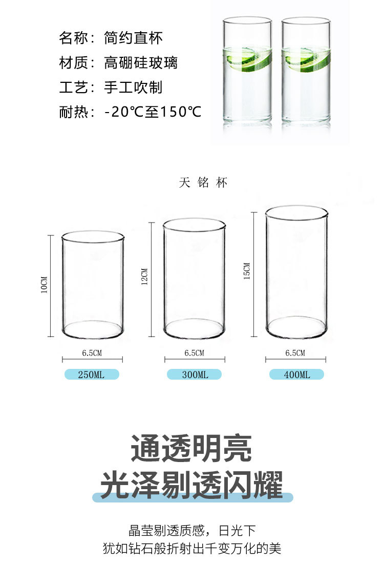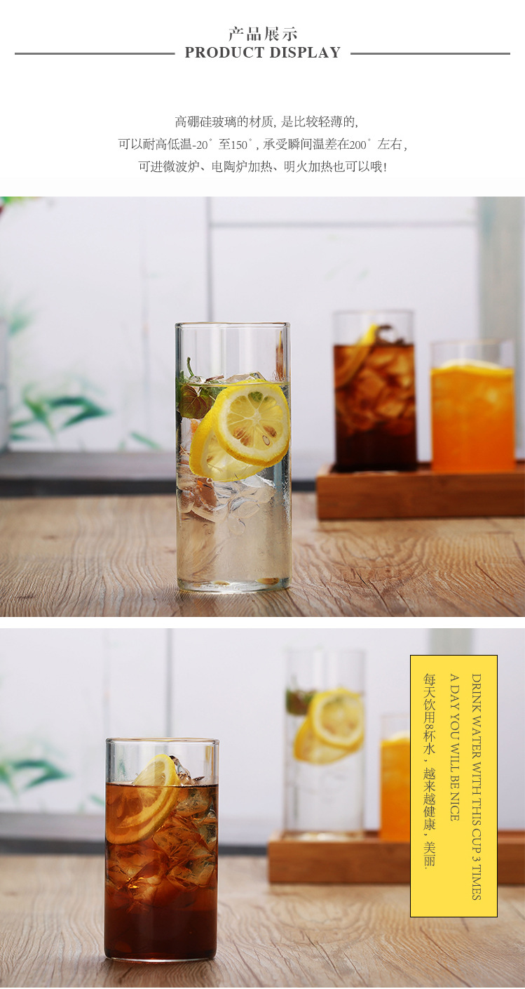 Vaso de Vidrio de Borosilicato Alto Resistente al Calor, Vaso Cilíndrico Recto para Hervir Agua a Alta Temperatura, Vaso Transparente para Comer