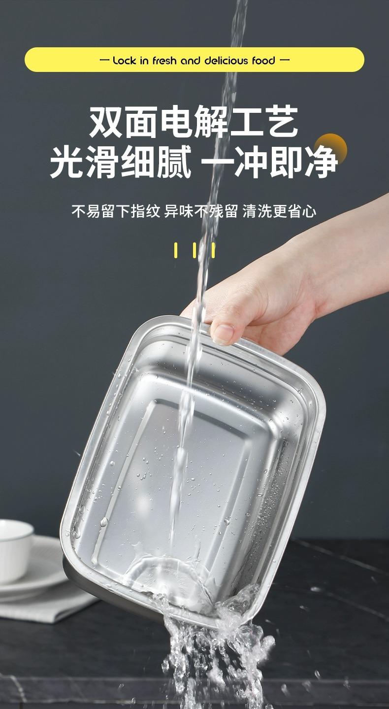 Grado de alimentos 316 caja de acero inoxidable para refrigerador especial con cubierta portátil sellado caja de almuerzo caja de camping