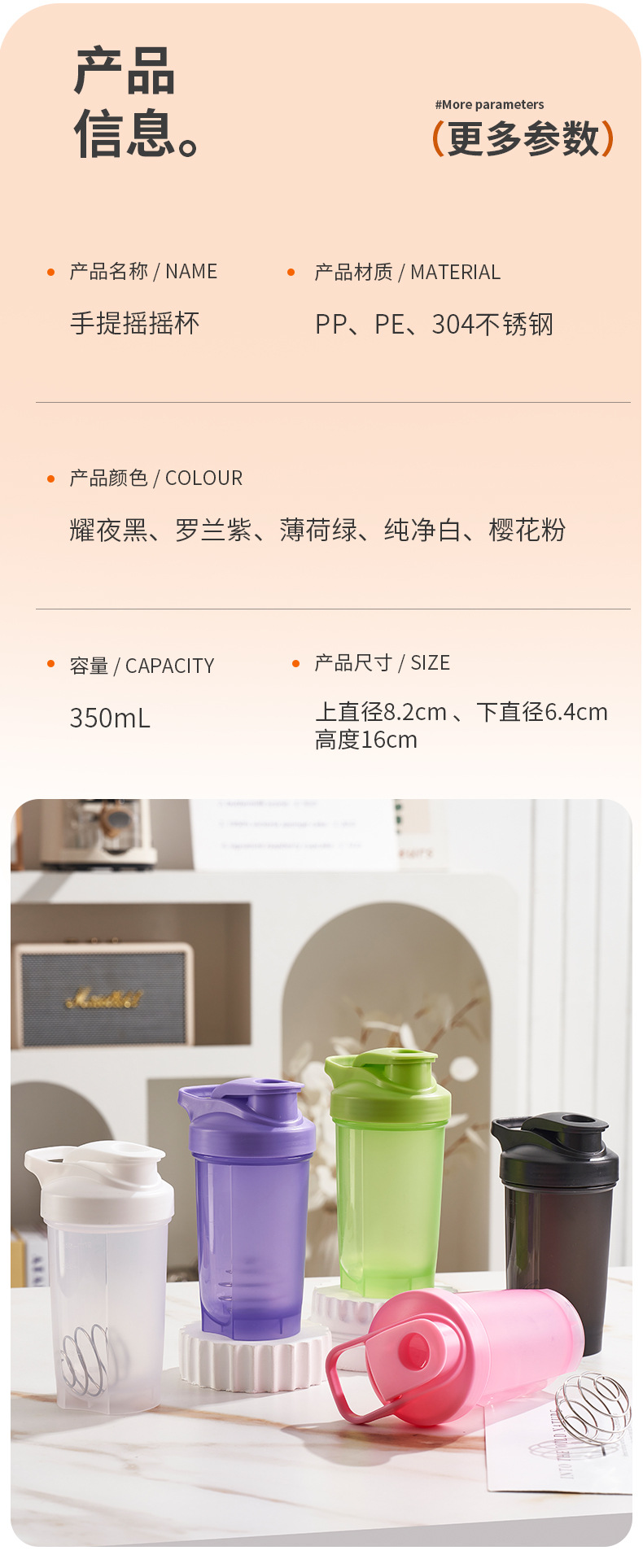 Cross-border 350ml portátil deportivo taza de bebida directa acondicionamiento físico hidratación de proteínas en polvo shaker taza batida de mezcla