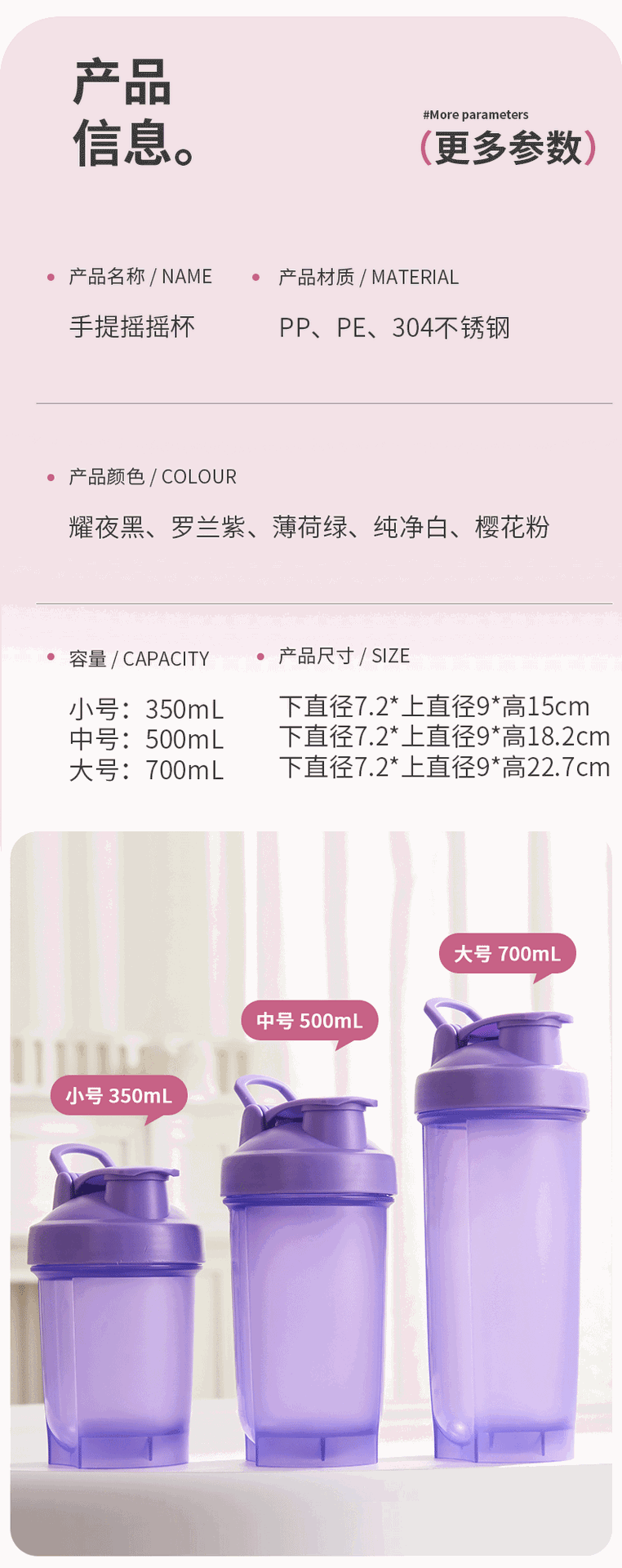 | Color | Blanco, verde, rosa, morado, negro |