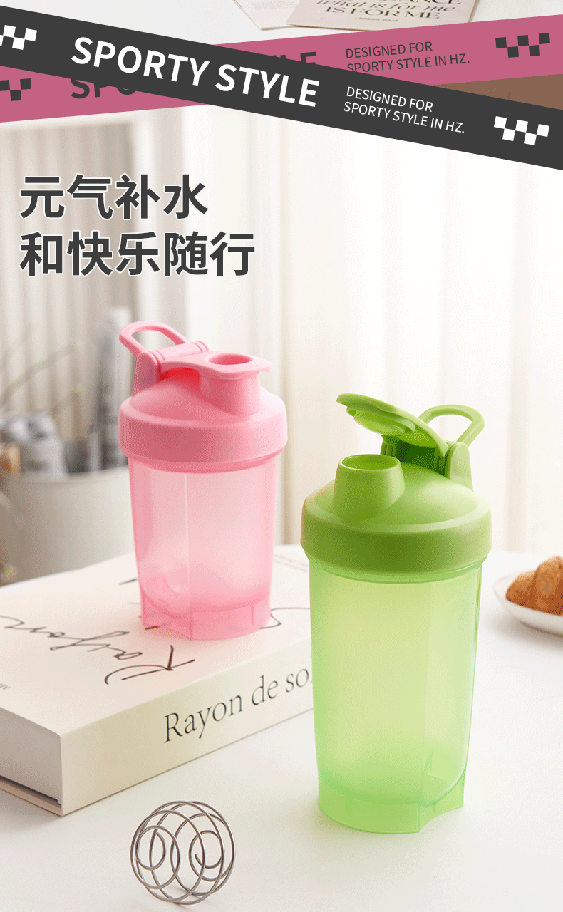 Taza de plástico de gran capacidad con mango 500ml taza de agua deportiva portátil taza de proteína deportiva al aire libre taza de agitación
