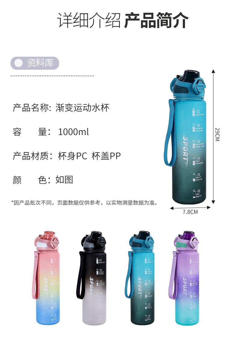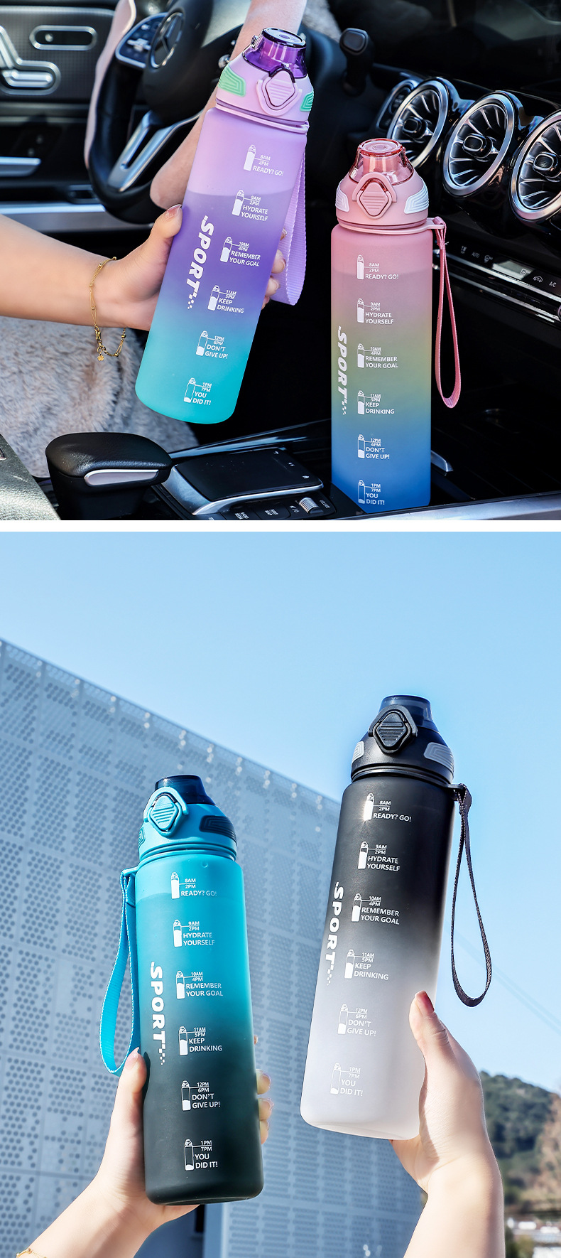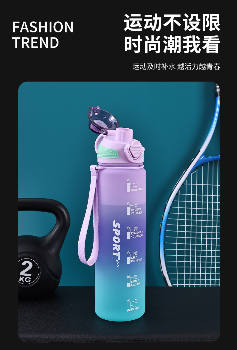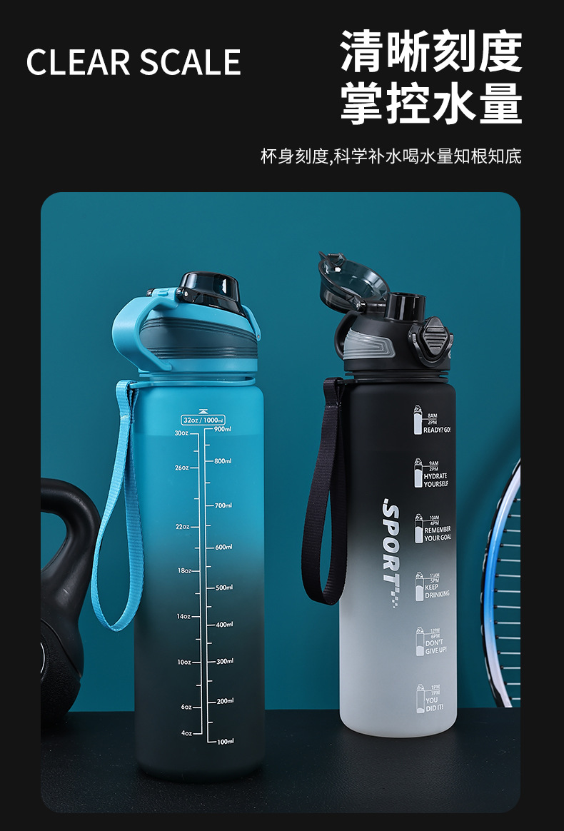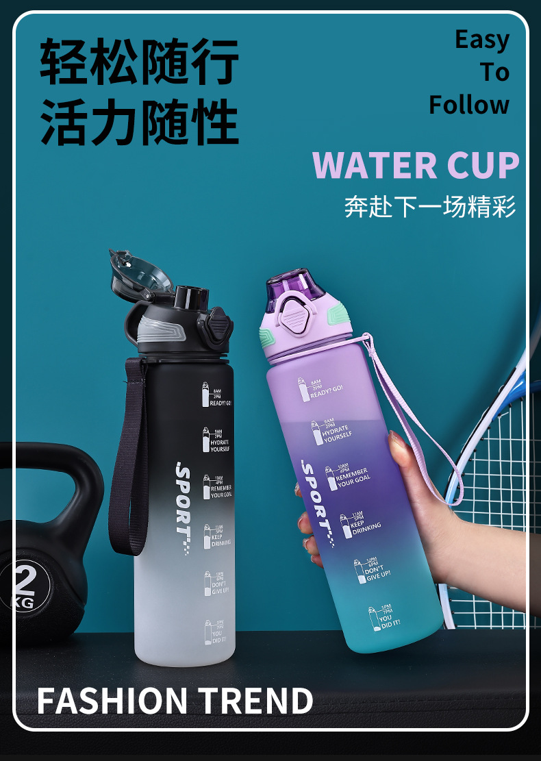 Nueva taza de agua deportiva degradada, hervidor portátil con tapa elástica para exteriores, taza espacial portátil de gran capacidad y alto valor