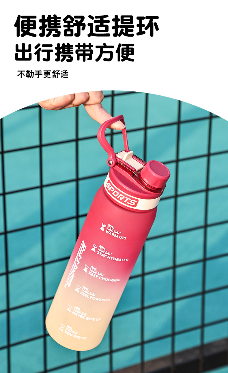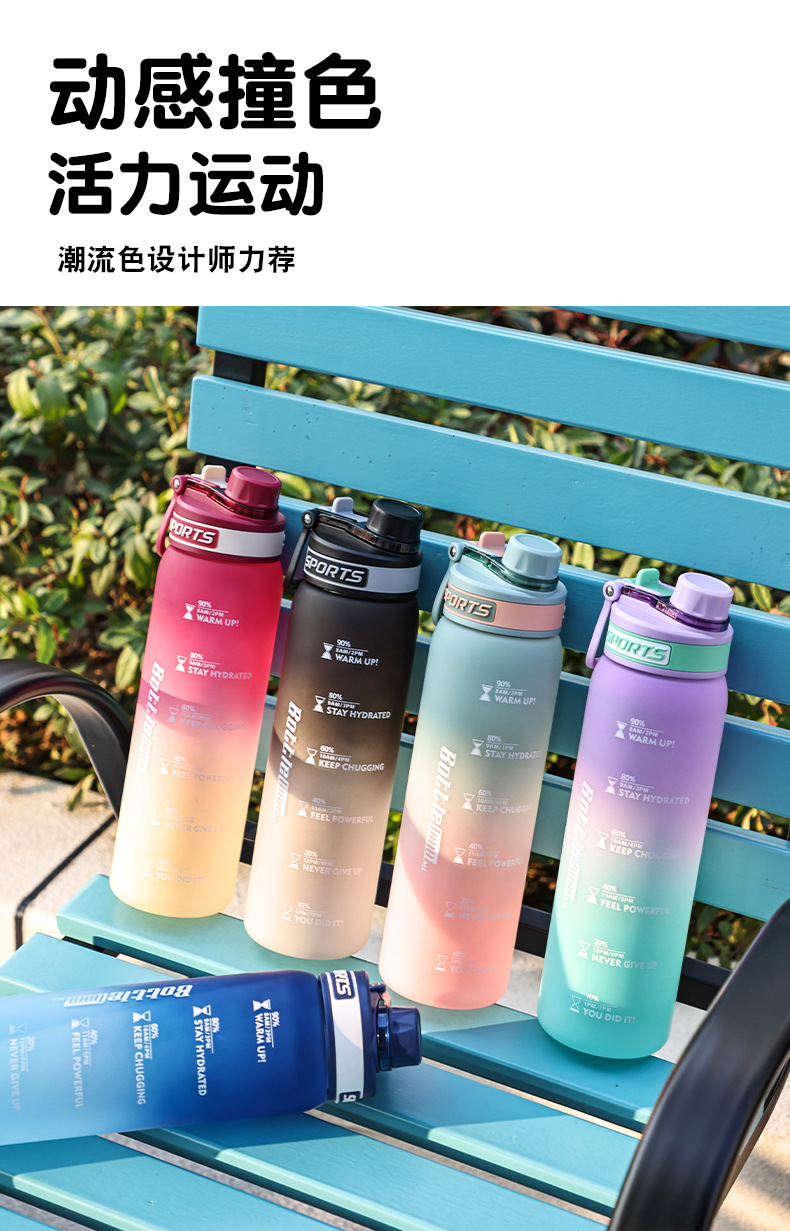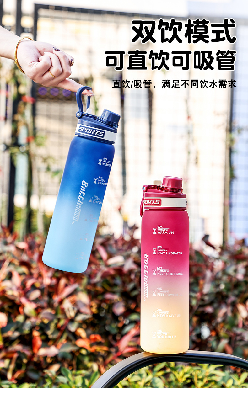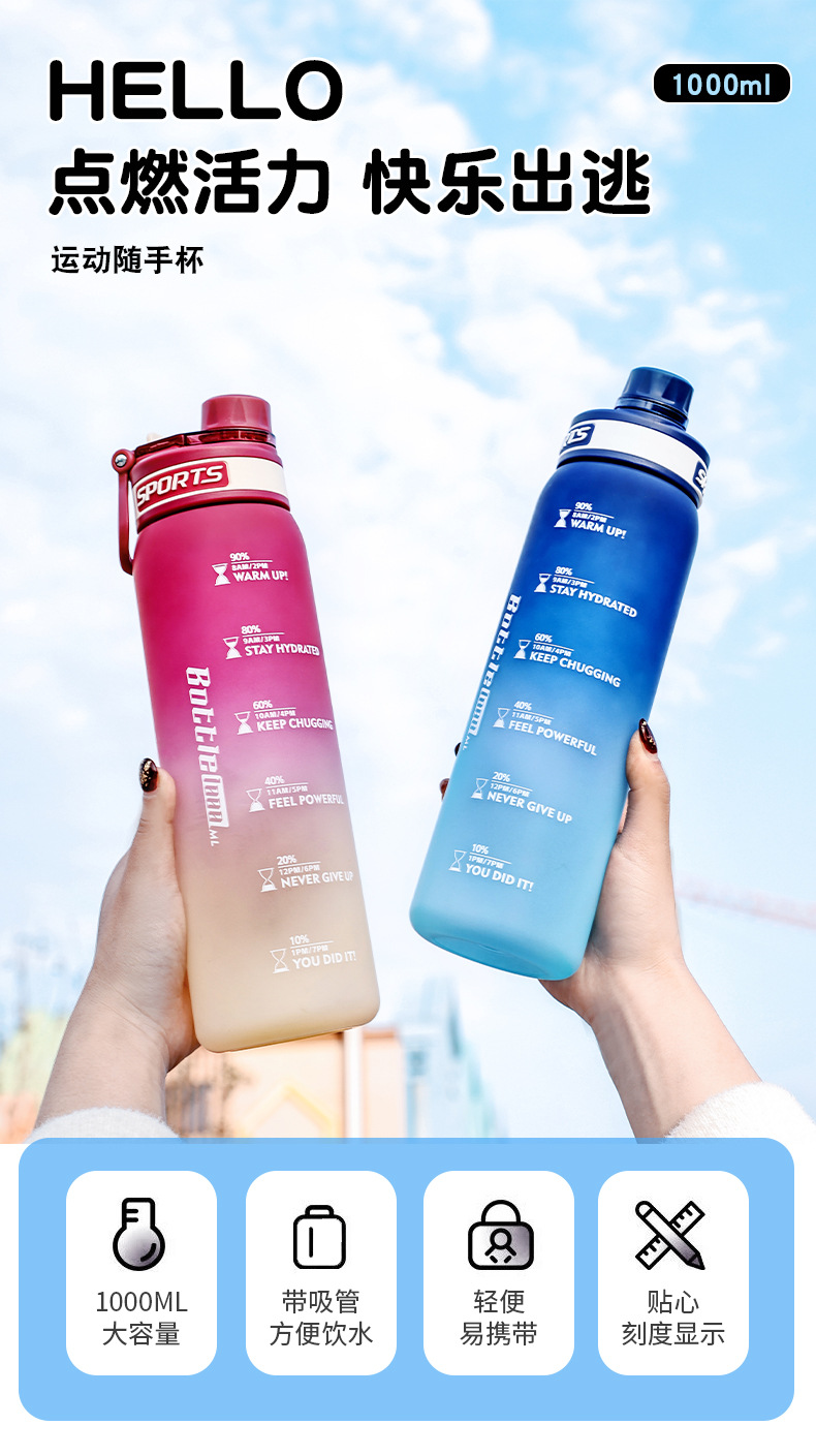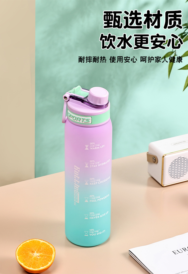 Taza de agua deportiva de color degradado Taza de plástico resistente a altas temperaturas y caídas de 1000ml Taza de mano al aire libre para estudiantes de alto valor