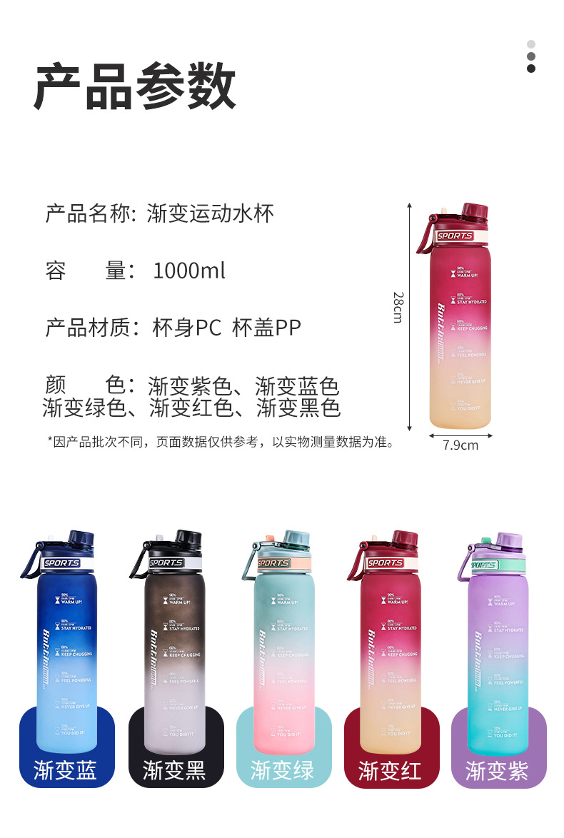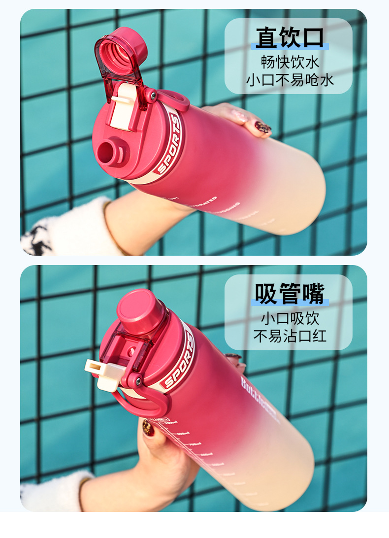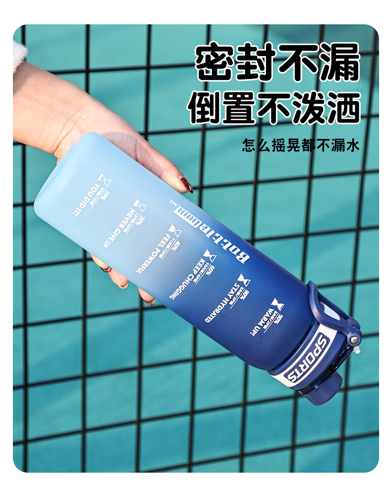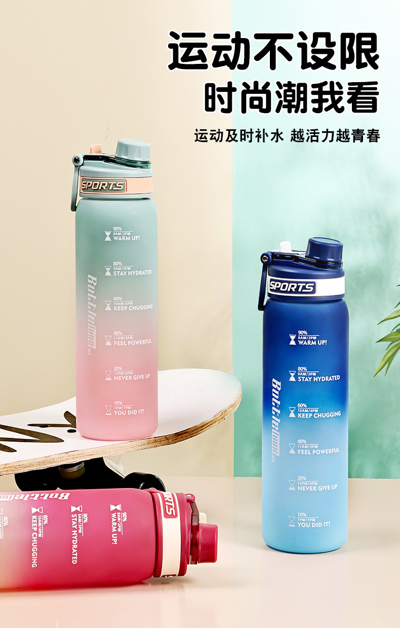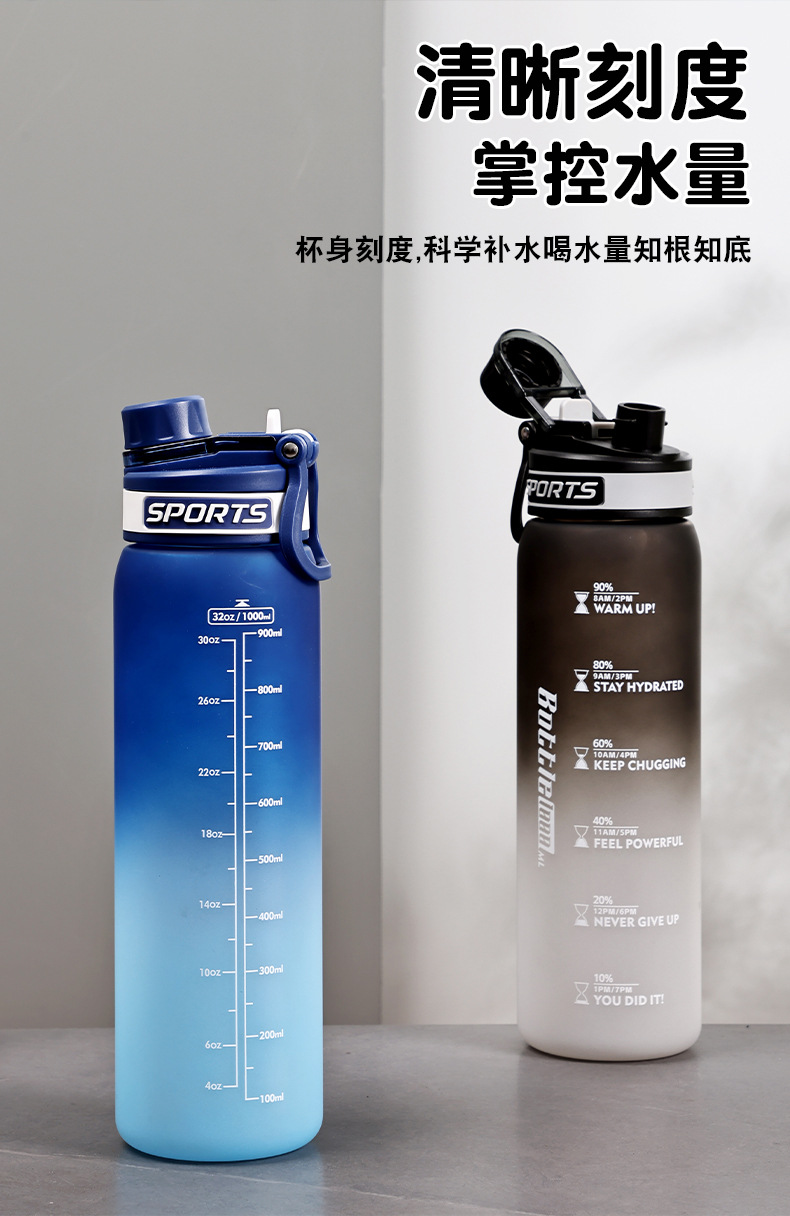 Taza de agua deportiva de color degradado Taza de plástico resistente a altas temperaturas y caídas de 1000ml Taza de mano al aire libre para estudiantes de alto valor