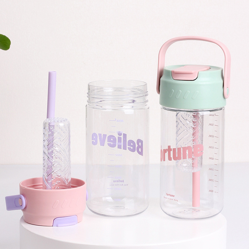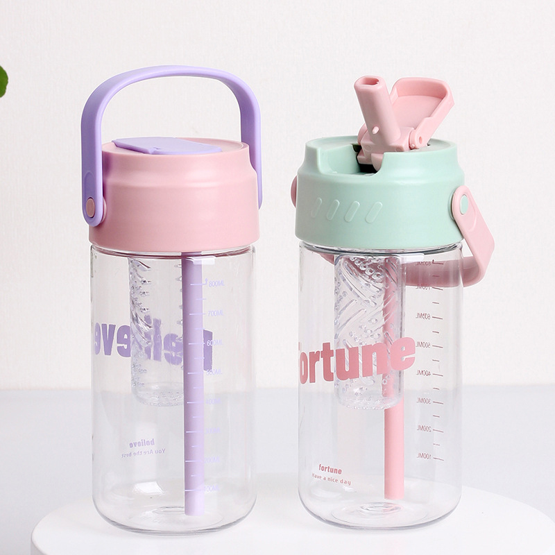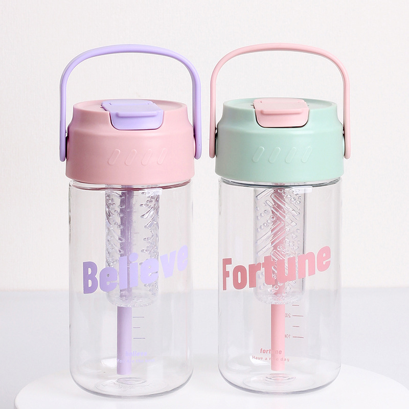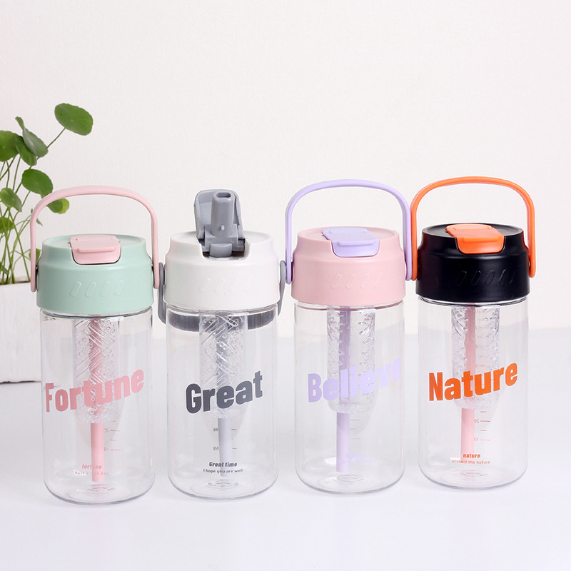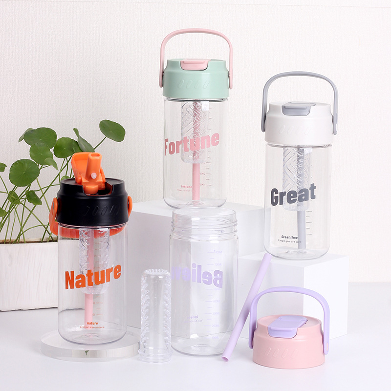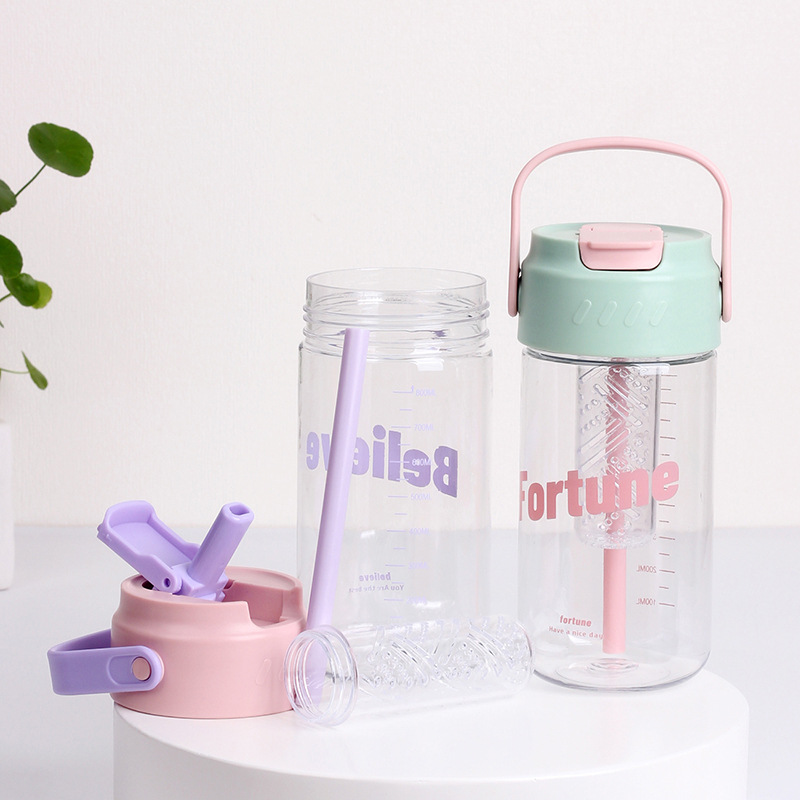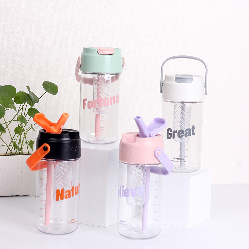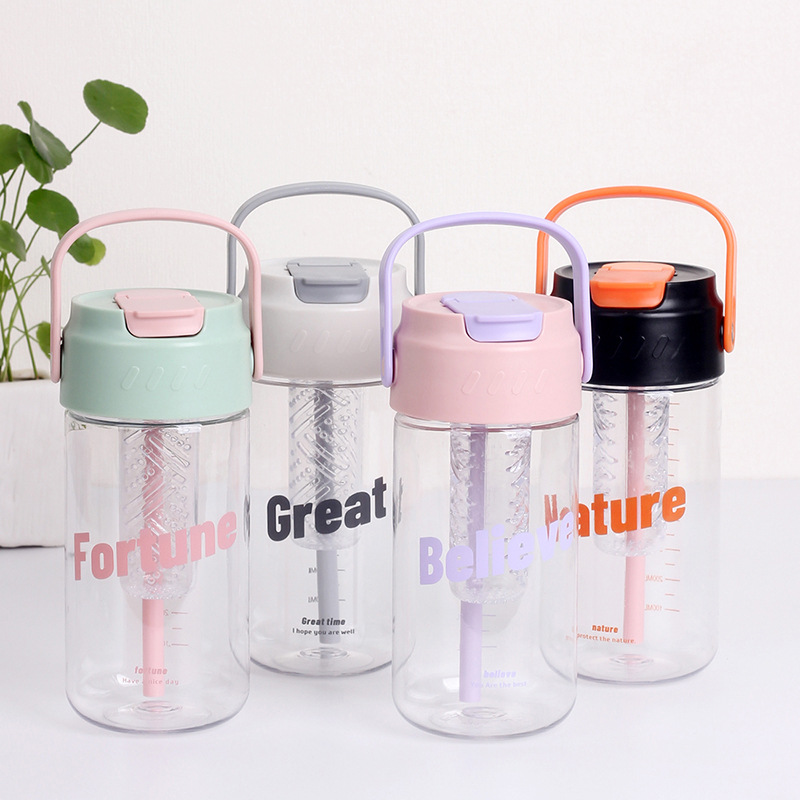 Taza de agua de plástico flor taza de té con almacén de té Estudiante DE ALTO aspecto en línea rojo ins portátil taza de paja taza