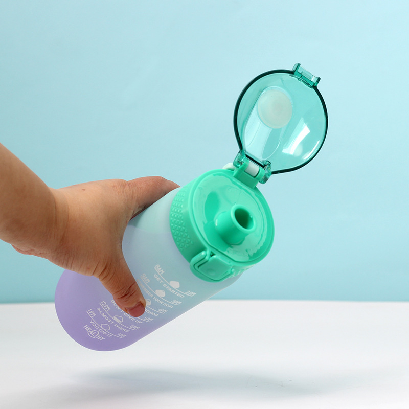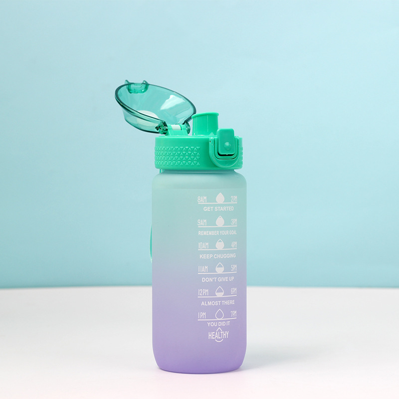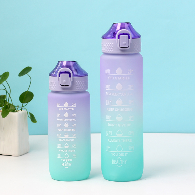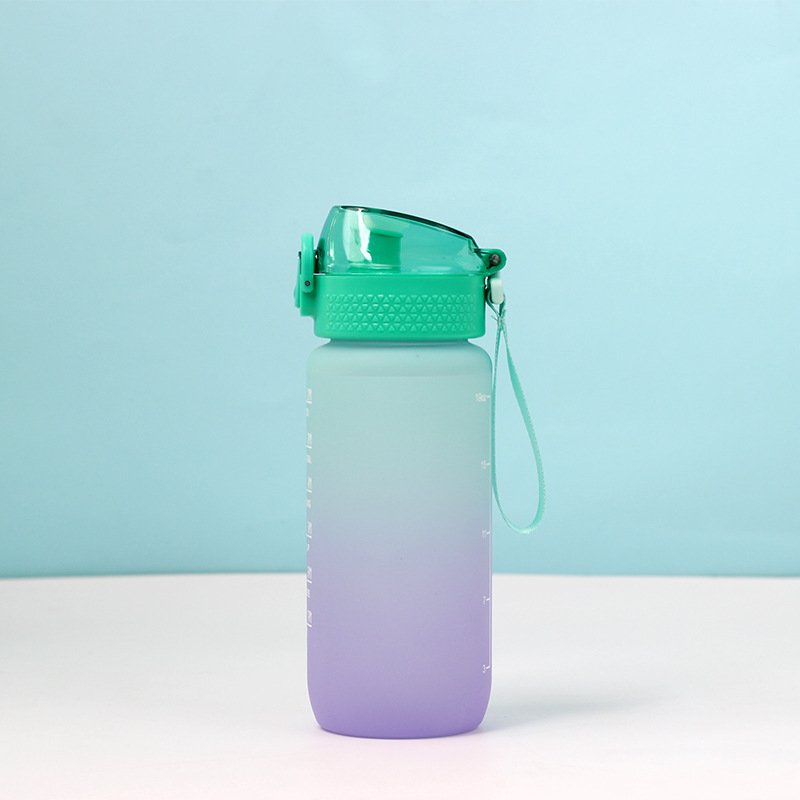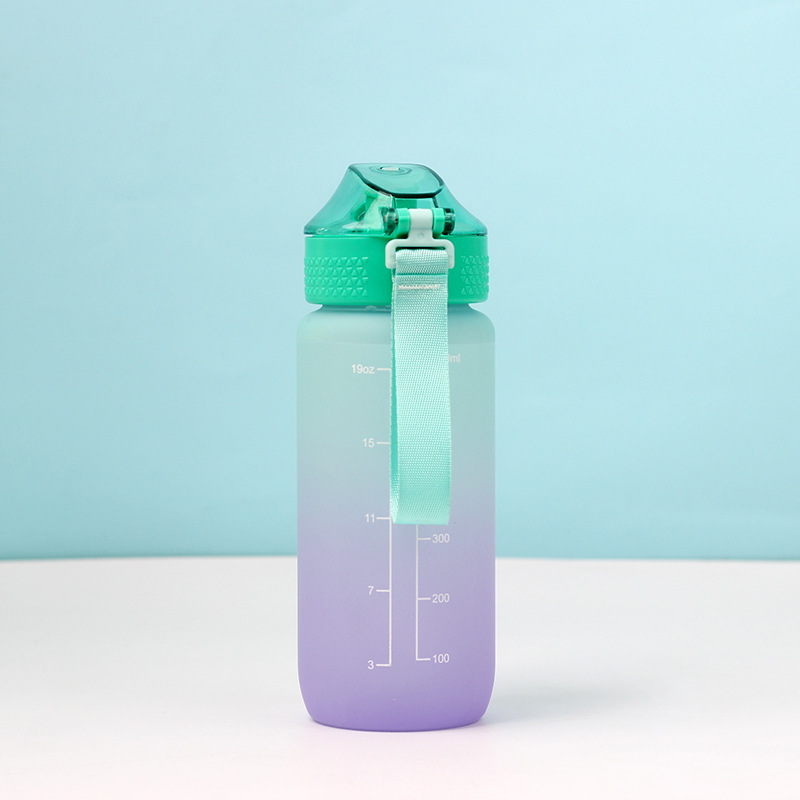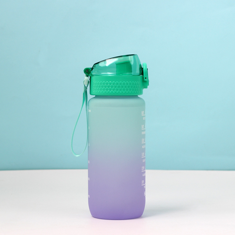 Taza de agua gradiente taza de plástico deportes al aire libre taza al por mayor 600ml con mango boca recta bala cubierta taza con filtro