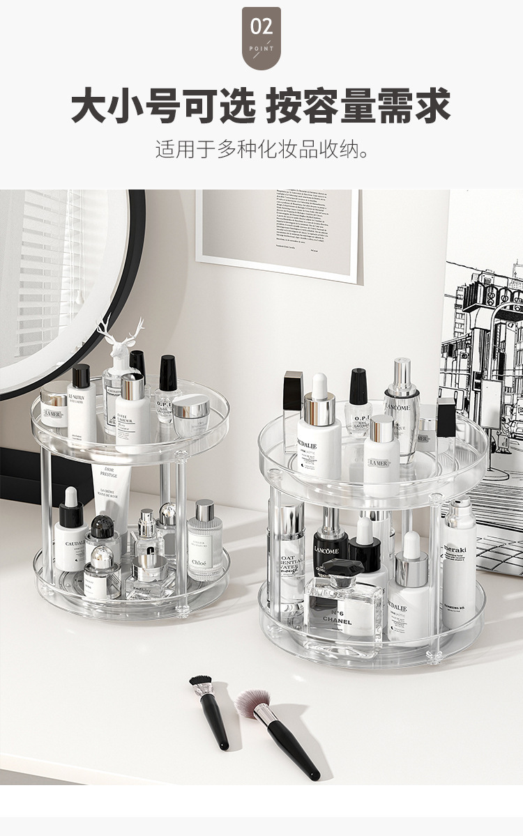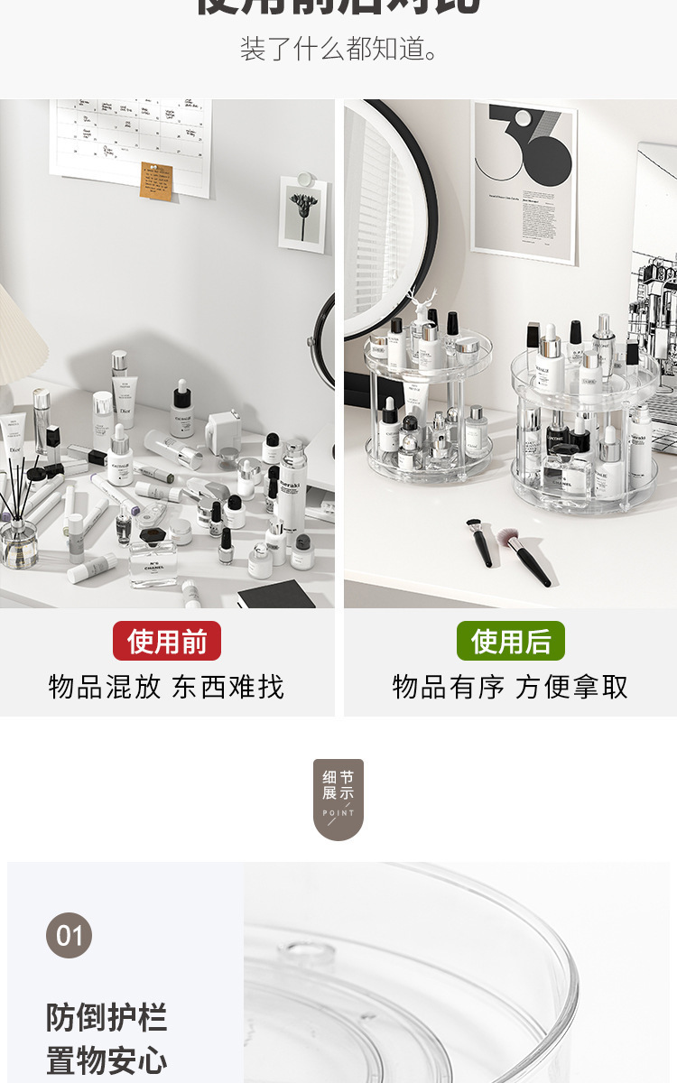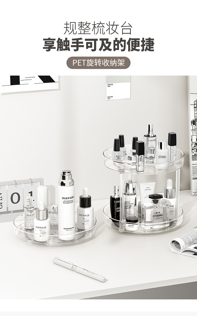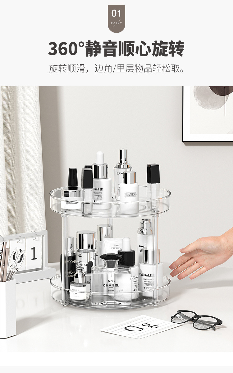 Estante transfronterizo transparente cosméticos de almacenamiento giratorio caja de estante de almacenamiento de productos de cuidado de la piel de escritorio de tocador