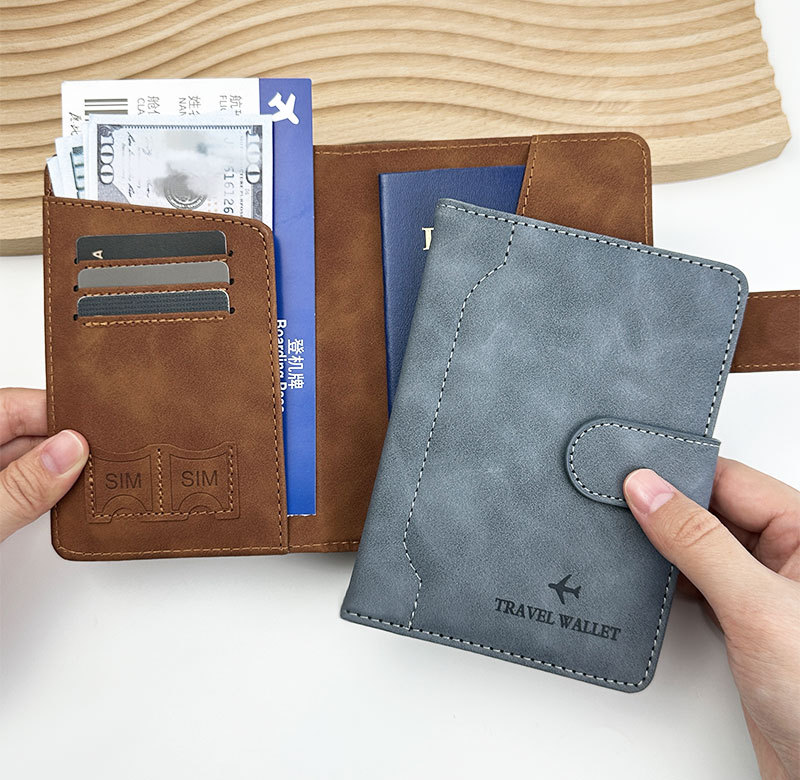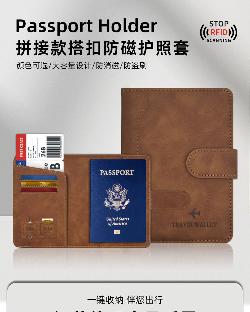 Transfronterizo spot Amazon pu pasaporte de cuero esta cubierta de protección empalmado paquete de pasaporte de hebilla magnética puede fijar el logotipo del clip de pasaporte