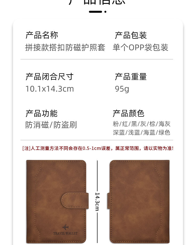 | Número de artículo | Funda de pasaporte magnética de hebilla de empalme |