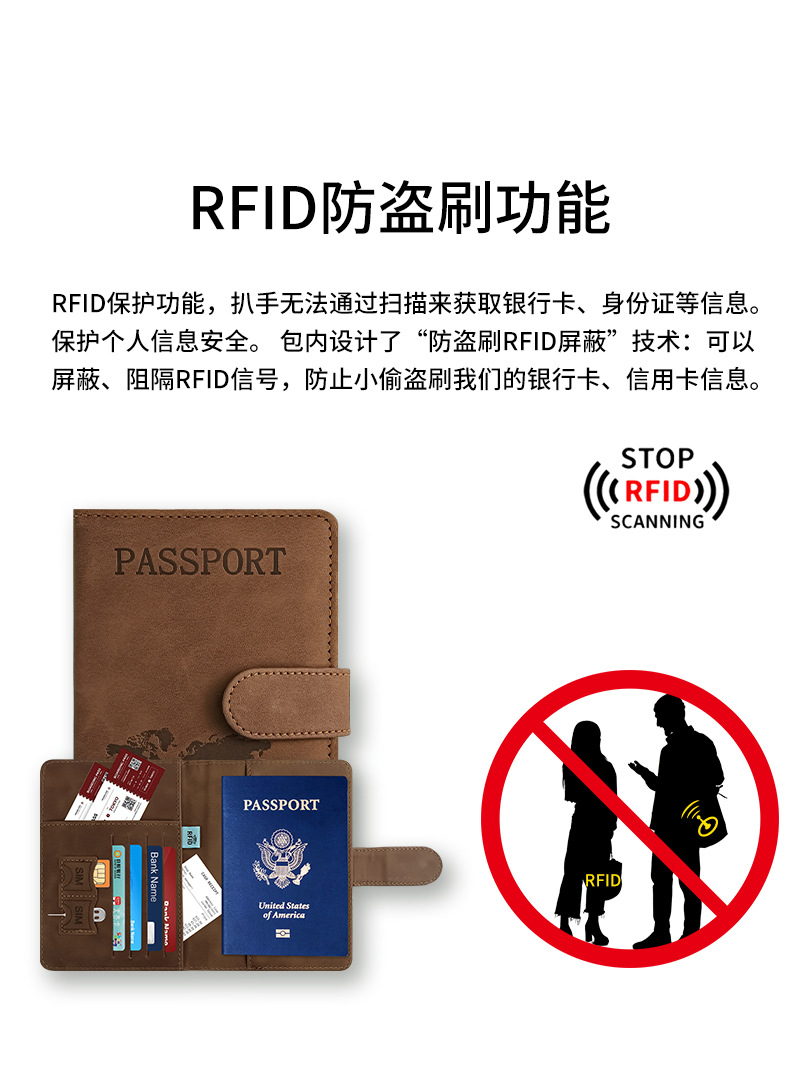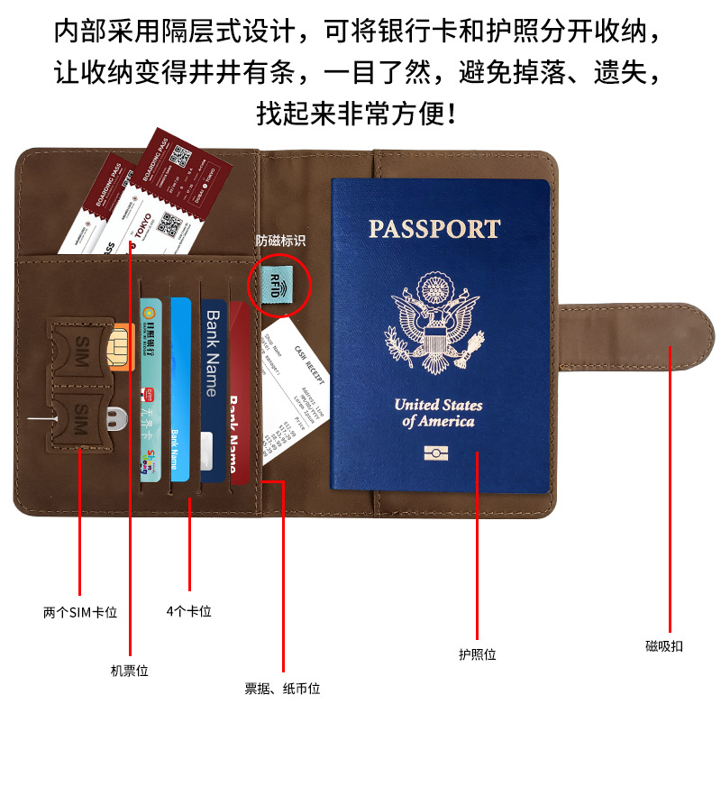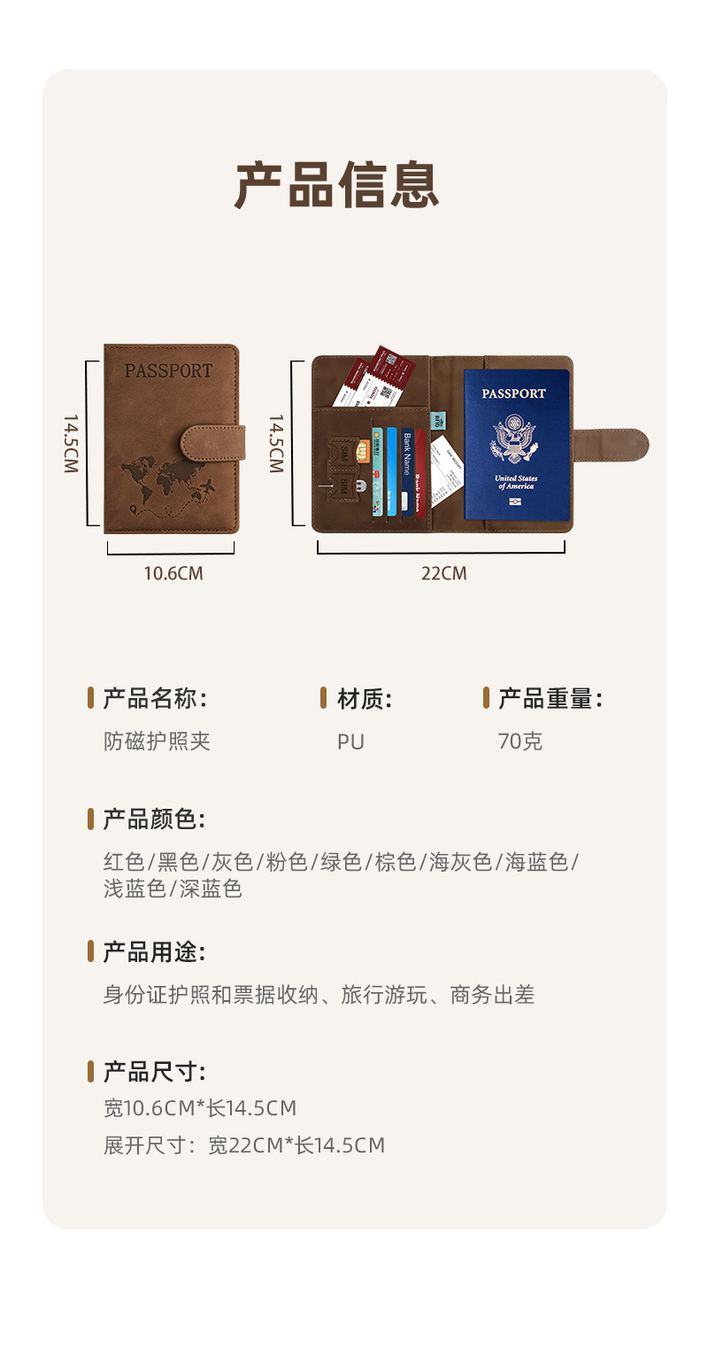 Pasaporte antimagnético transfronterizo en stock, cubierta de piel, cambio de color, clip de pasaporte de cuero pu, bolsa de pasaporte de cuero, hebilla magnética