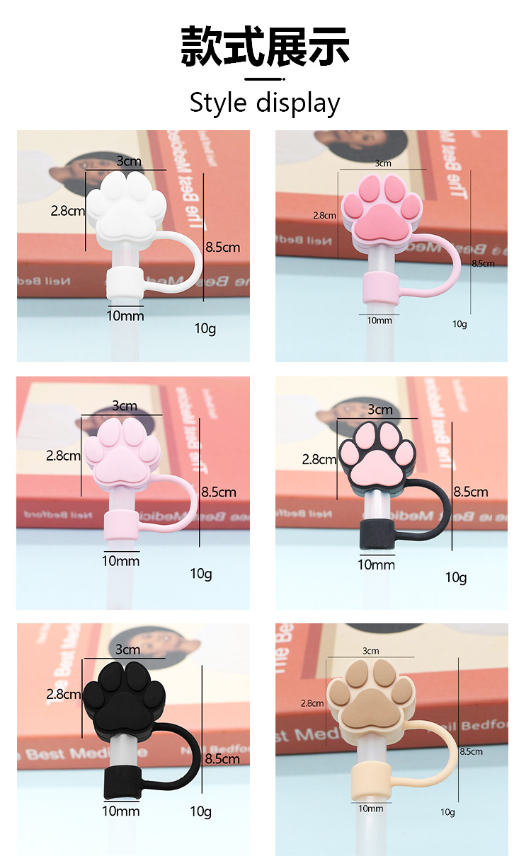 Spot transfronterizo Taza de agua Stanley Cubierta de pajita Tapón antipolvo Tapa de pajita de garra de gato de 10mm Tapón de pajita creativo de dibujos animados