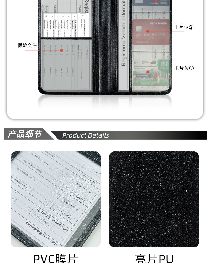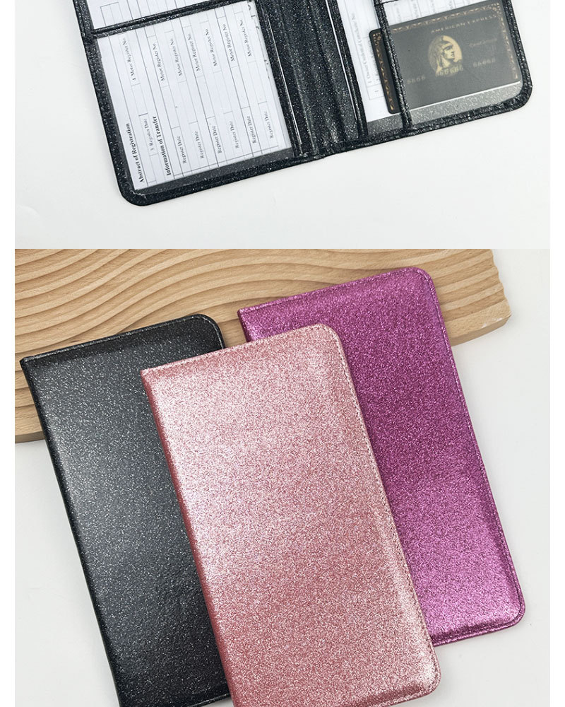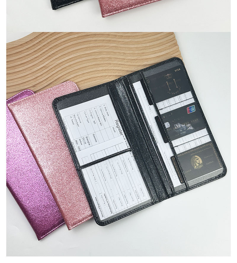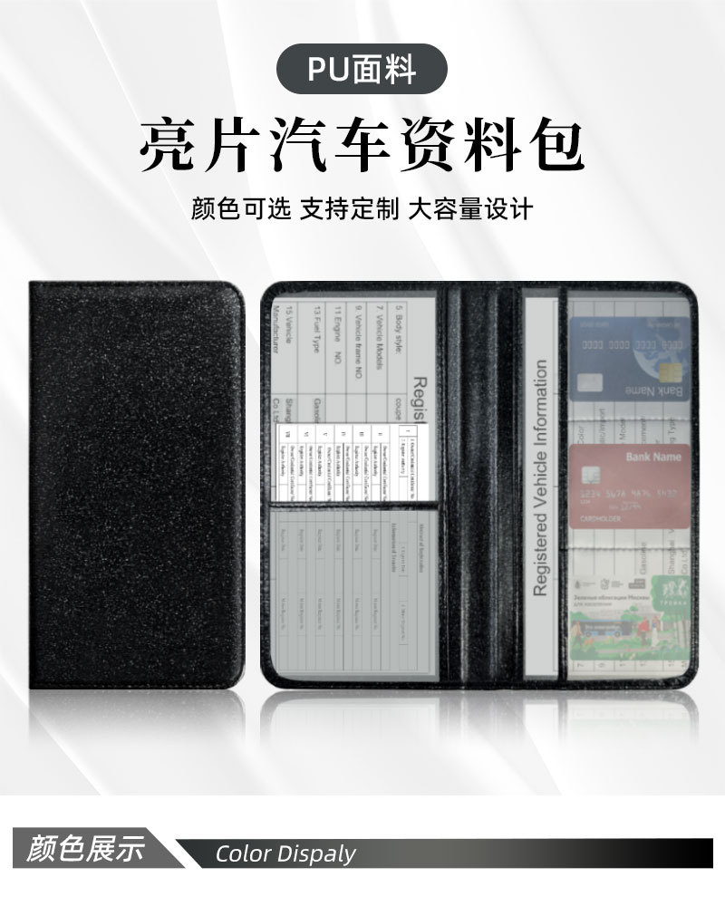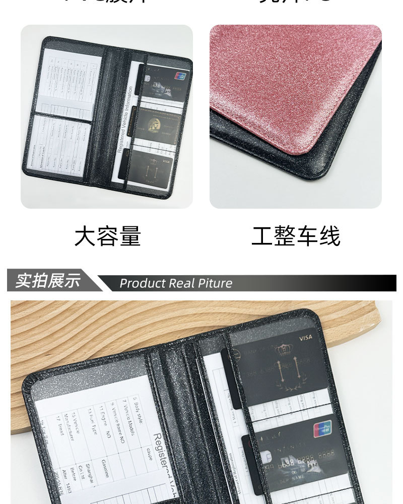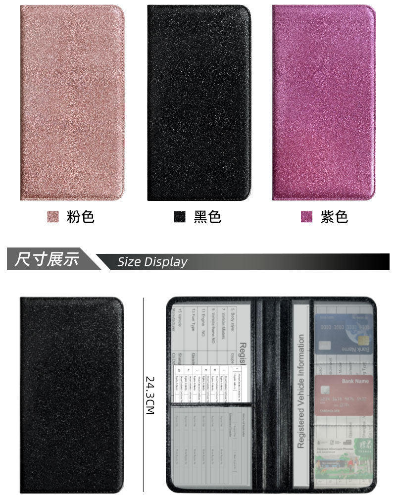 Licencia de conducir de EE.UU. Sequin de cuero certificado de registro de automóviles cartera de polvo de polvo flash seguro archivo cartera protector