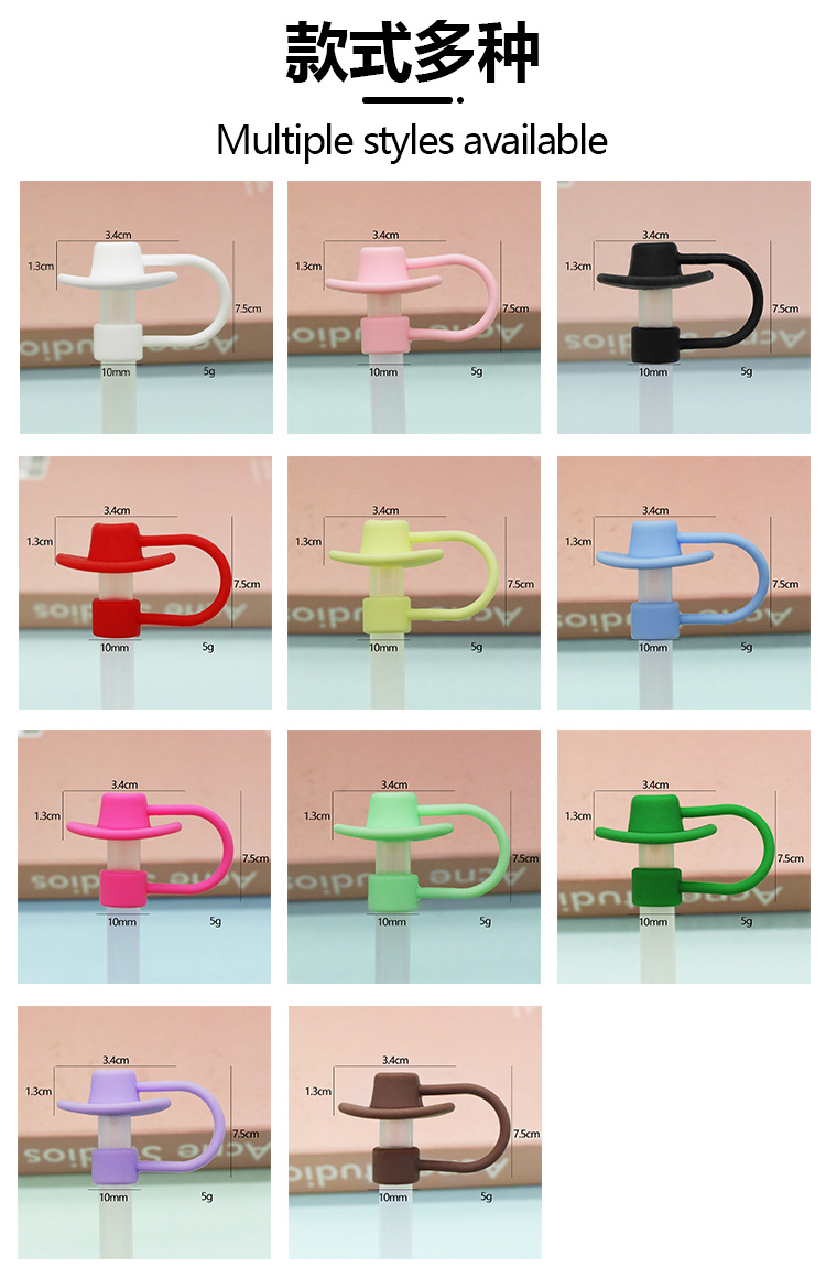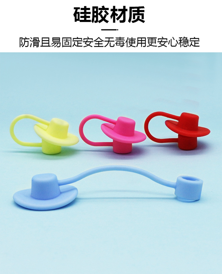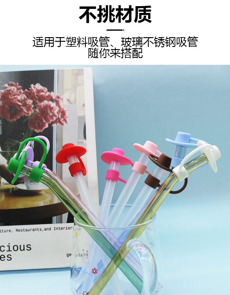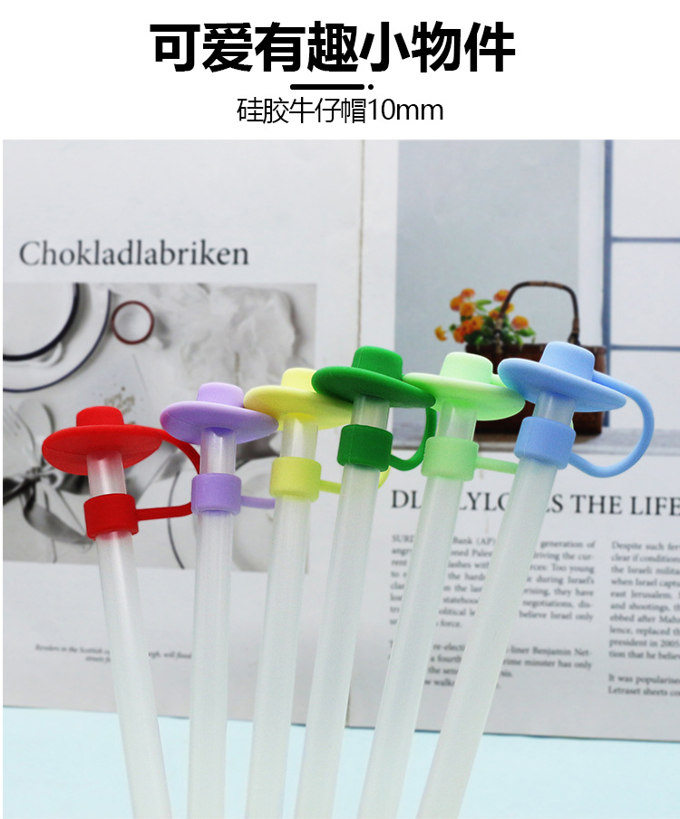 Amazon venta caliente de dibujos animados de silicona vaquero gorra de paja cubierta de hielo taza gorra de paja 10mm enchufe de paja en stock al por mayor