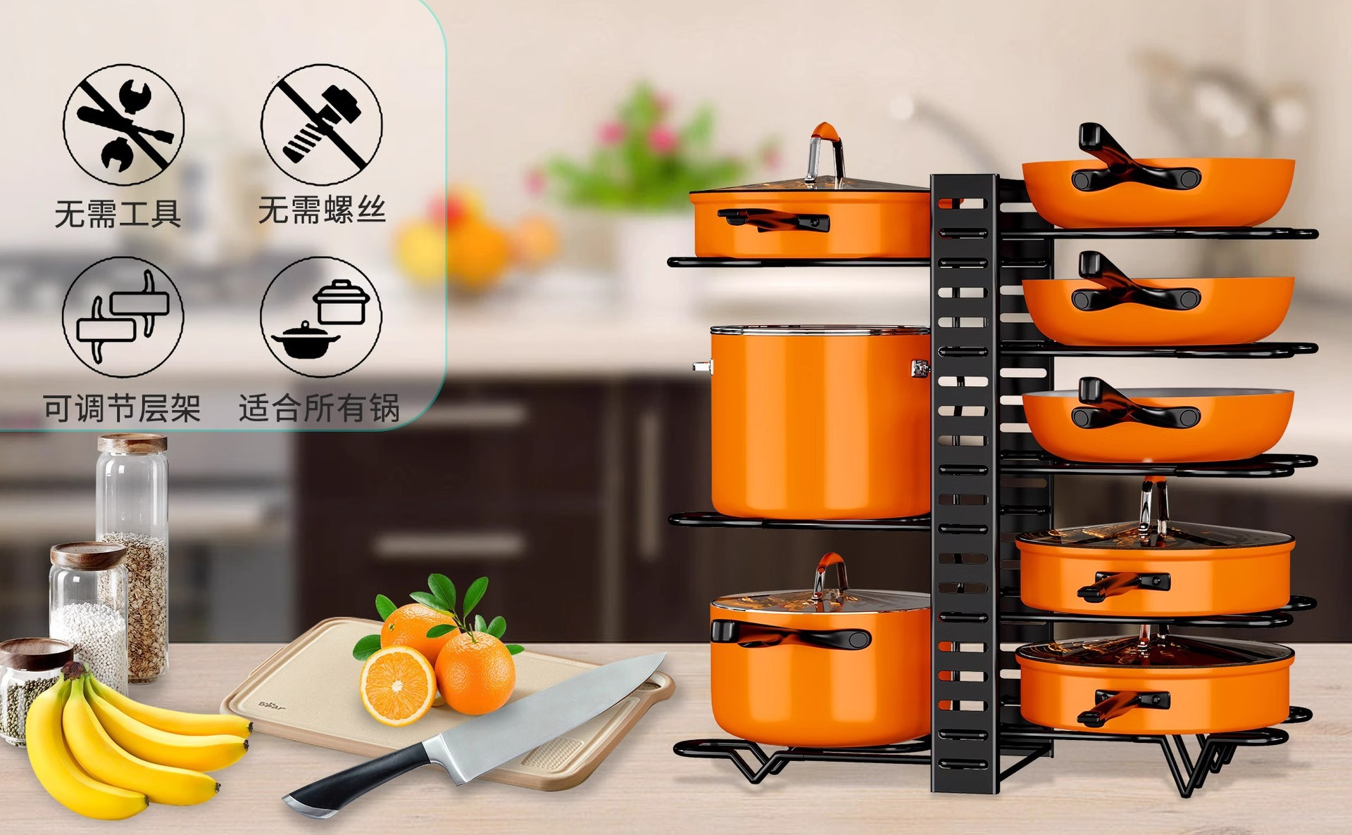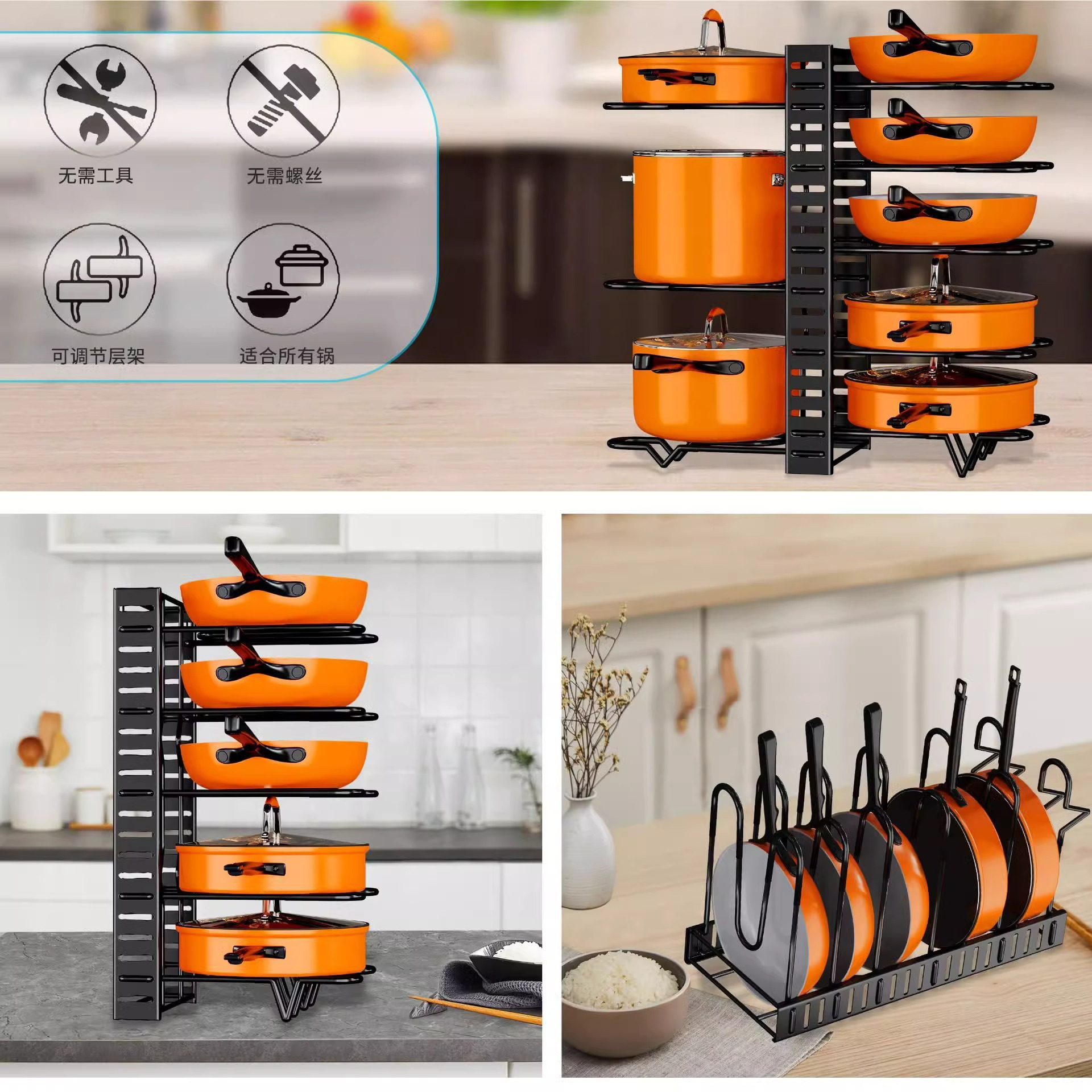 Estante de ollas transfronterizo de Amazon Estante de múltiples capas Estante de tapa de olla de cocina Estante de almacenamiento de olla ajustable Estante de encimera
