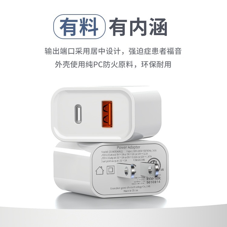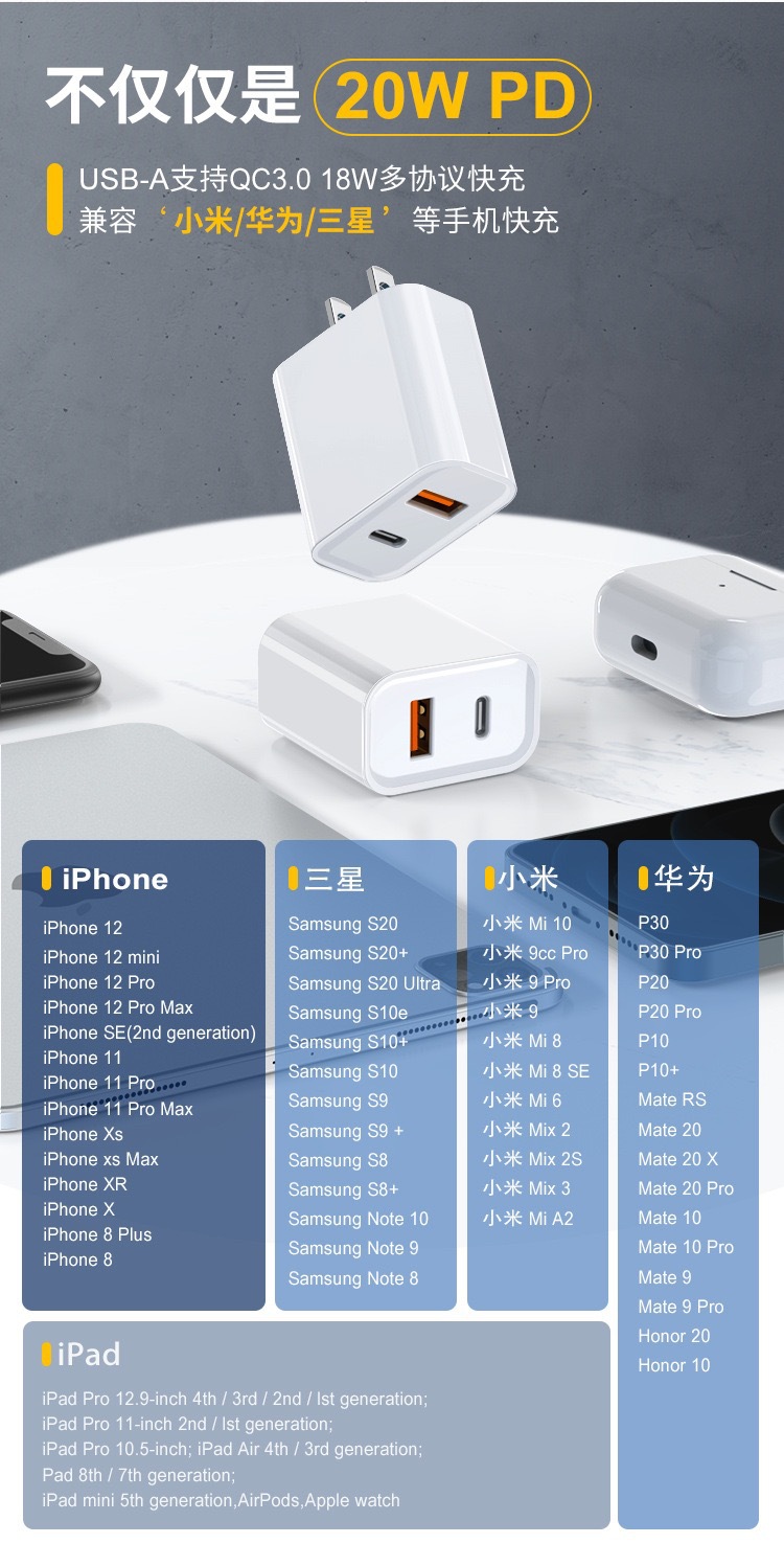 Cargador transfronterizo de doble puerto PD20w de EE. UU. Para teléfono móvil Apple 14/Android A C cargador de carga rápida
