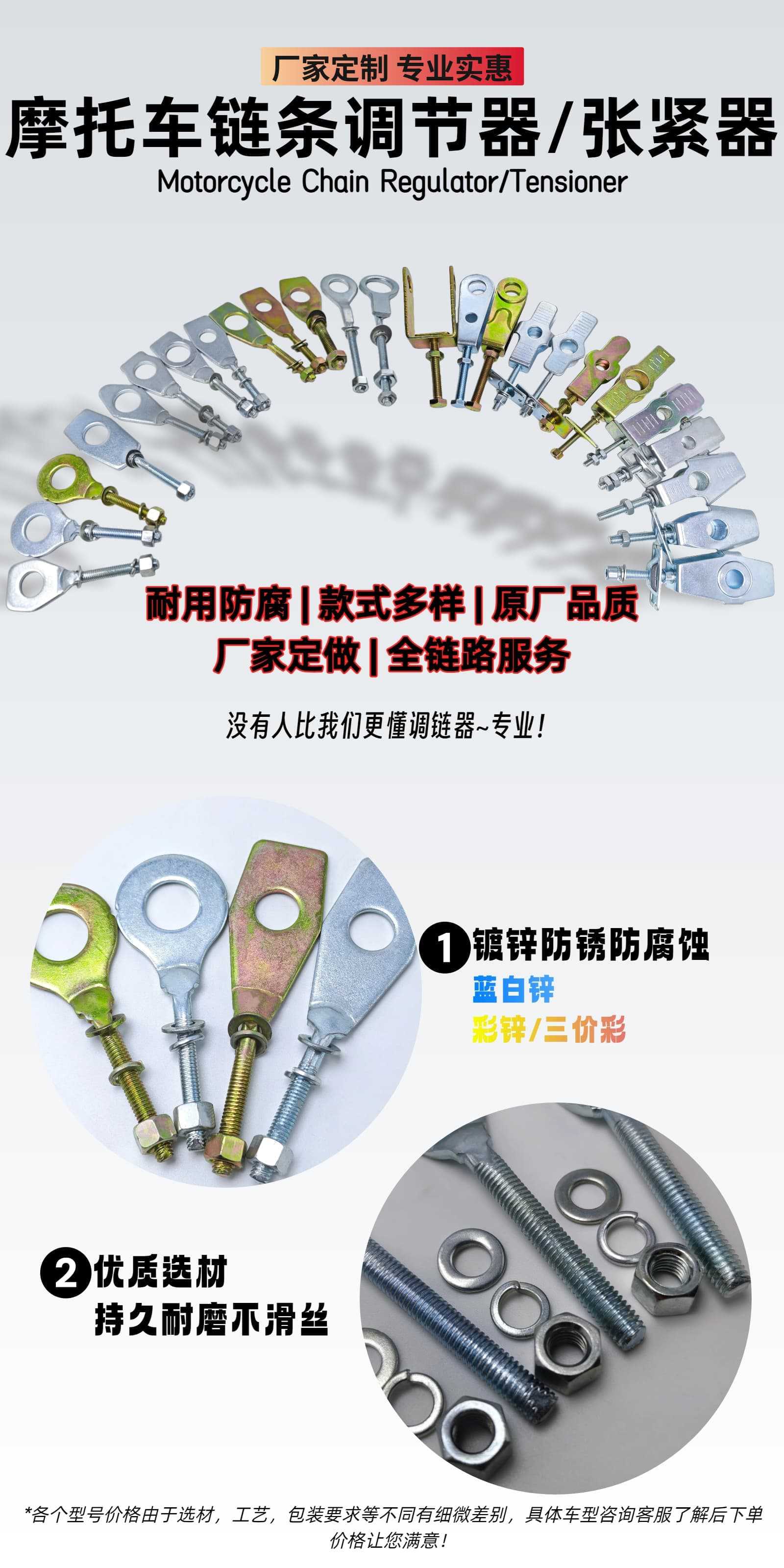 Accesorios de motocicleta regulador de cadena GY200 regulador de cadena tensor de tornillo de tracción trasero grasa de cola de pez personalizada