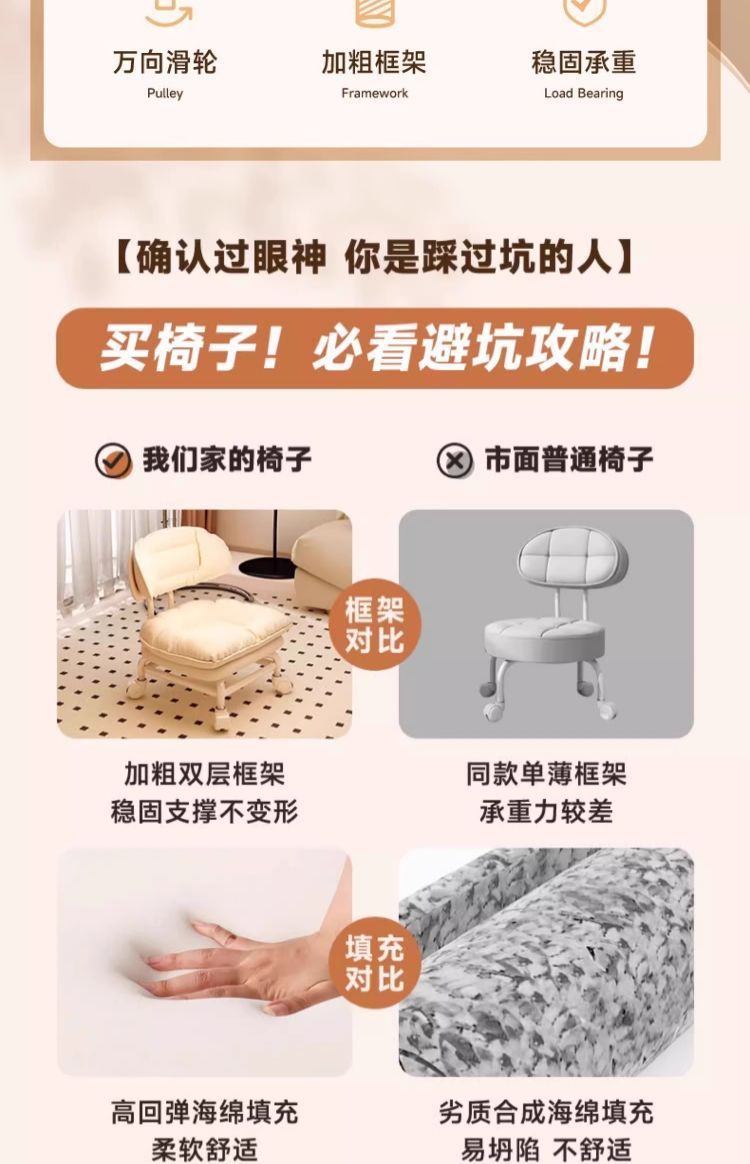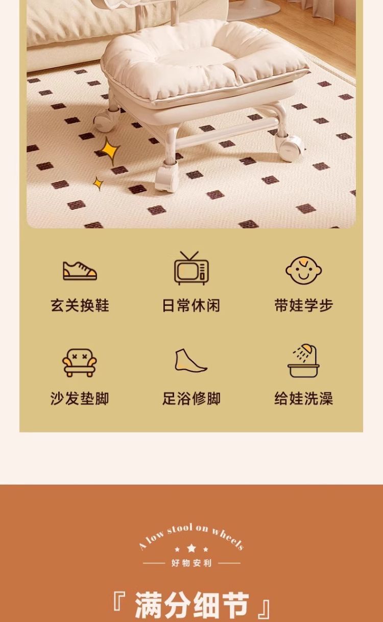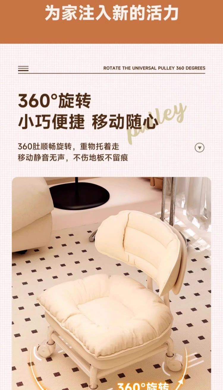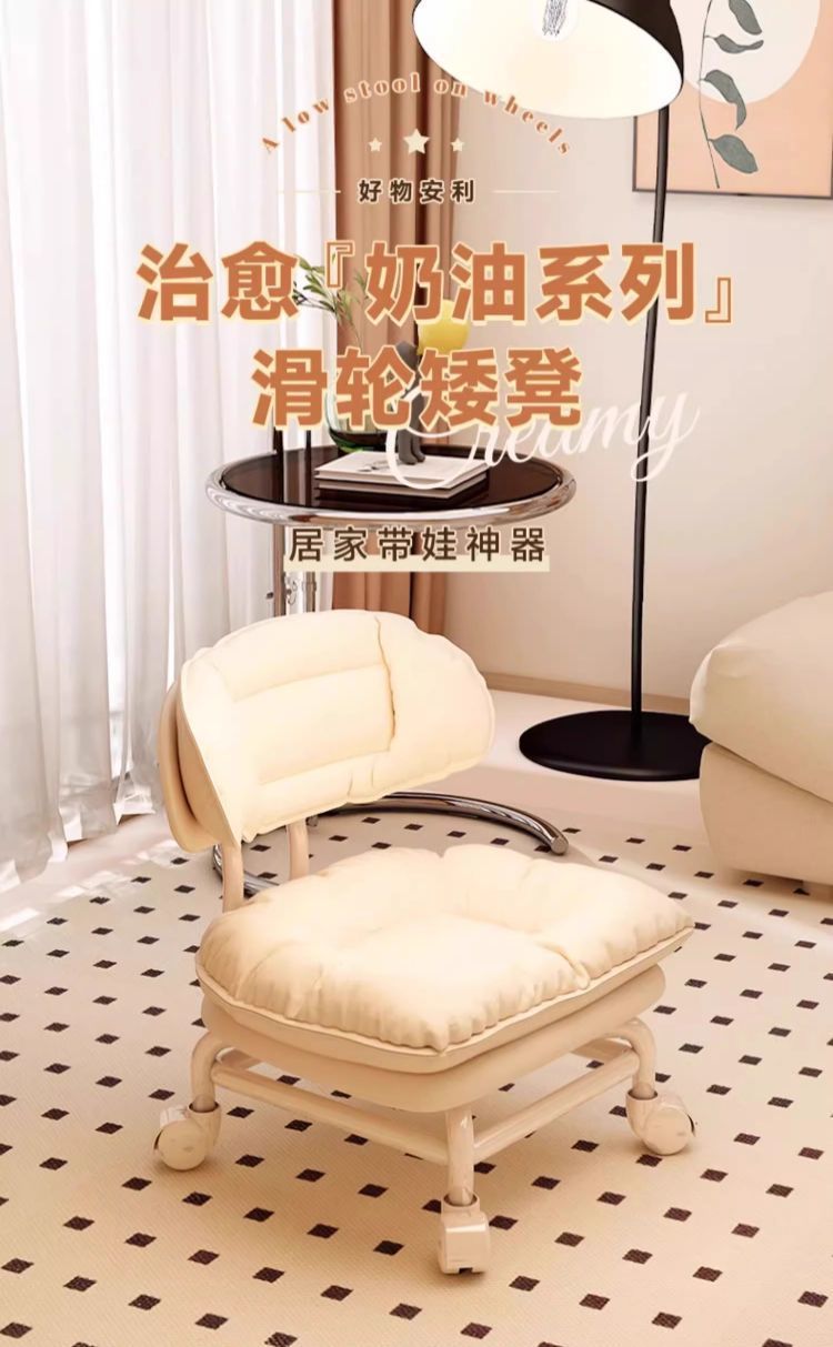 Silencioso universal rueda móvil pequeño taburete respaldo polea banco bajo para niños pequeños banco giratorio simple y moderno