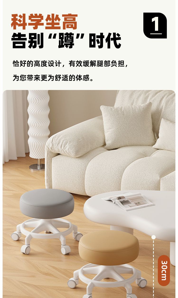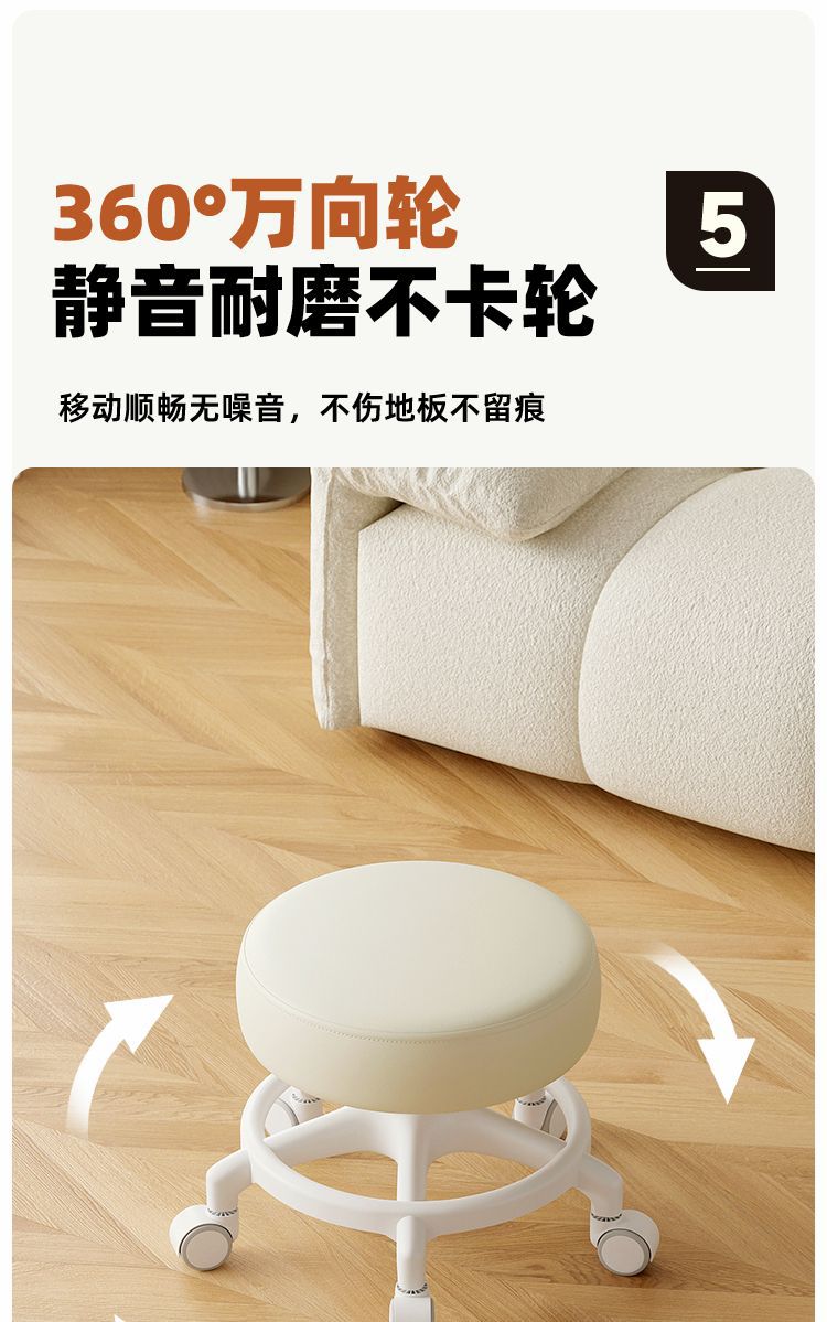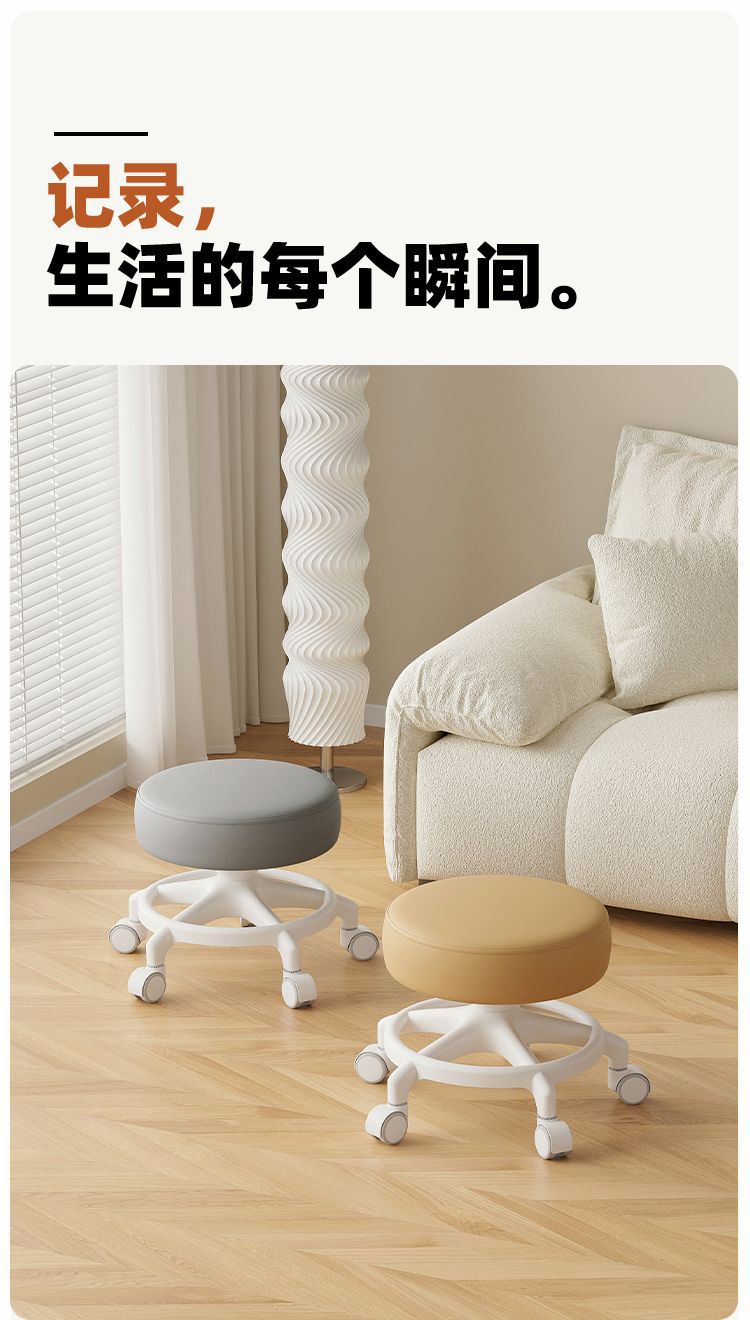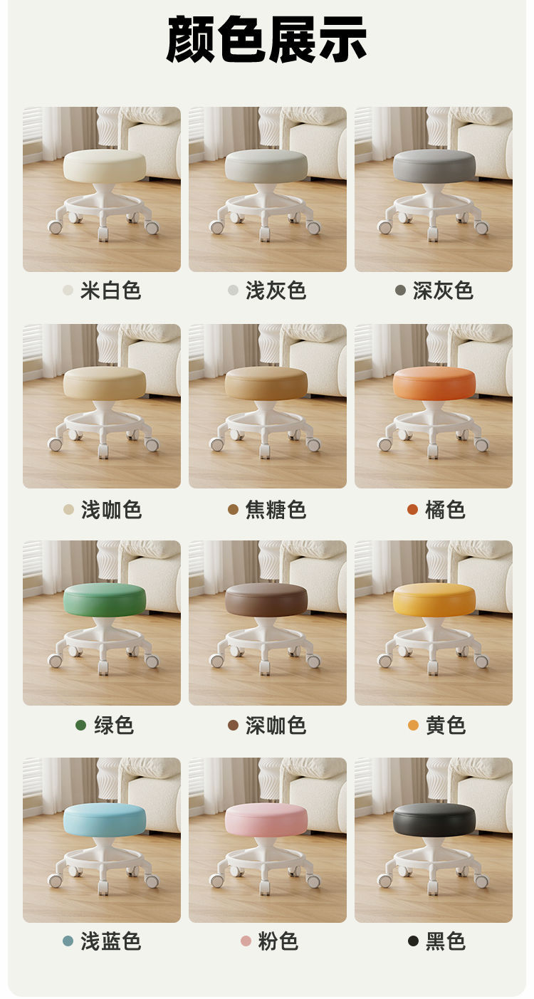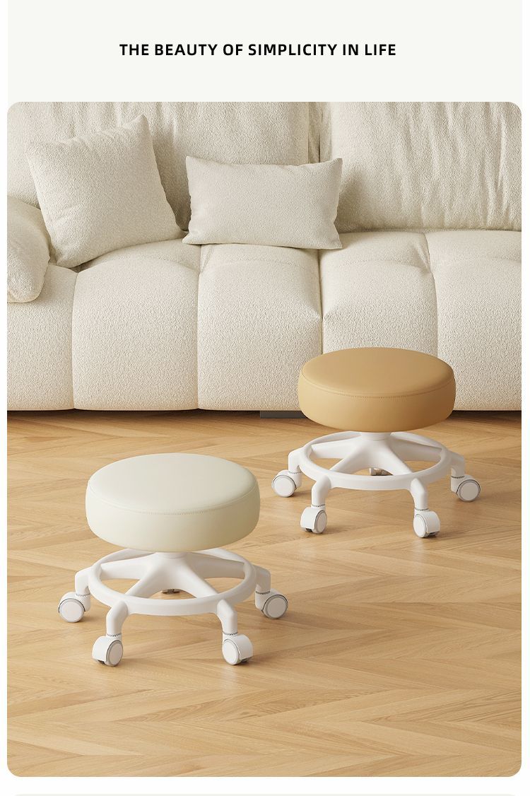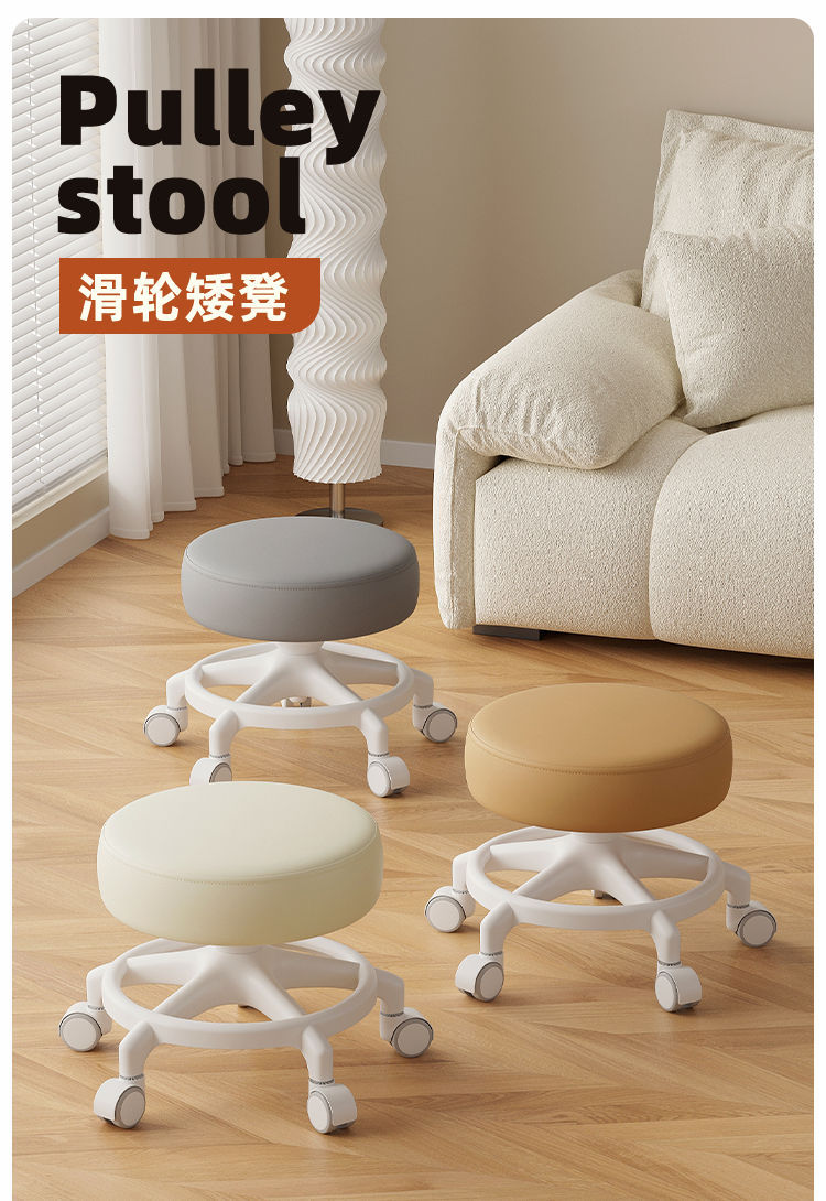 Rueda universal taburete pequeño para cambiar de zapatos, polea de taburete correa baja, banco de rueda de correa redonda, silla de refuerzo anti-rollback para adultos, simple y moderna