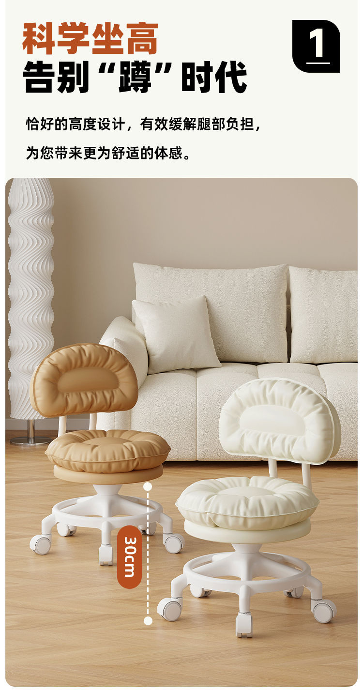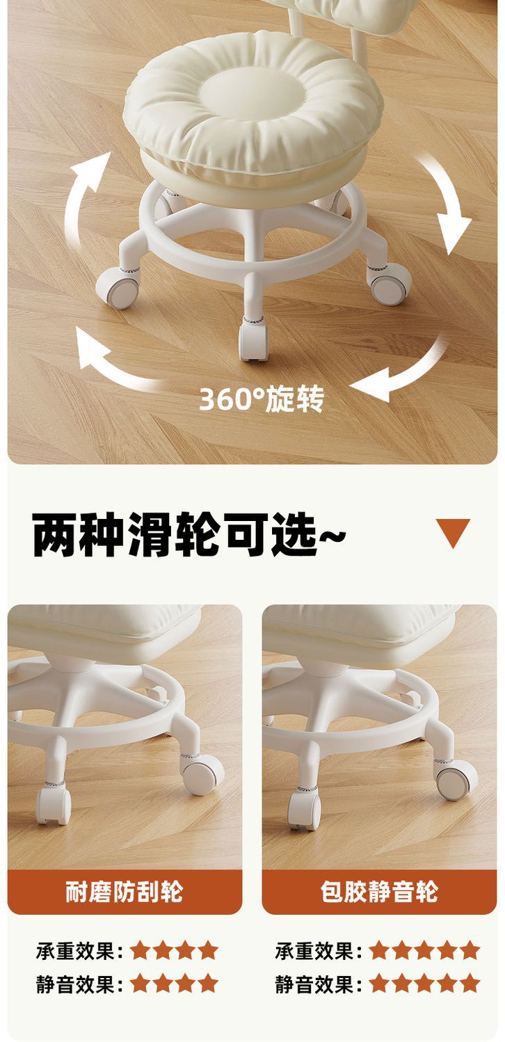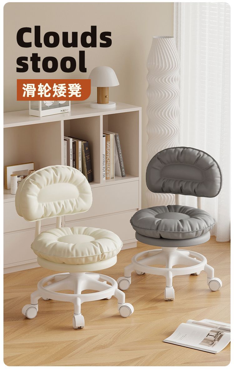 Rueda universal pequeño taburete polea respaldo taburete corto para niños pequeños taburete redondo zapatos de cambio de banco casero rotación silenciosa