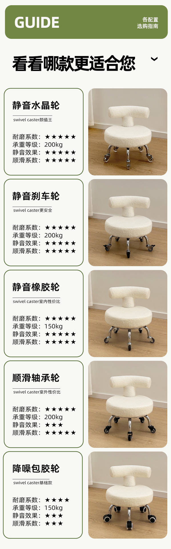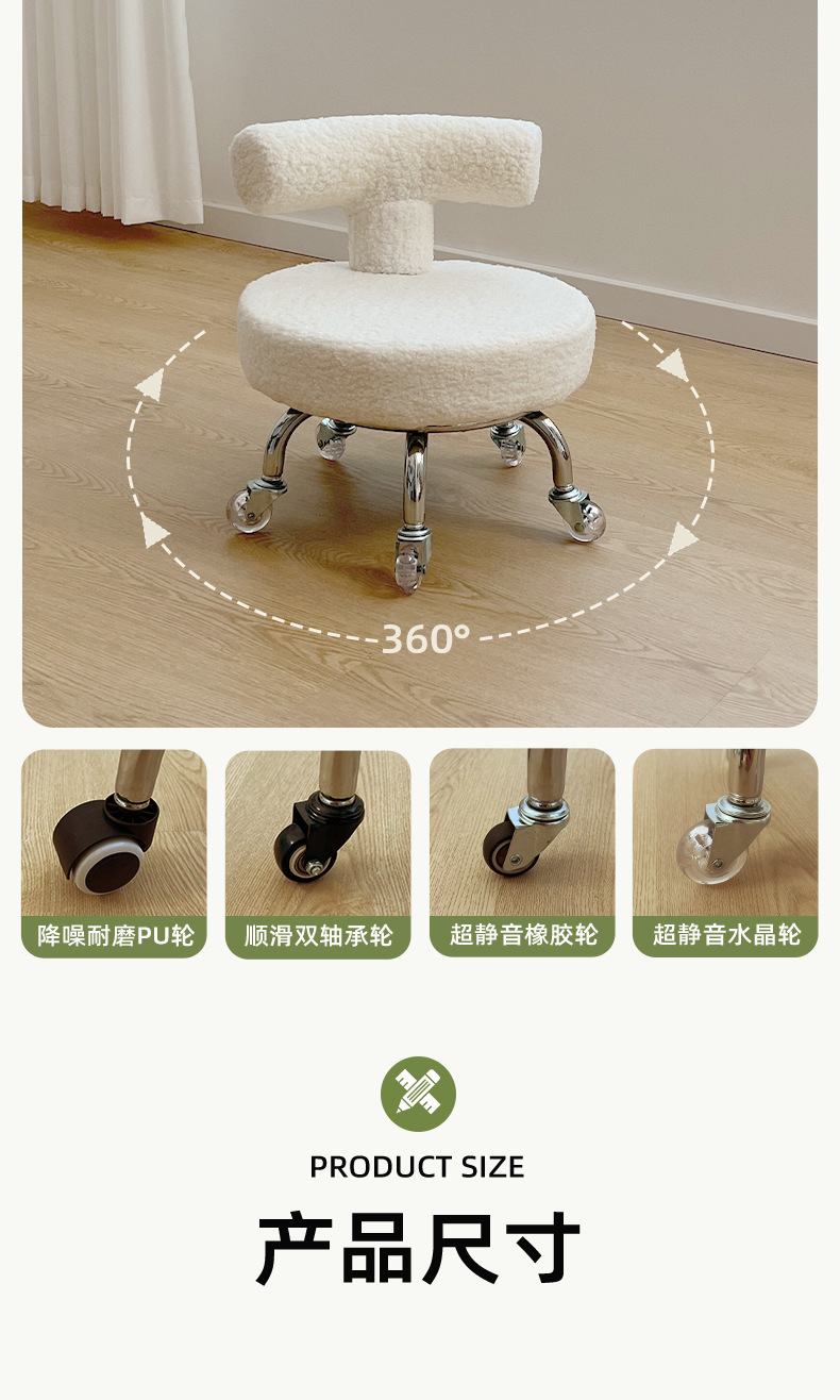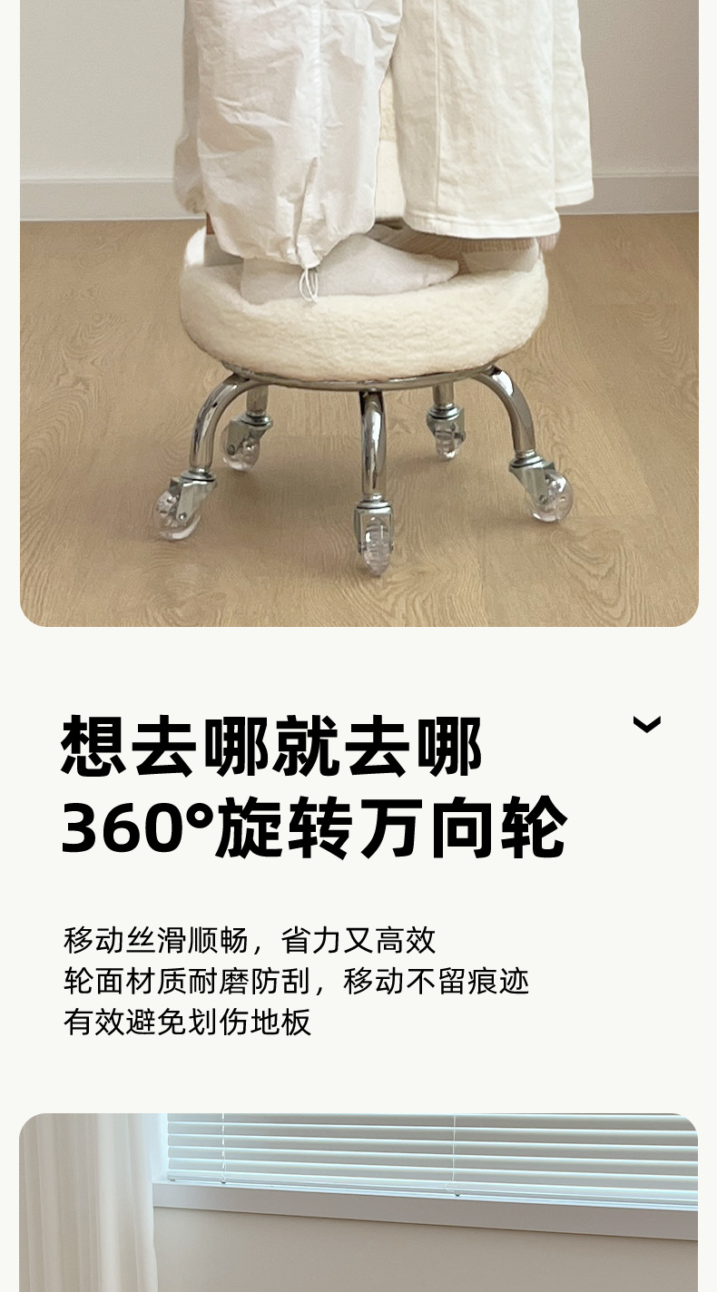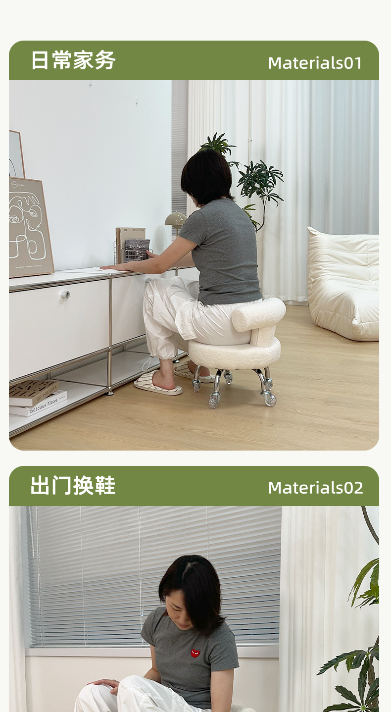 Taburete pequeño, respaldo para el hogar, taburete bajo, rueda universal para niños, silla para caminar, costura hermosa, pedicura, taburete de zapatos, simple y moderno