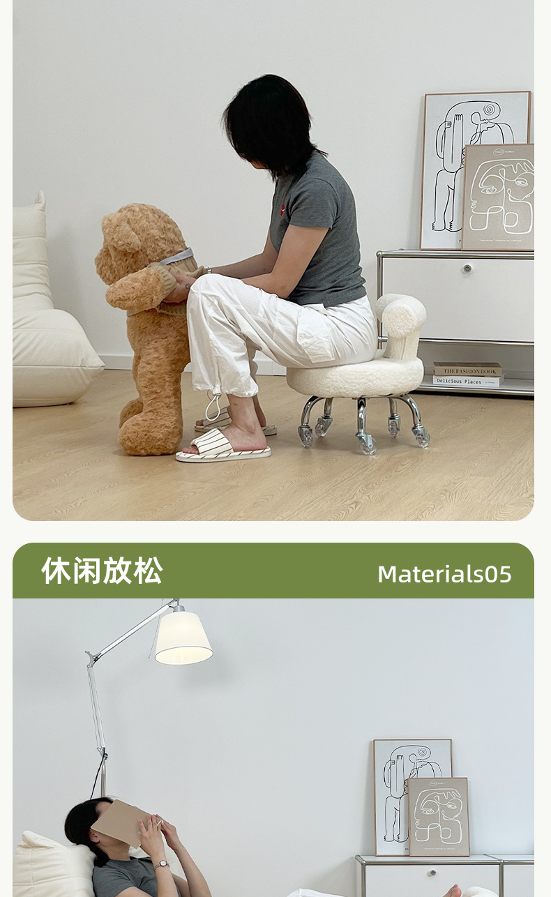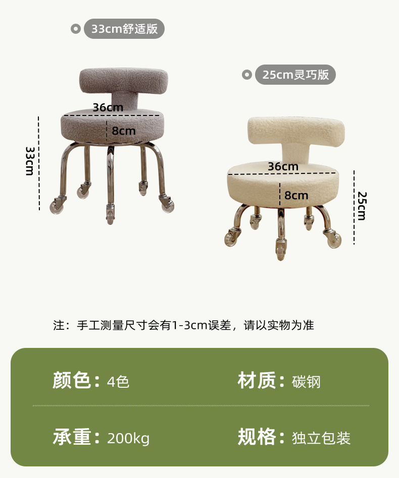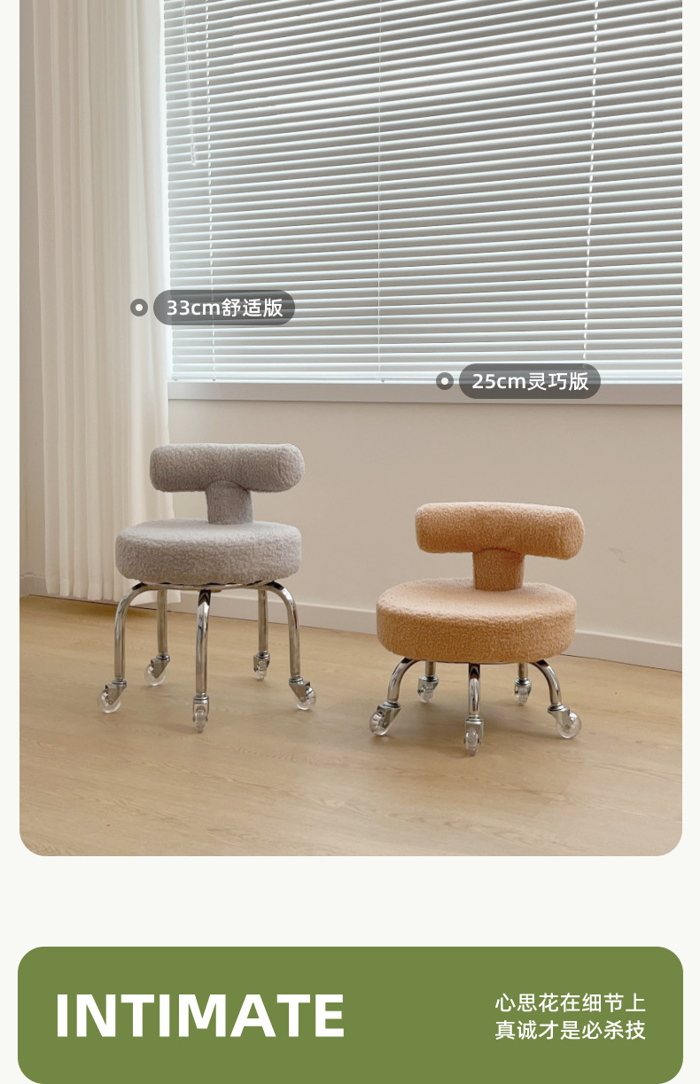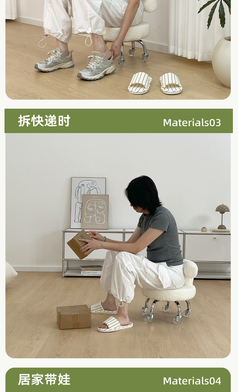 Taburete pequeño, respaldo para el hogar, taburete bajo, rueda universal para niños, silla para caminar, costura hermosa, pedicura, taburete de zapatos, simple y moderno