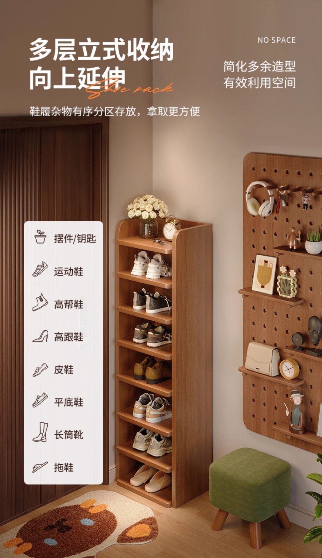 Estante de zapatos multicapa puerta doméstica interior simple pequeño estante estrecho para alquiler 2025 nuevo gabinete de zapatos de almacenamiento