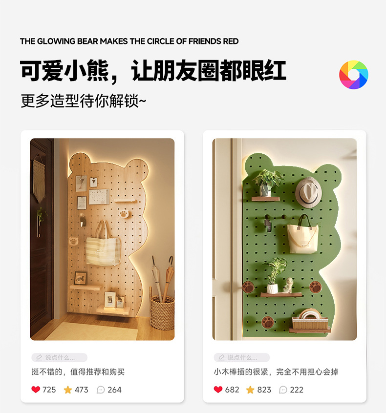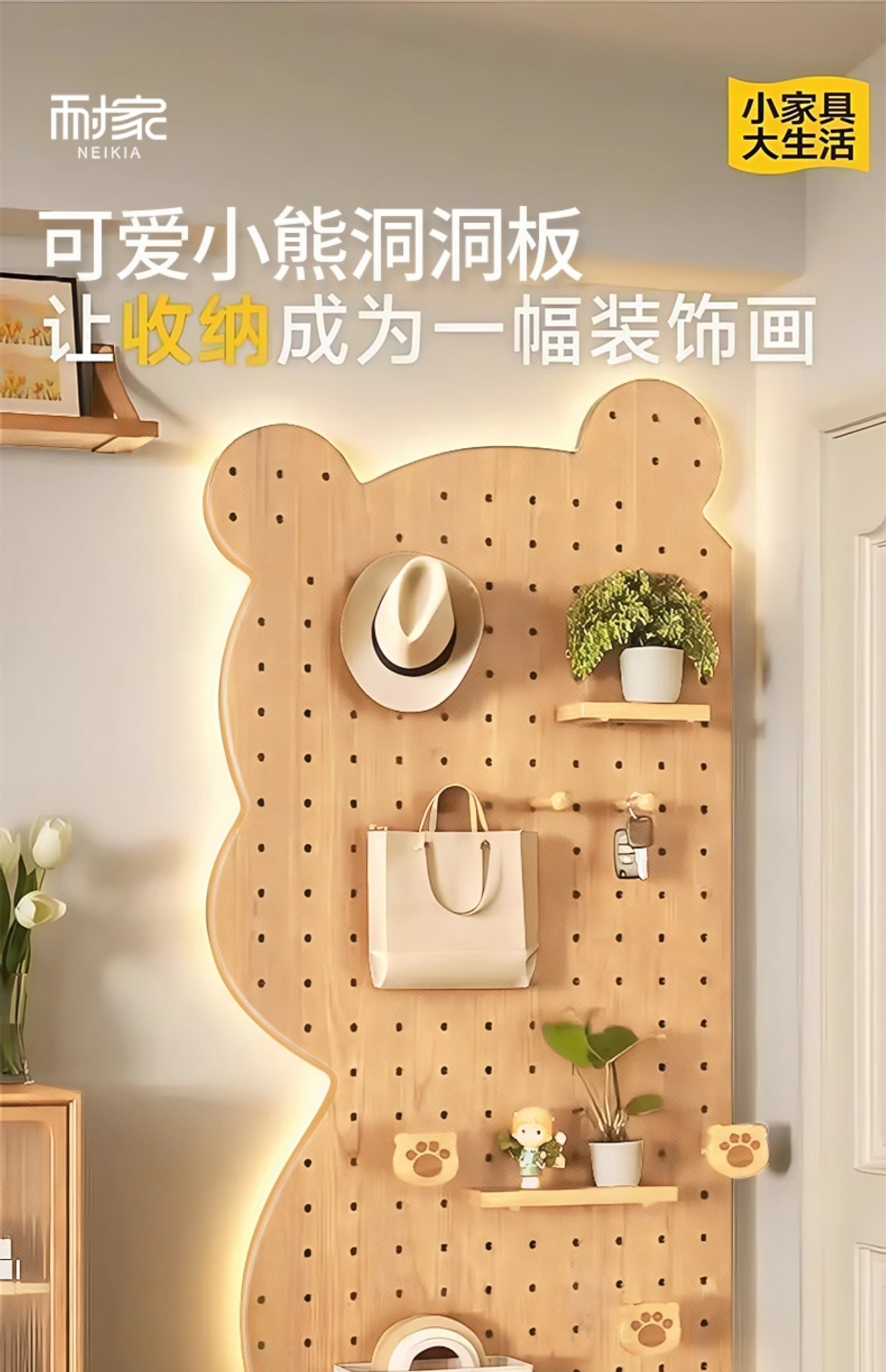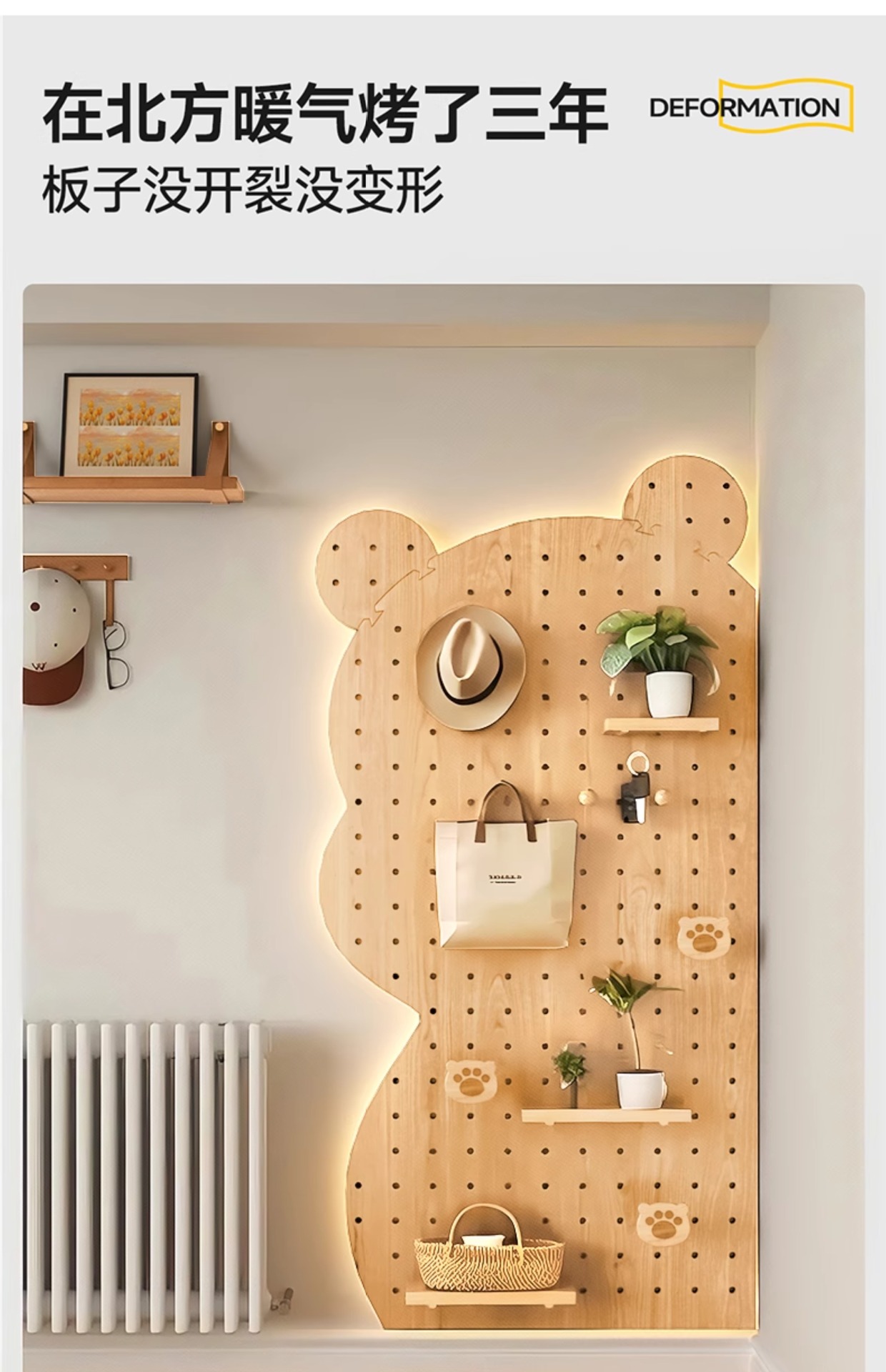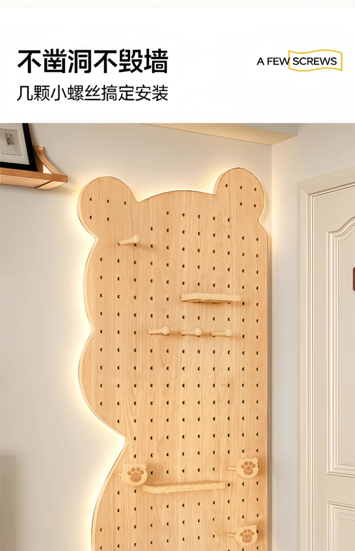 Oso pequeño agujero agujero tablero de escritorio de madera sólida almacenar exhibición modelado decoración de pared sala de estar estante de pared