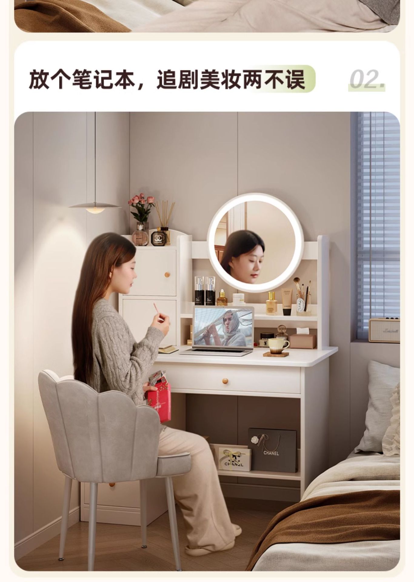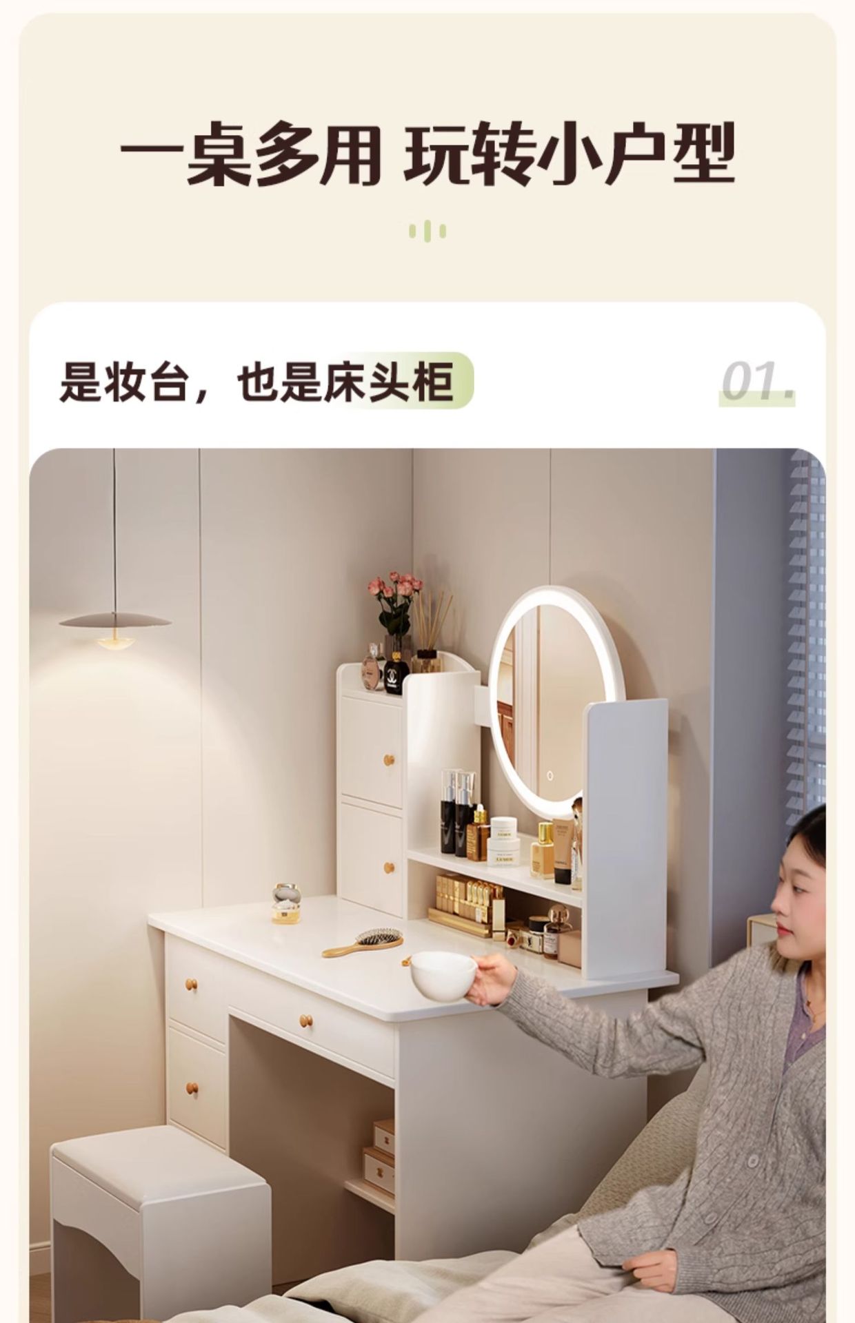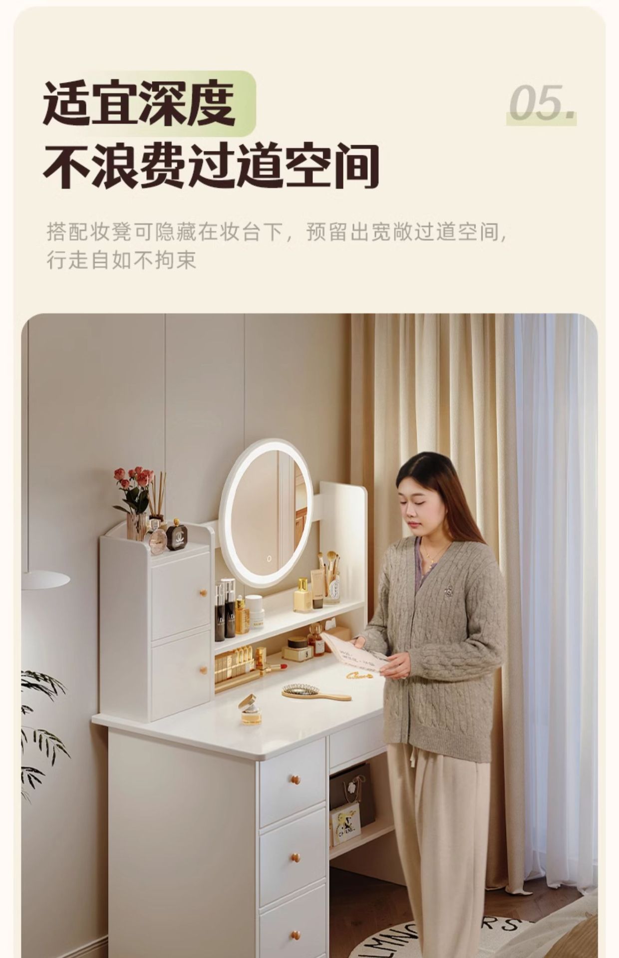 Comedor de vestir dormitorio simple y moderno 2025 nuevo tipo de lujo pequeño tipo de casa principal dormitorio almacenamiento en una simple mesa de maquillaje