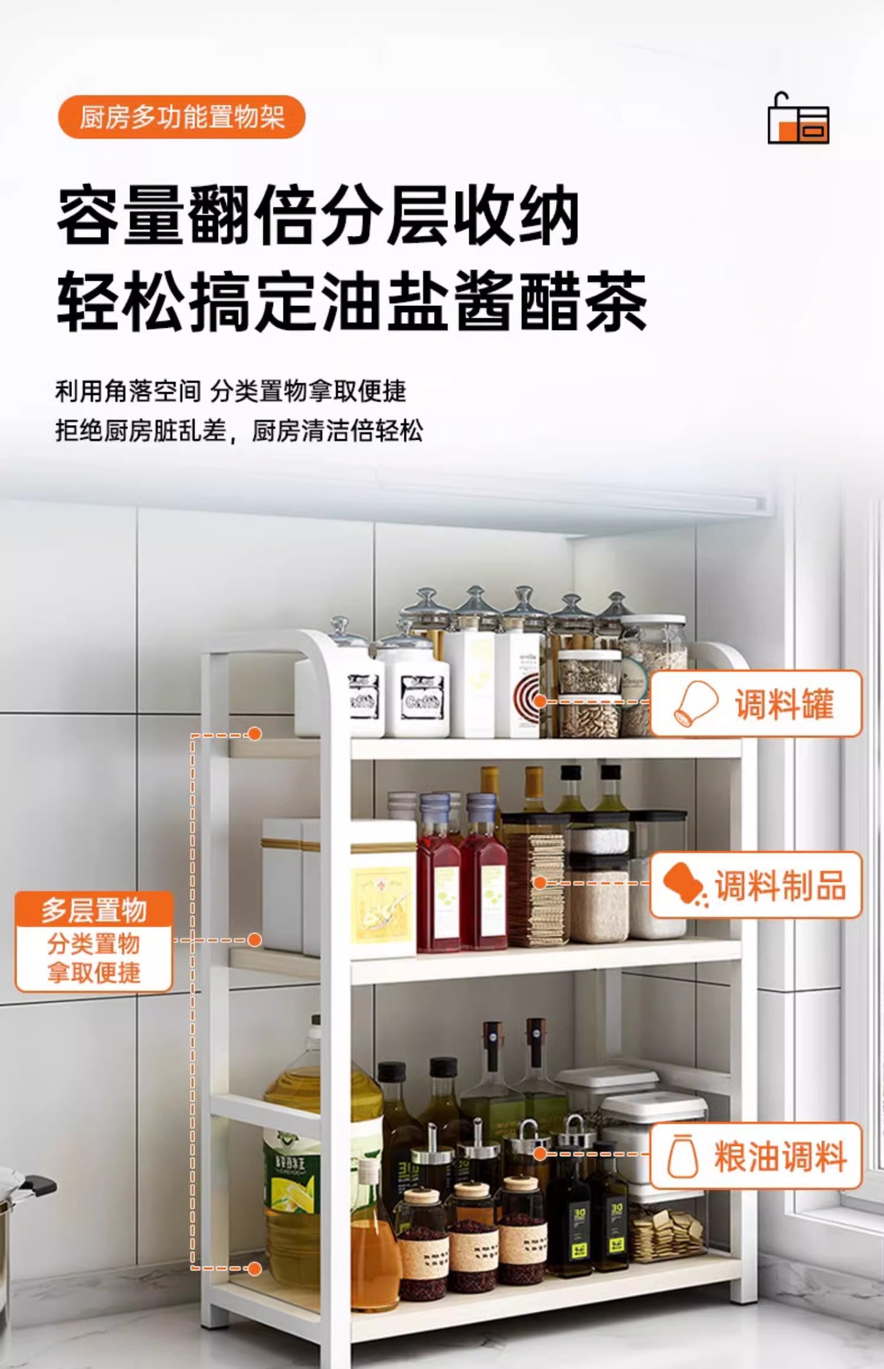 Estante de almacenamiento de cocina Estante de condimento multifuncional Estante de almacenamiento doméstico multicapa de sal y aceite Estante de almacenamiento de condimento de mesa