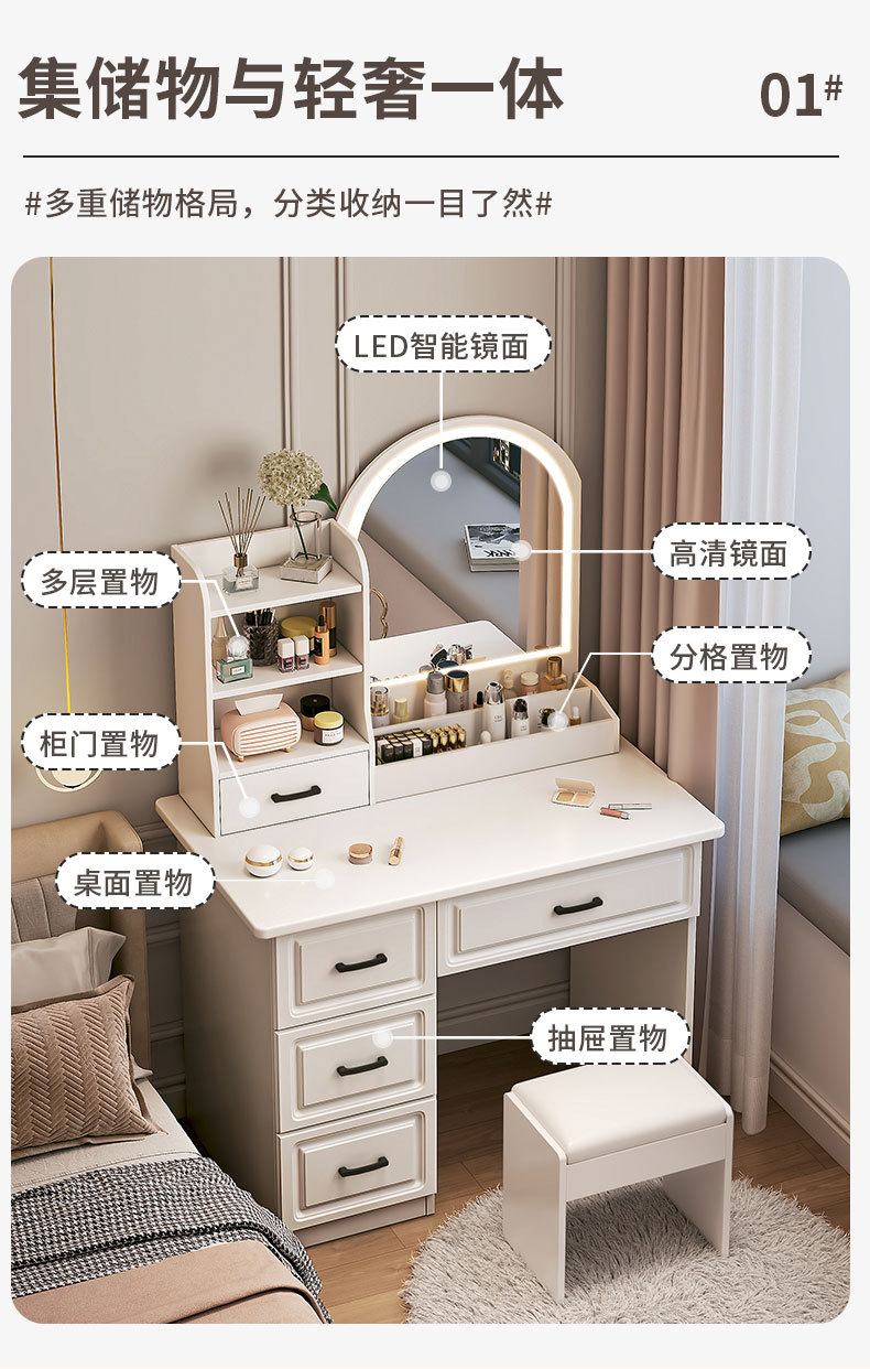Simple mesa de maquillaje de estilo europeo dormitorio pequeño armario de almacenamiento integrado crema de lujo ligero Internet celebridad pequeño apartamento tocador