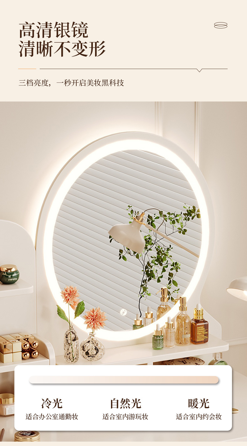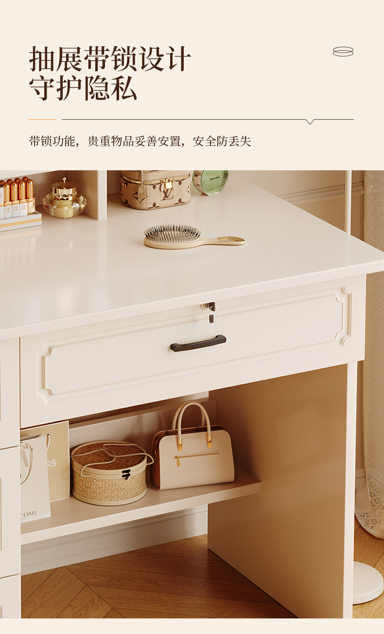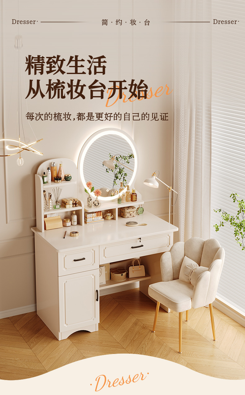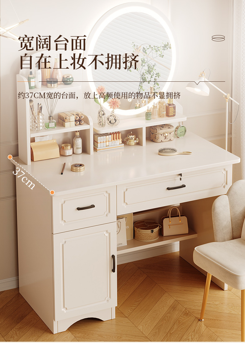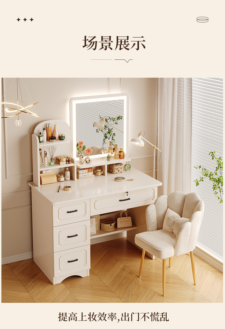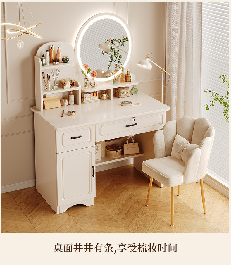 Comedor de tocador pequeño dormitorio estilo europeo de la niña crema de viento gabinete en una mesa de lujo ligero con espejo de maquillaje mesa de maquillaje