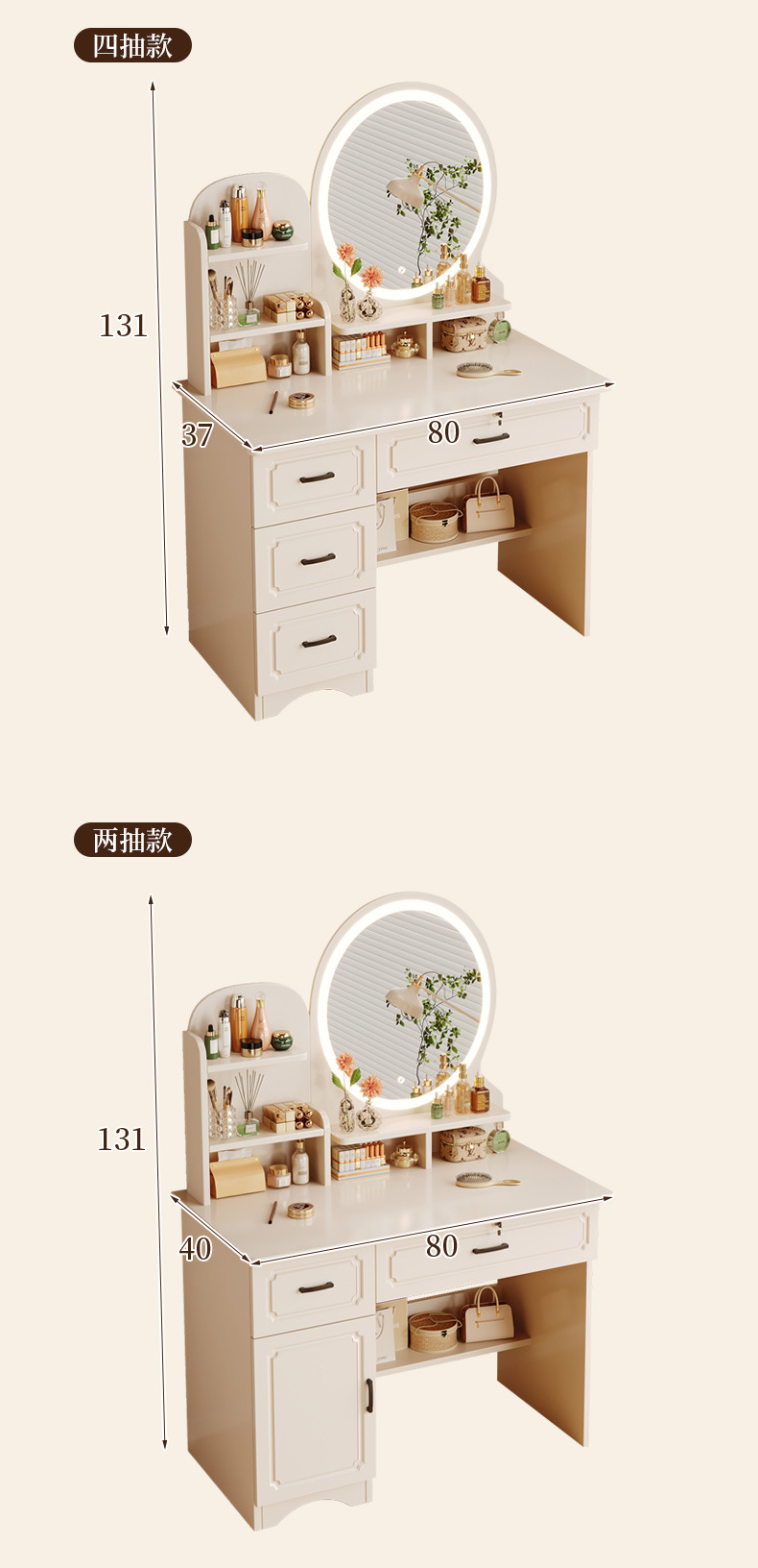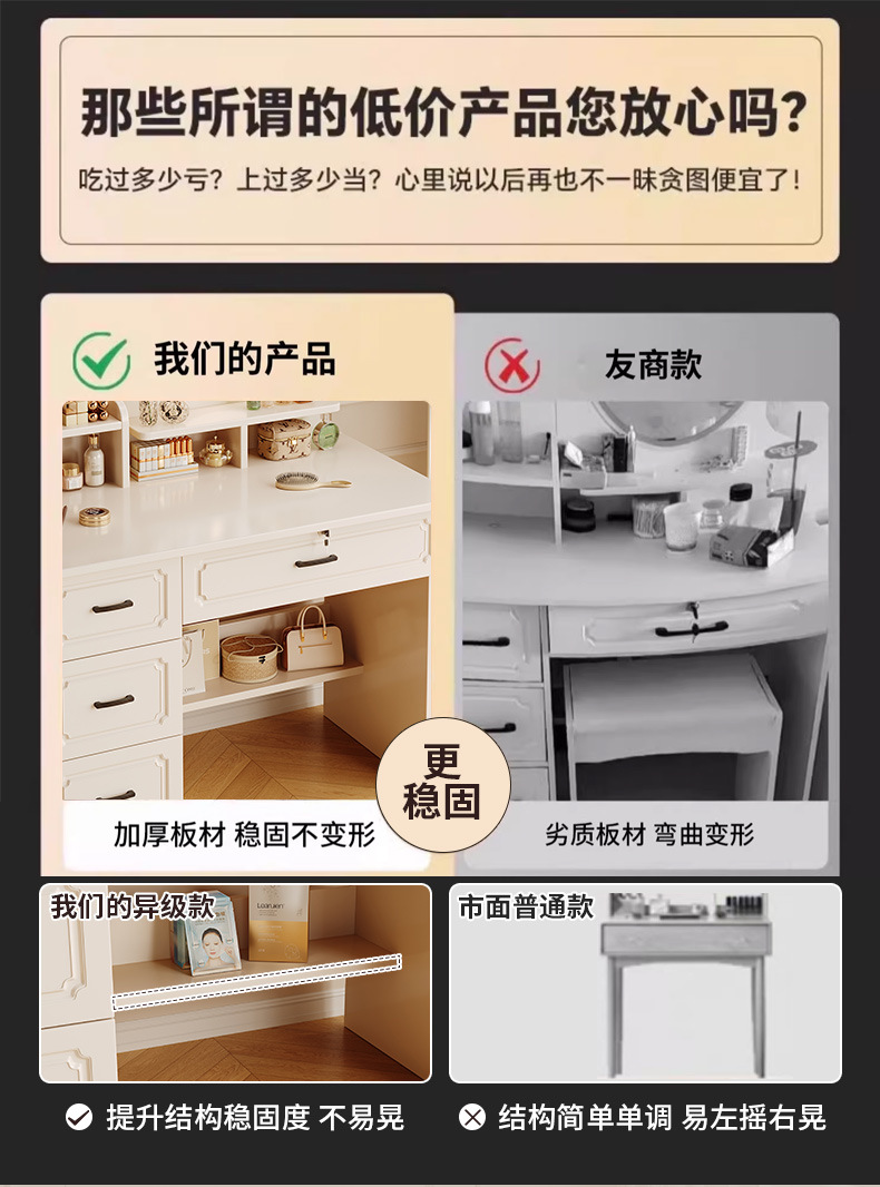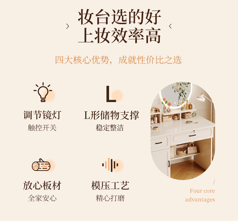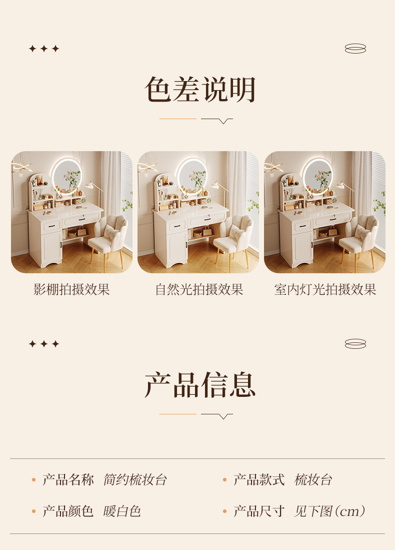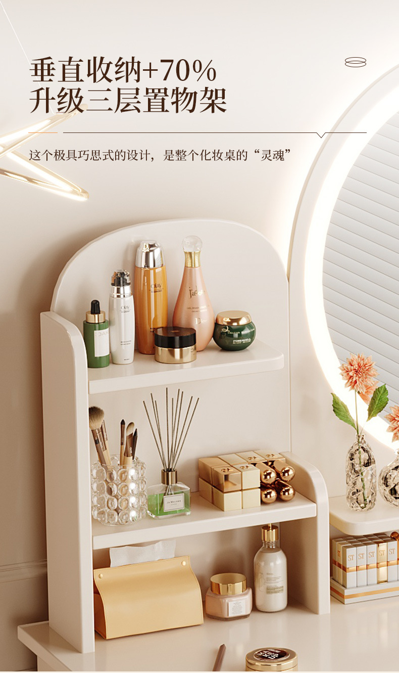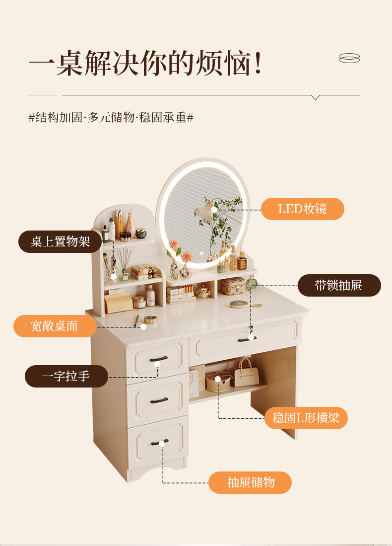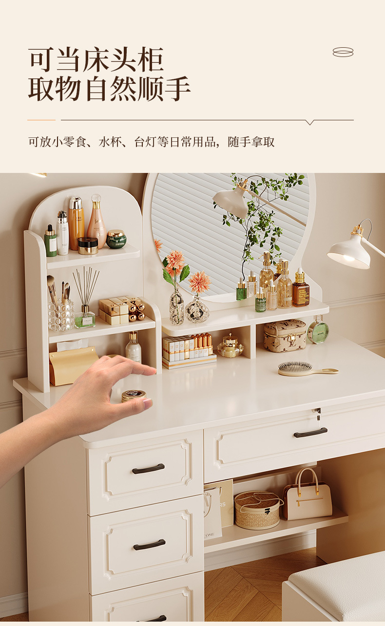 Comedor de tocador pequeño dormitorio estilo europeo de la niña crema de viento gabinete en una mesa de lujo ligero con espejo de maquillaje mesa de maquillaje