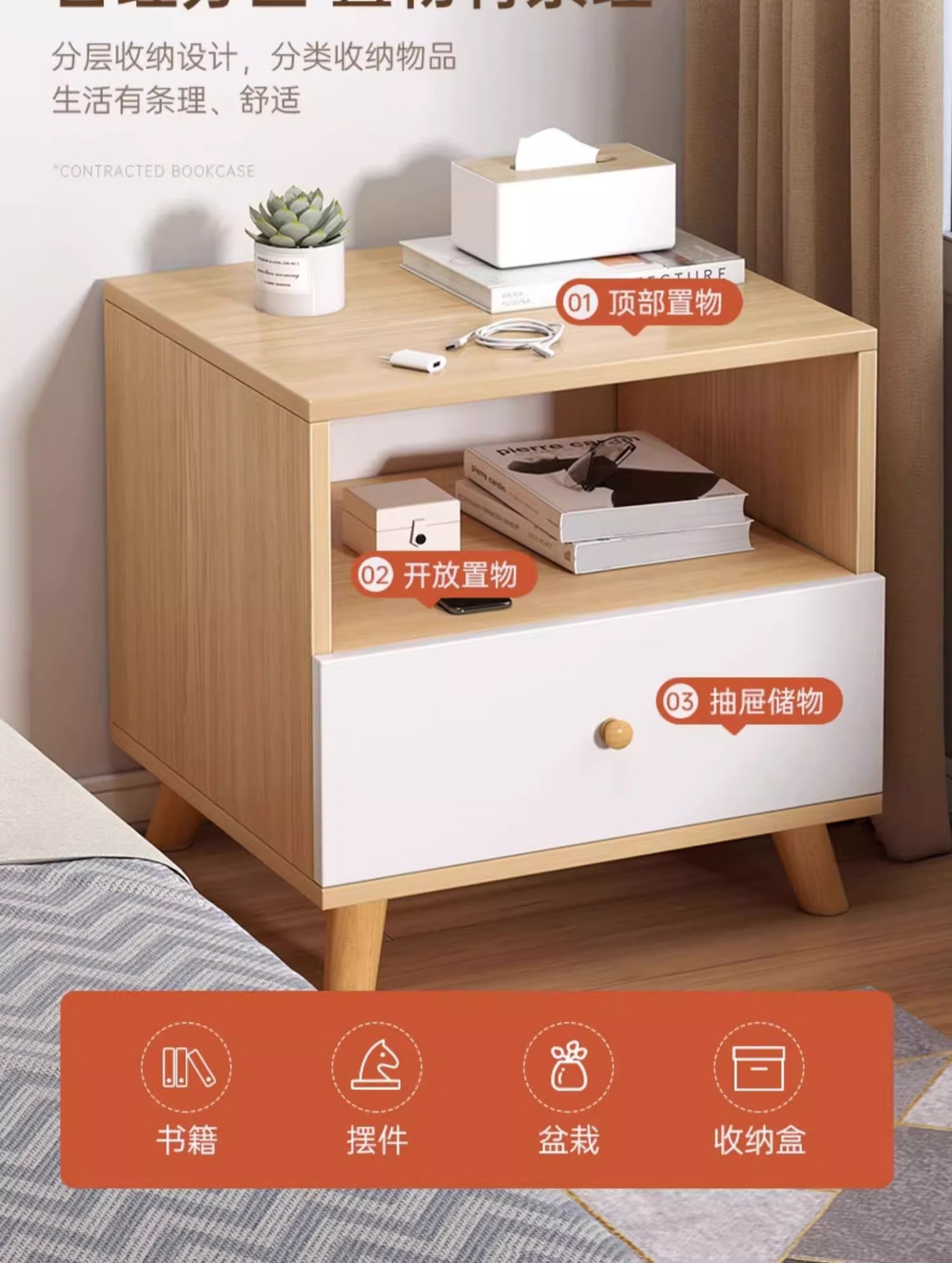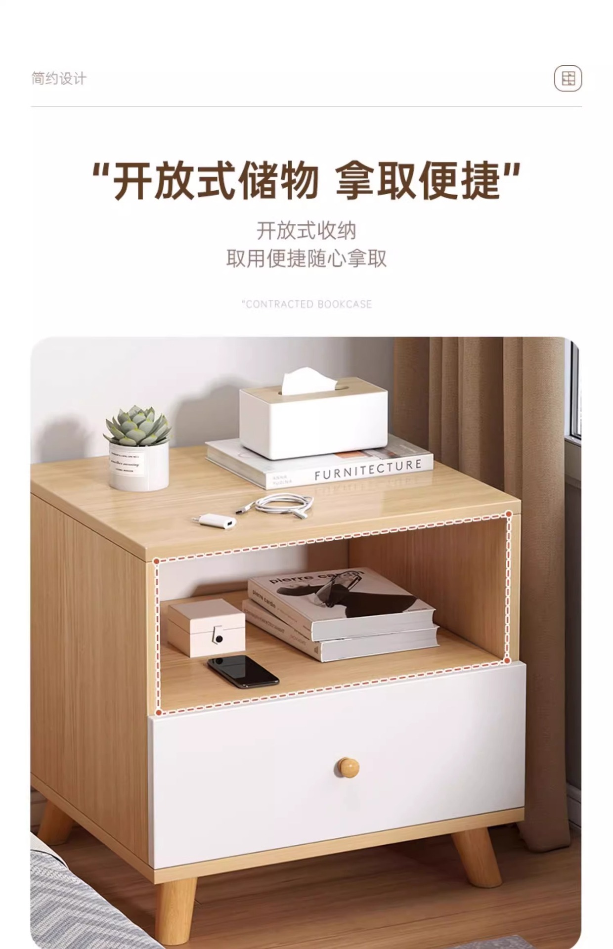 Taberna de cabecera moderna y simple dormitorio pierna de madera maciza pequeño armario armario de almacenamiento simple estante de cabecera