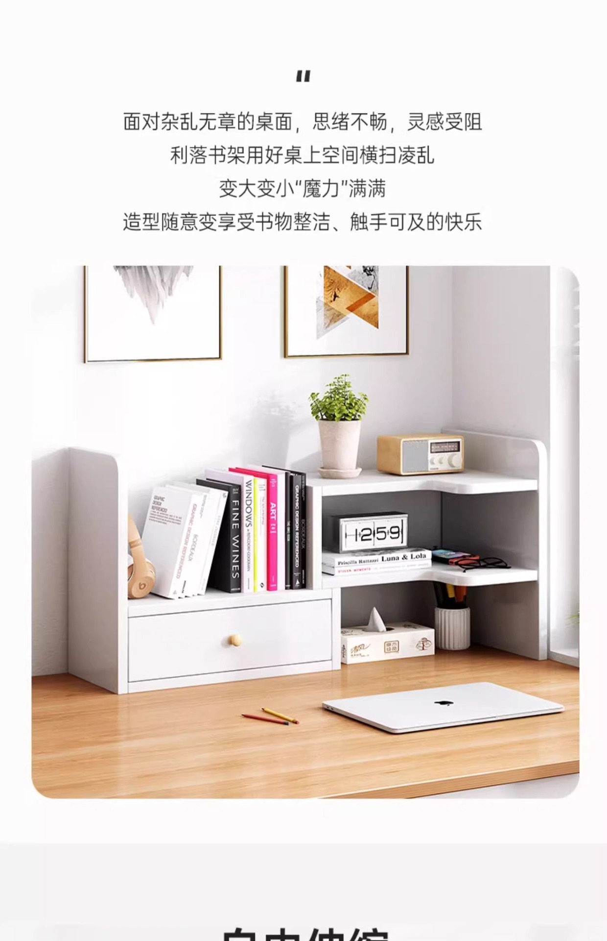 Estante de escritorio retráctil de elevación estante de almacenamiento estante de oficina estante de almacenamiento dormitorio de estudiantes estante de acabado cosmético