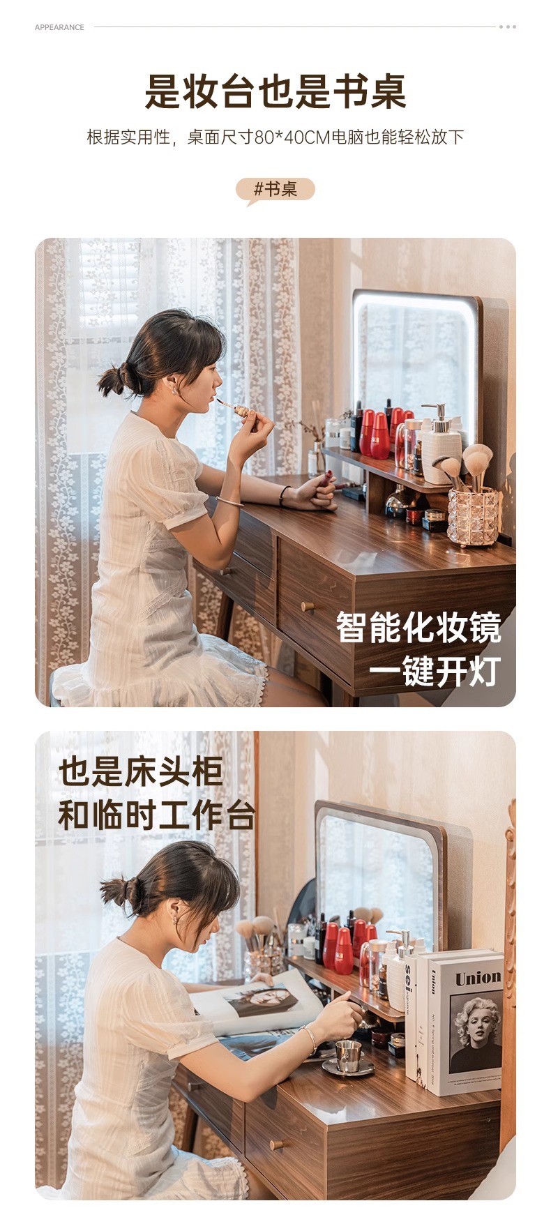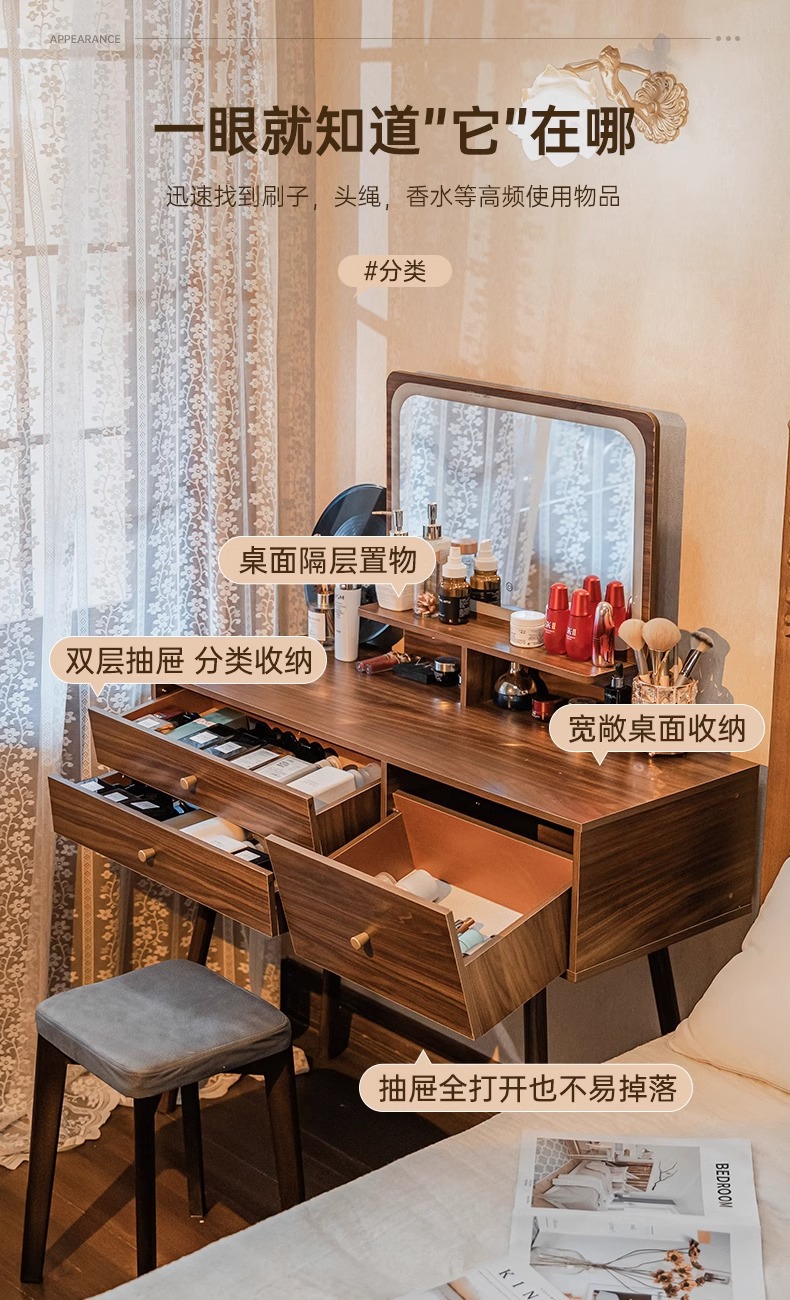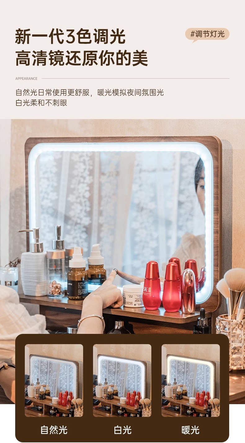 Nuevo estilo chino dormitorio moderno y simple 2025, nuevo tipo de lujo pequeño escritorio de escritorio en línea de maquillaje en uno