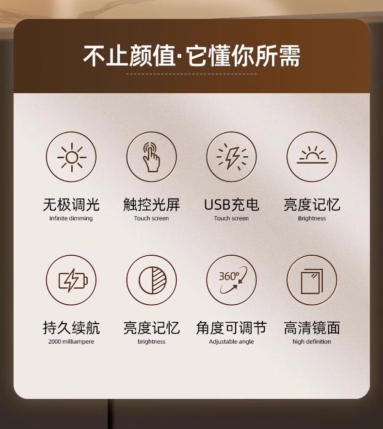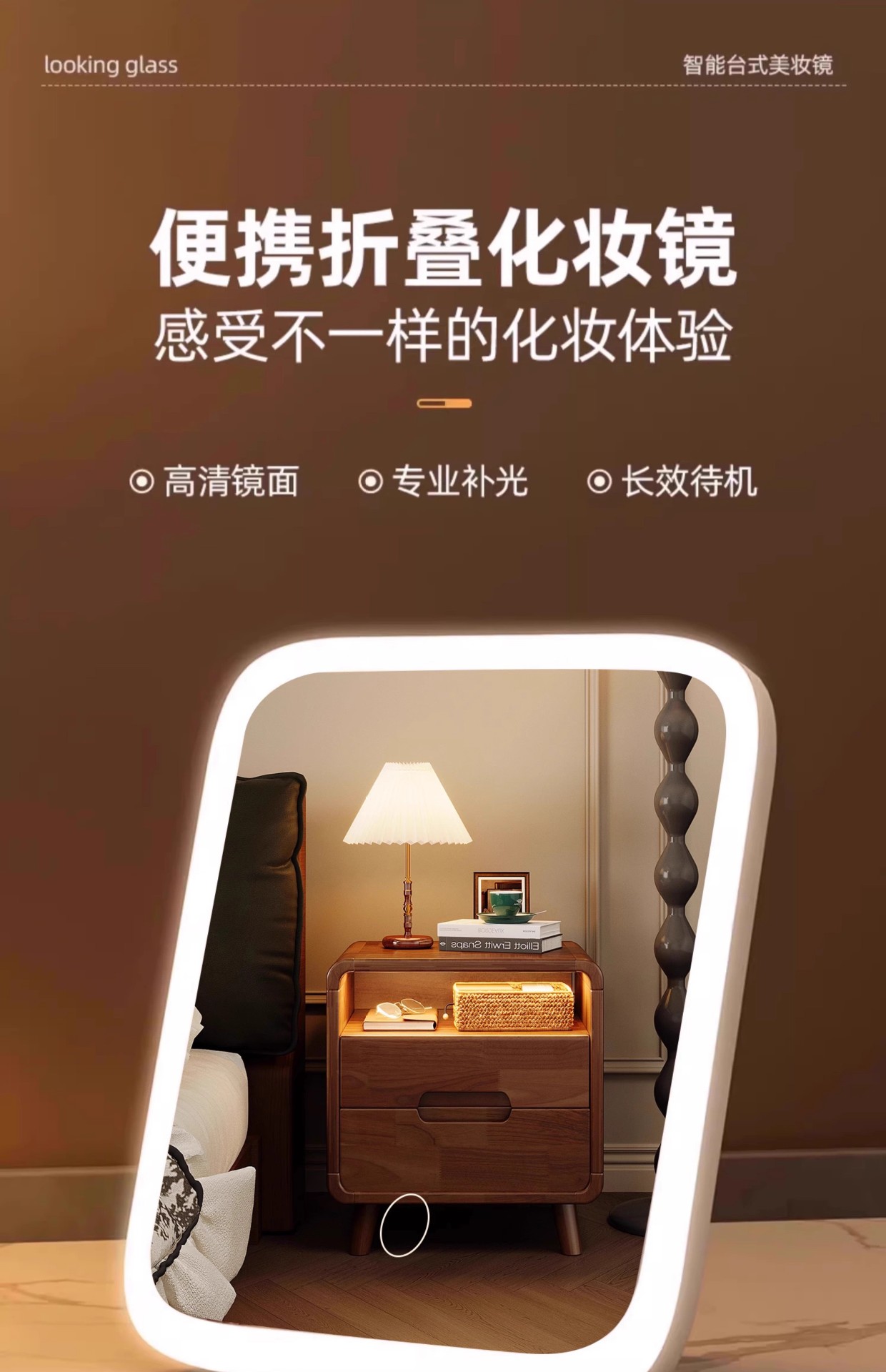 LED con lámpara梳妆台 espejo de maquillaje de brillo 2025 nuevo inwind dormitorio espejo plegable de escritorio