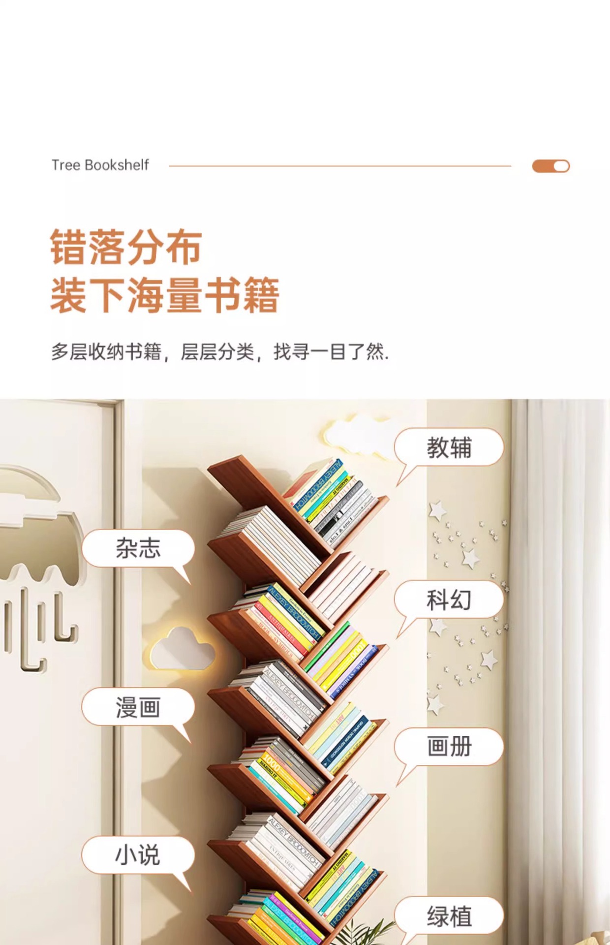 Estante de árbol simple estante de piso dormitorio contra la pared simple pequeño gabinete creativo moderno gabinete estrecho
