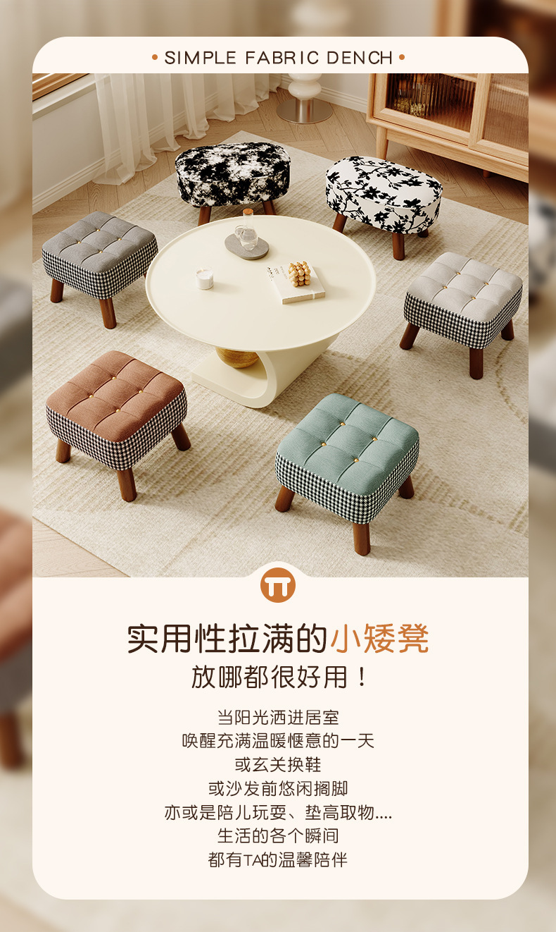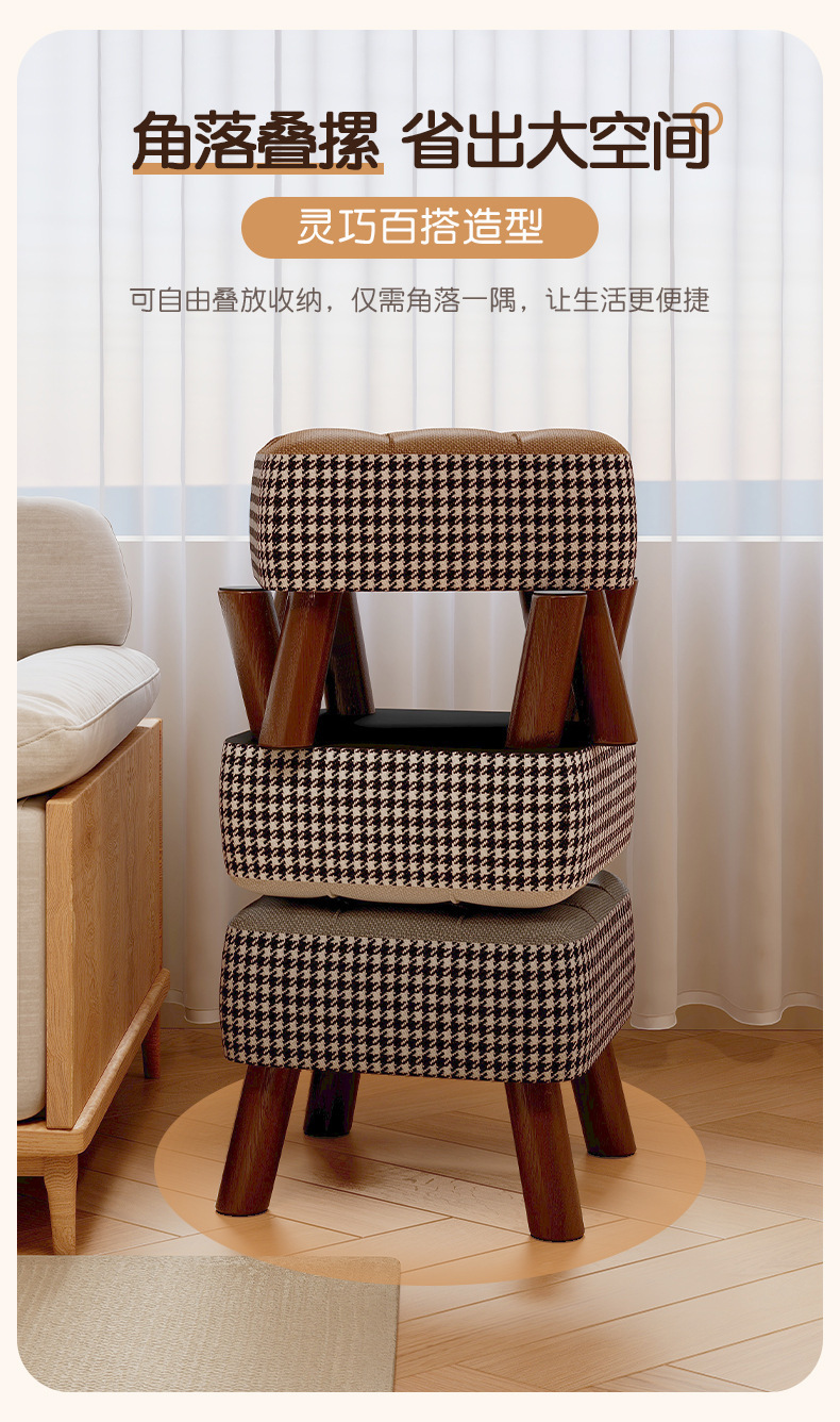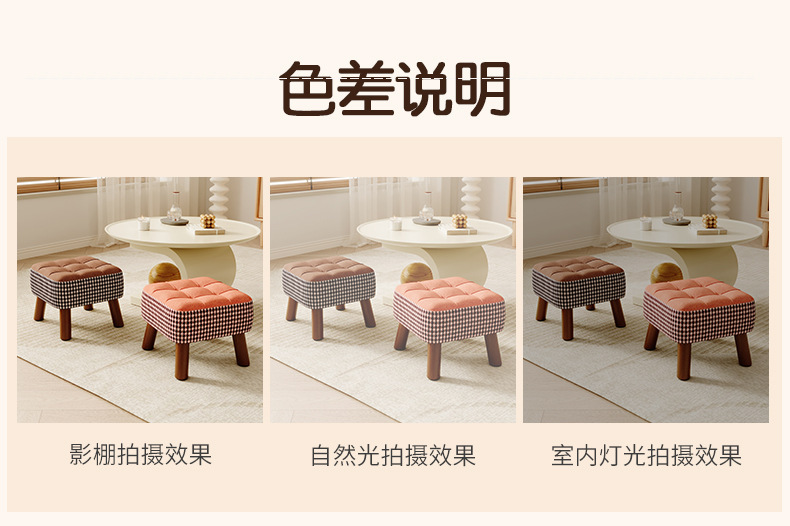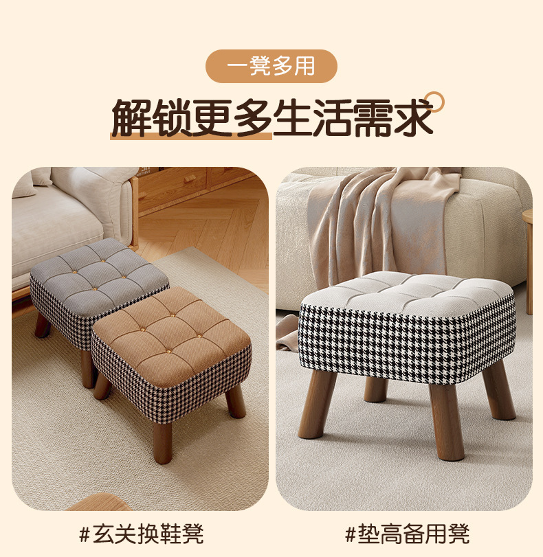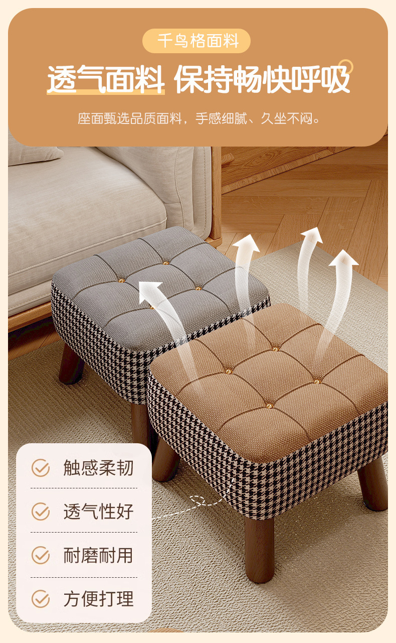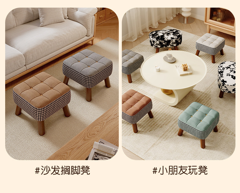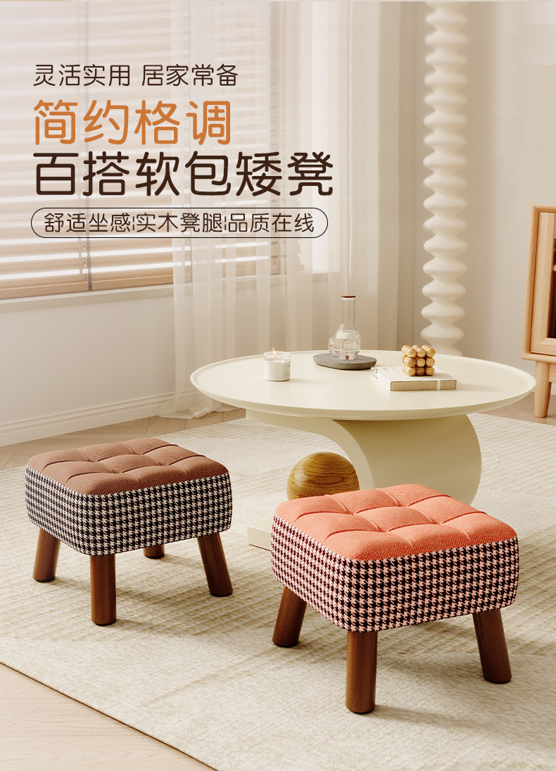 Taburete pequeño, taburete bajo para el hogar, taburete de cambio de zapatos, taburete de sofá simple, taburete de sala de estar, taburete de paquete suave, taburete cuadrado, taburete de madera sólida retro