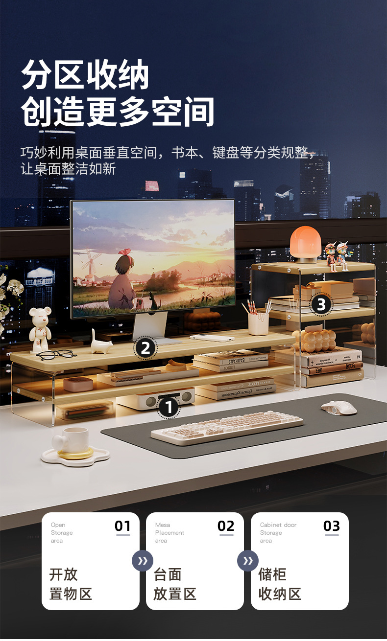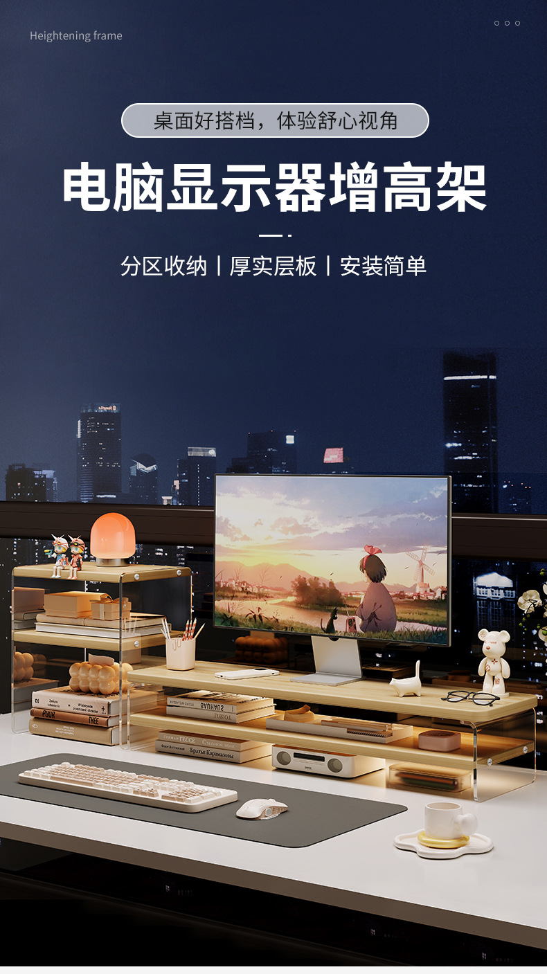 Computadora de escritorio, estante de aumento, monitor, estante de escritorio acrílico, soporte para computadora portátil, artefacto de almacenamiento de escritorio