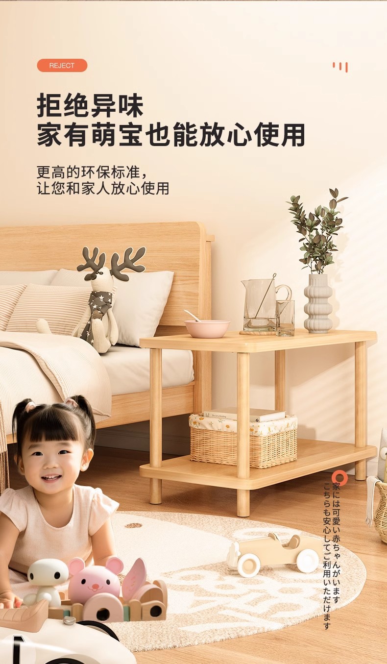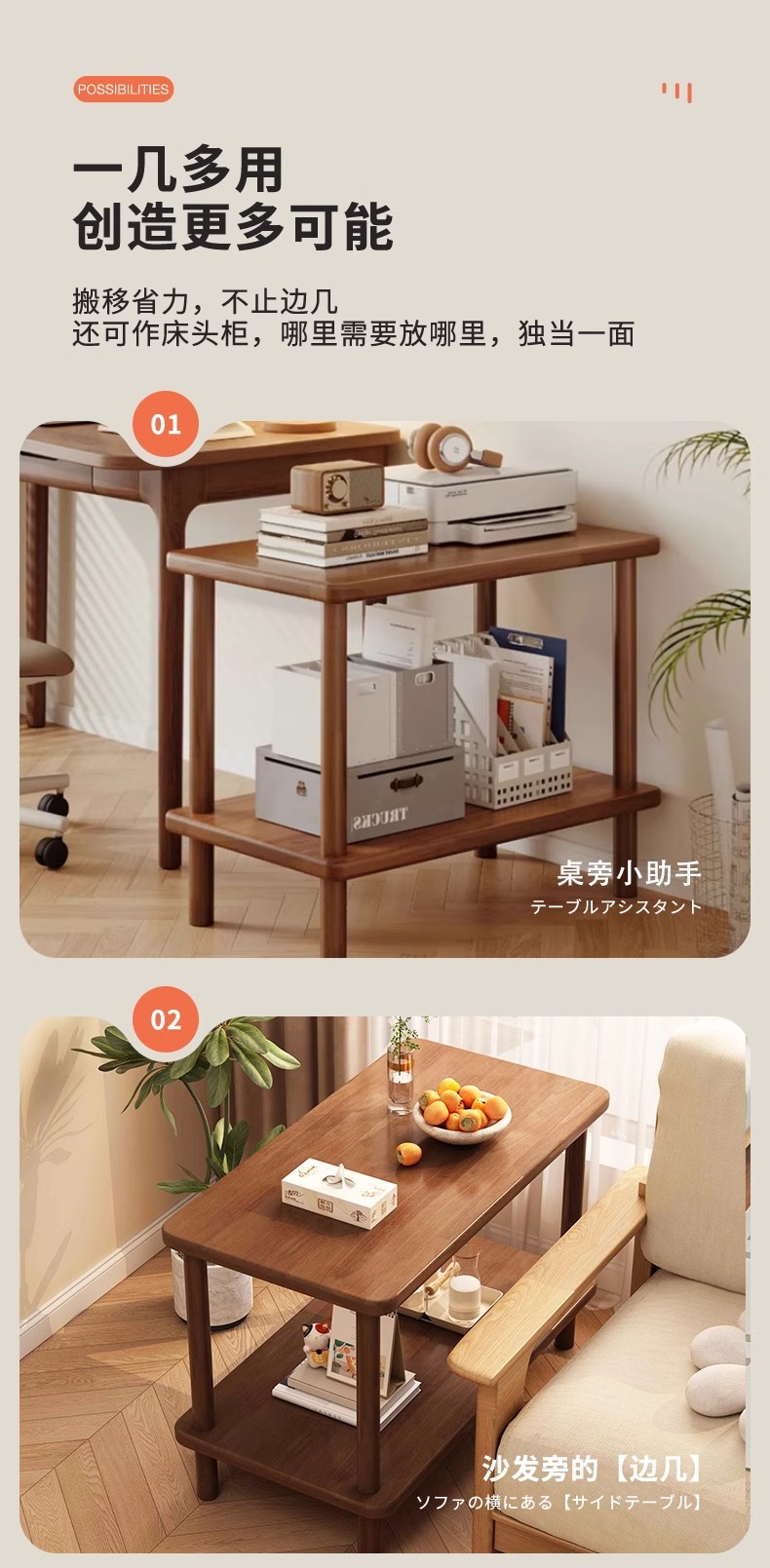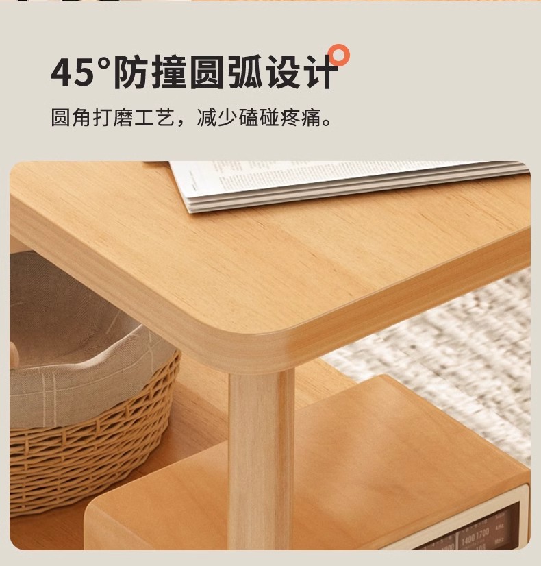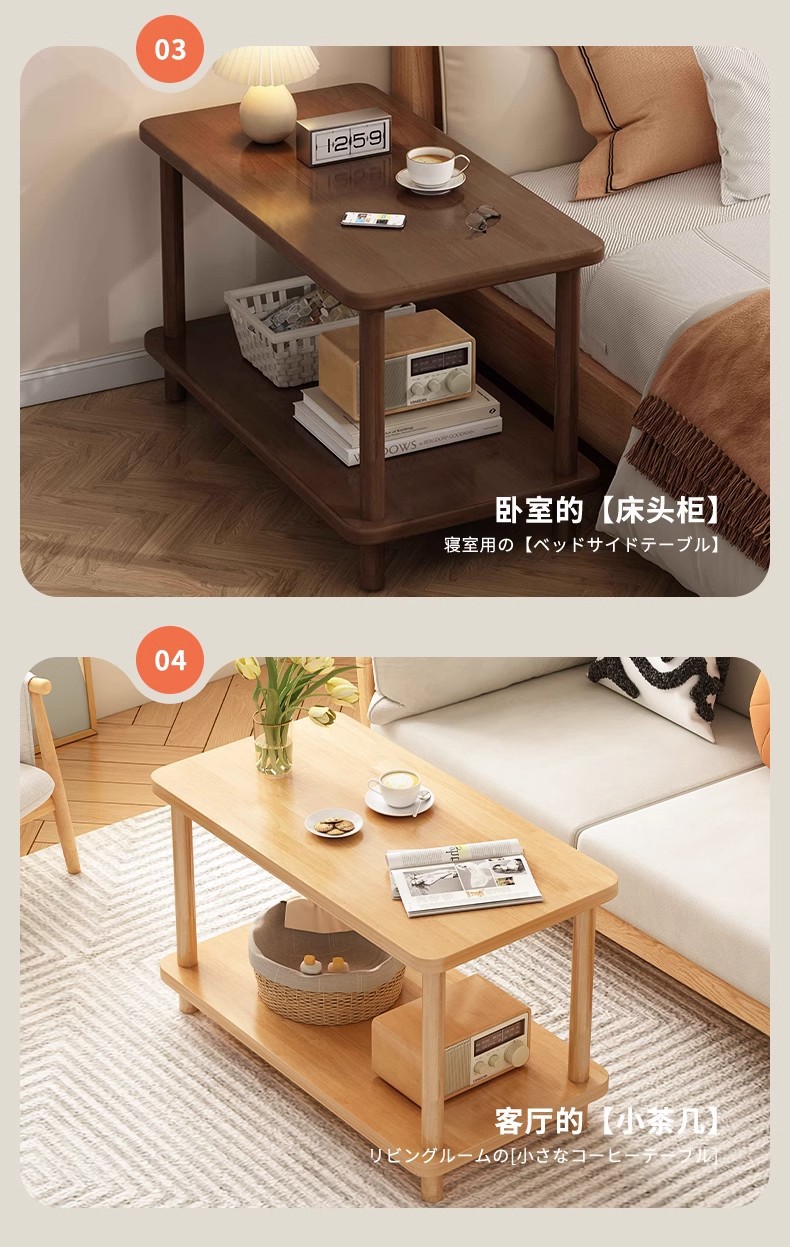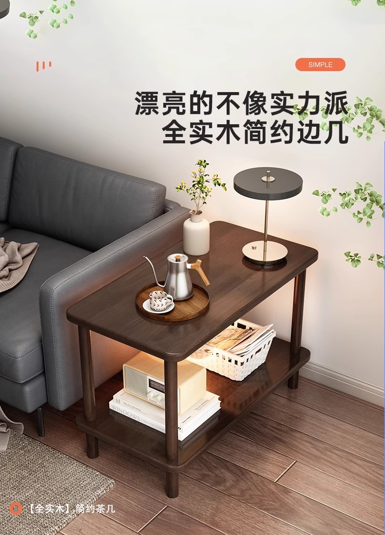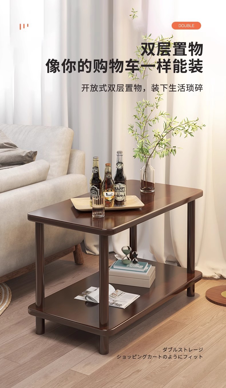 Mesa lateral de madera maciza, mesa de centro, mesa pequeña, sala de estar, sofá doméstico, mesa auxiliar, balcón simple, estante de mesa de centro de doble capa