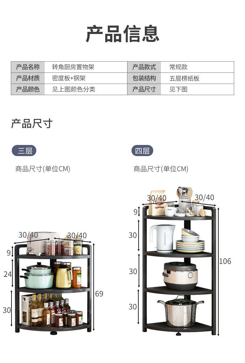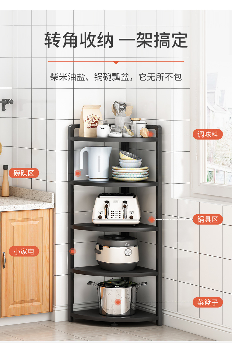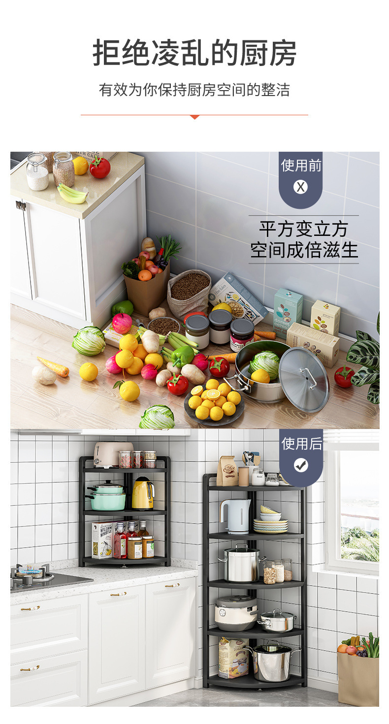 Rack de almacenamiento de esquina de cocina estante de almacenamiento de utensilios de cocina trípode de esquina estante de almacenamiento de olla de múltiples capas