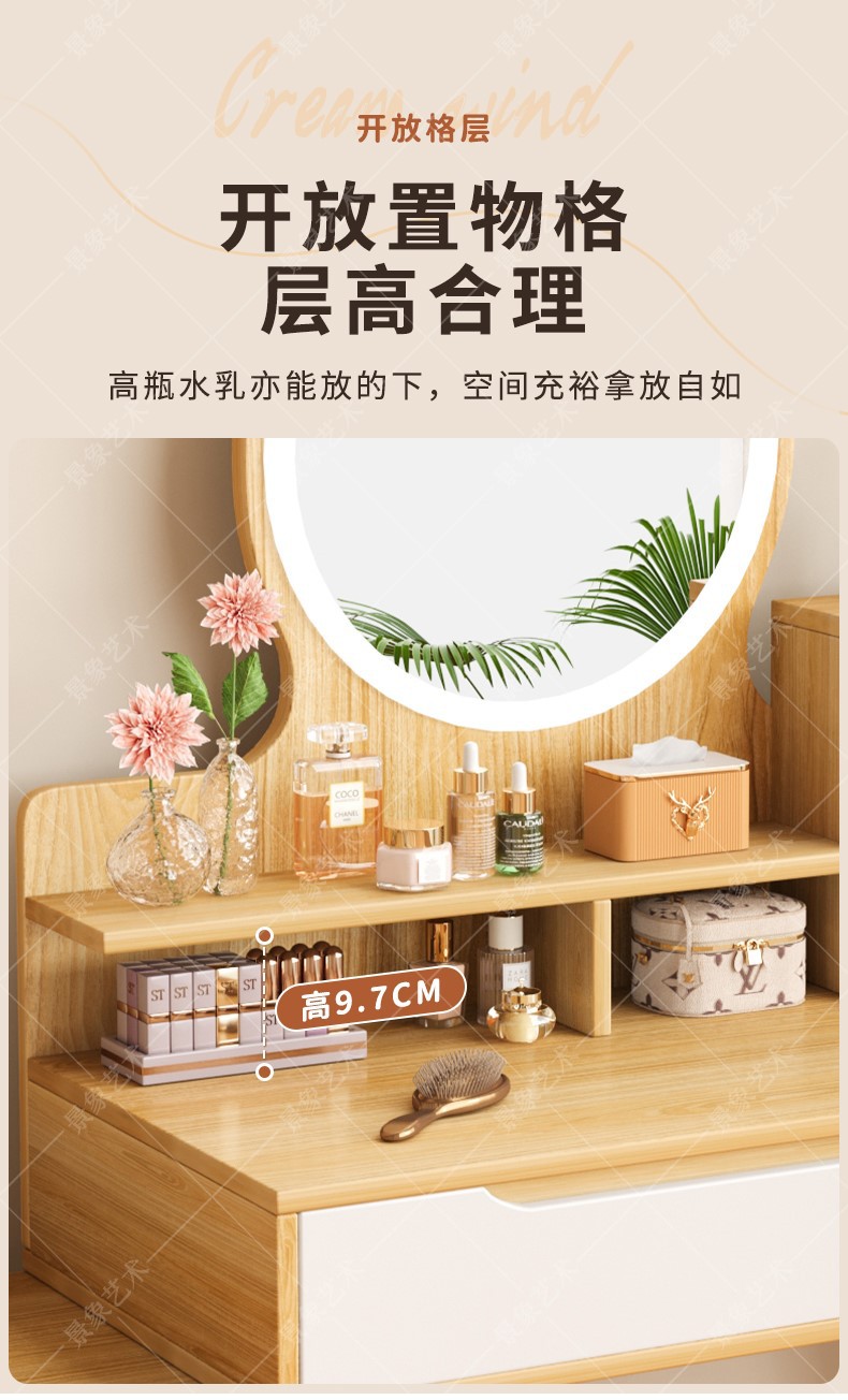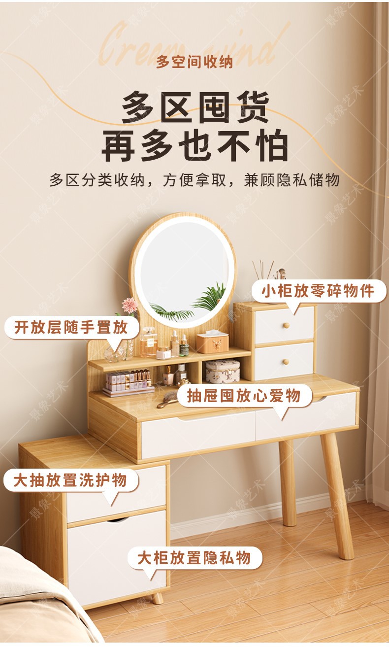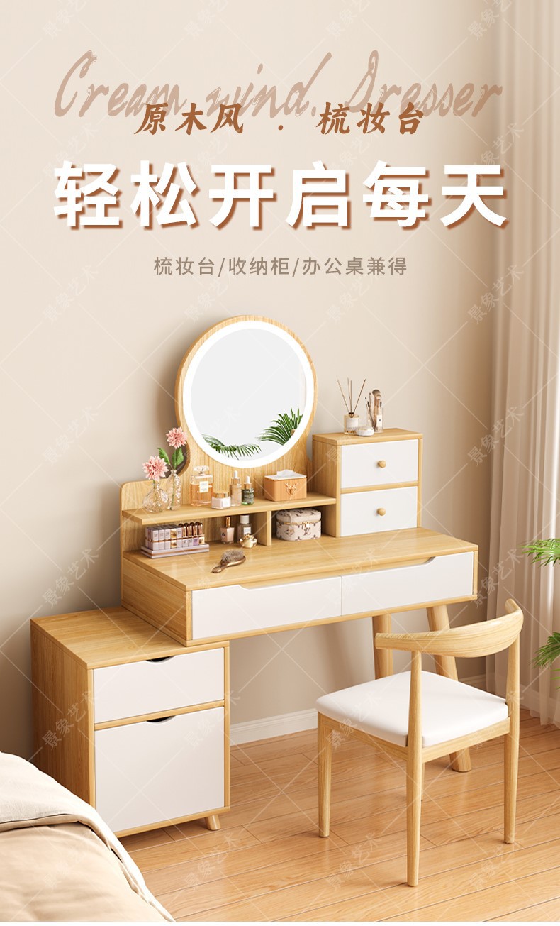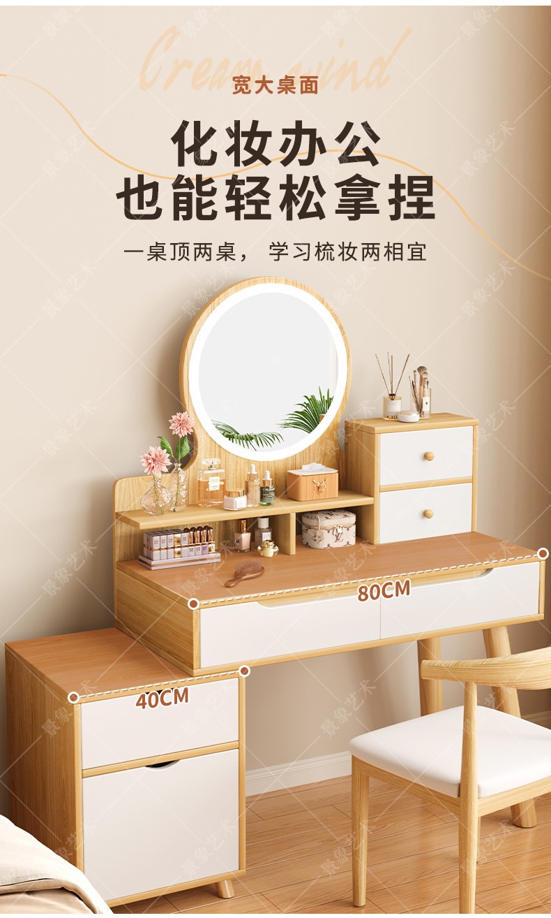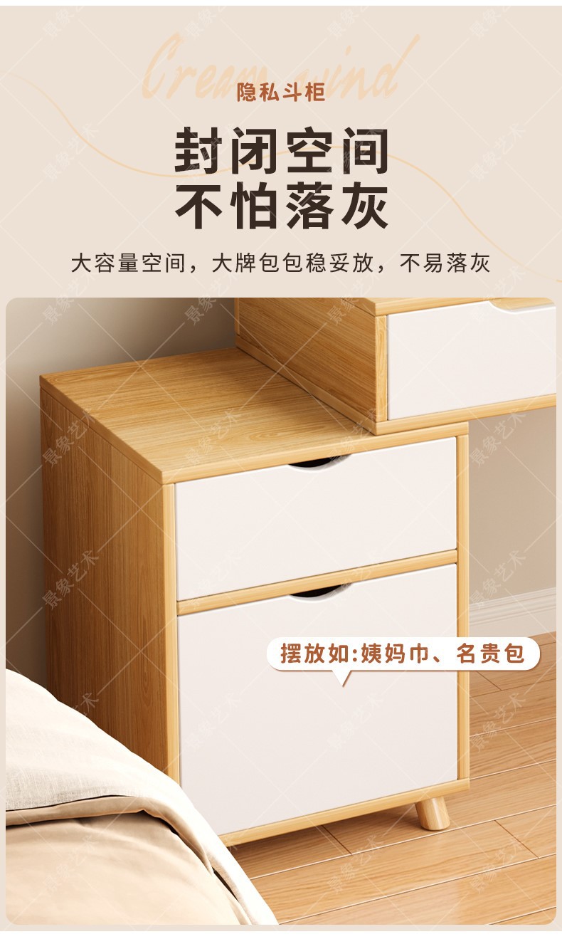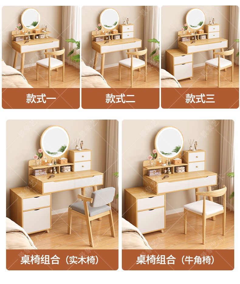 Mesa de tocador, gabinete lateral del dormitorio moderno, mesa de maquillaje integrada de piernas de madera sólida, mesa de maquillaje de alquiler con armario, nueva mesa de maquillaje china