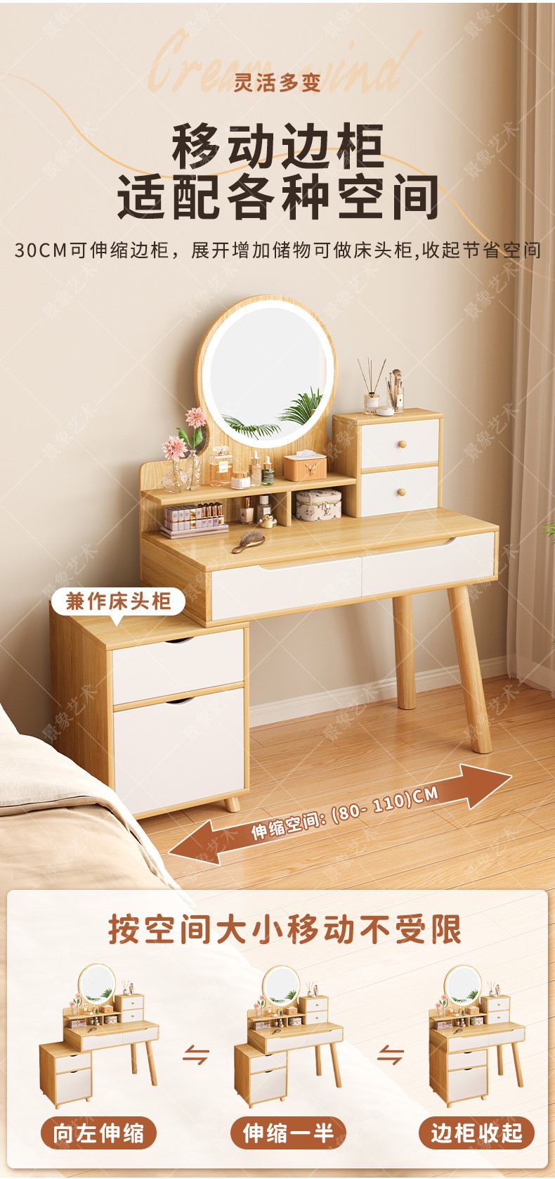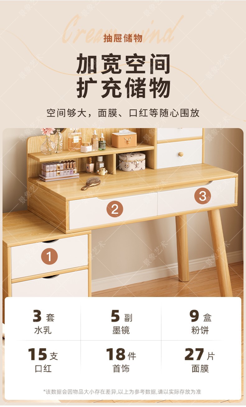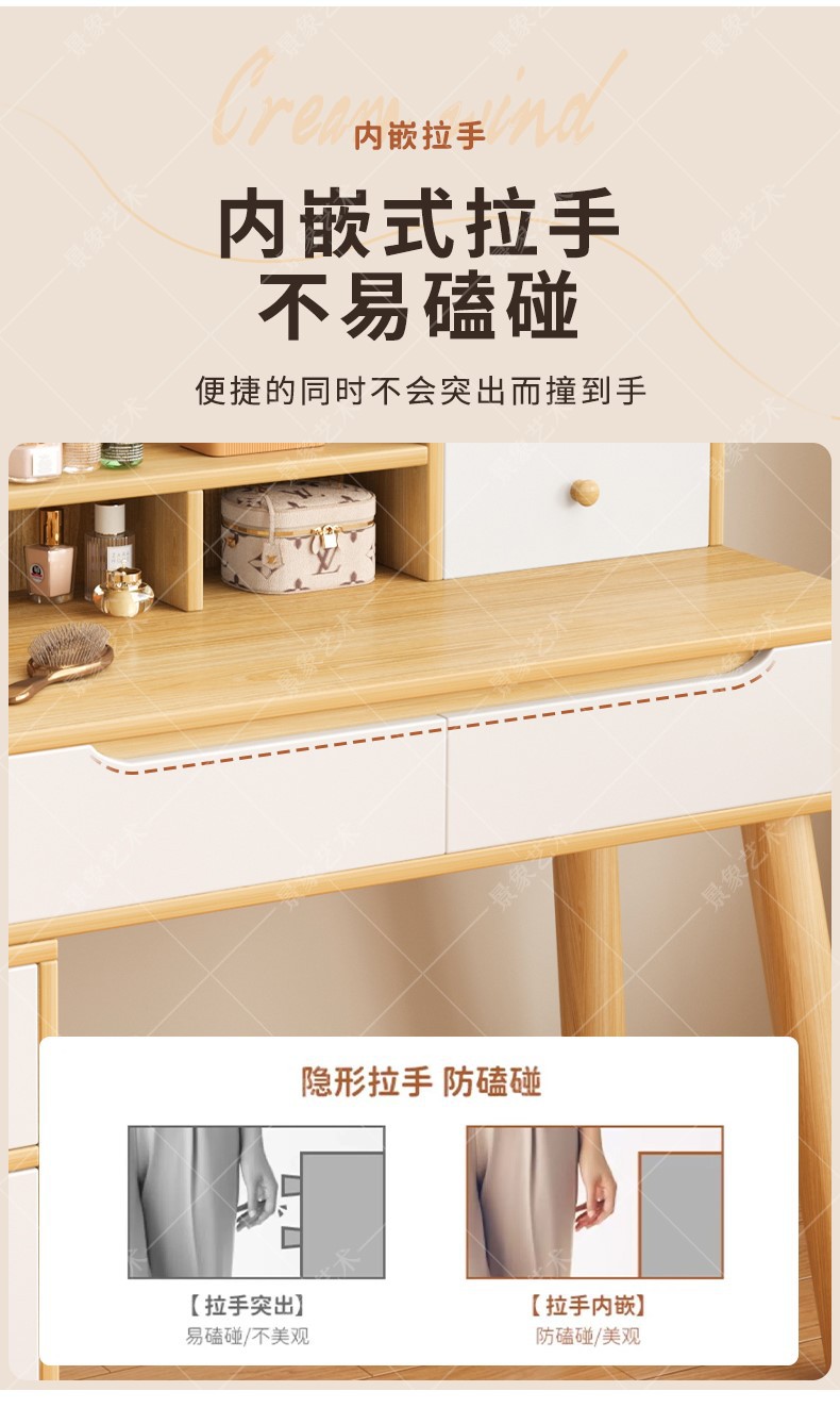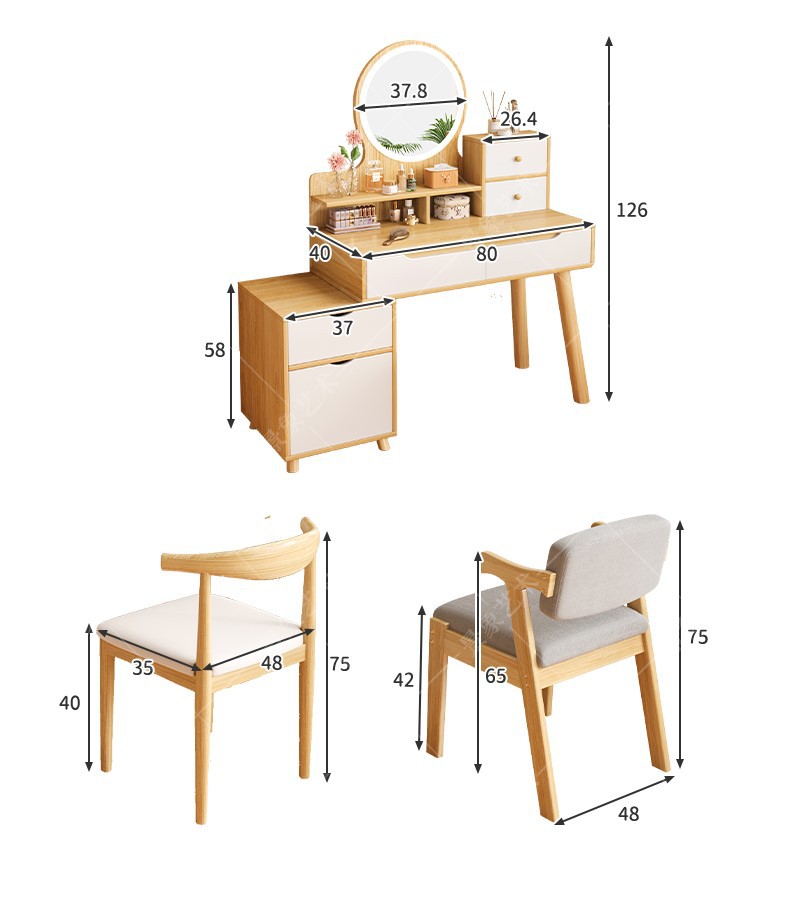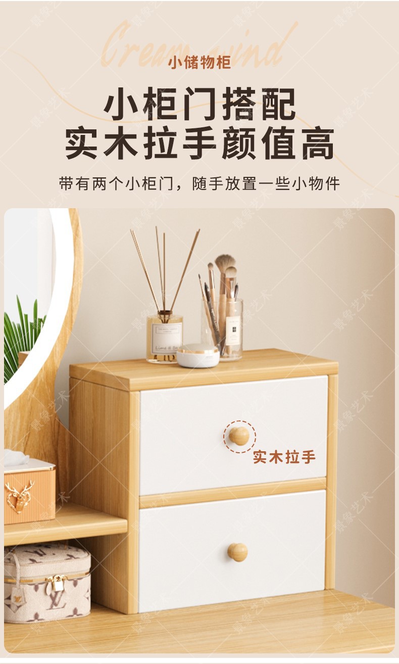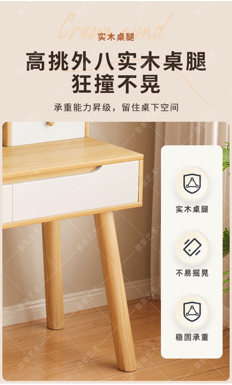 Mesa de tocador, gabinete lateral del dormitorio moderno, mesa de maquillaje integrada de piernas de madera sólida, mesa de maquillaje de alquiler con armario, nueva mesa de maquillaje china