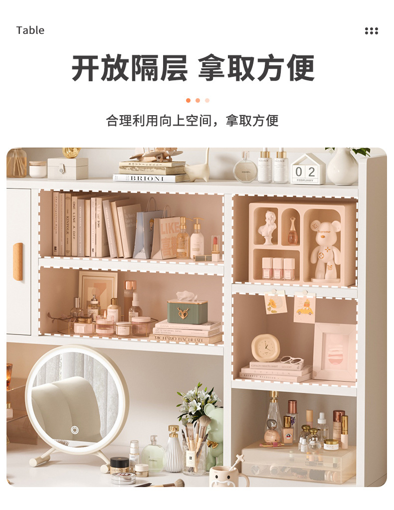 Mesa de maquillaje, escritorio integrado para niñas dormitorio moderno minimalista, gran capacidad de almacenamiento, mesa de tocador