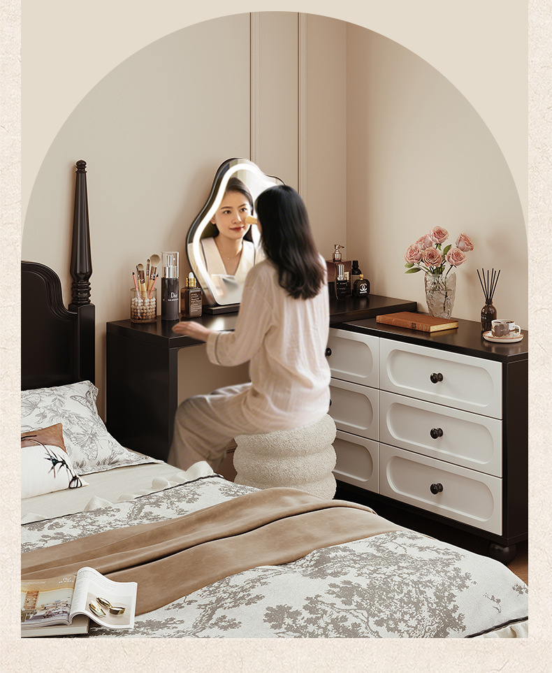 El estilo medieval francés armario de tocador en un dormitorio moderno armario de cama simple 2025 nuevo retro mesa de maquillaje